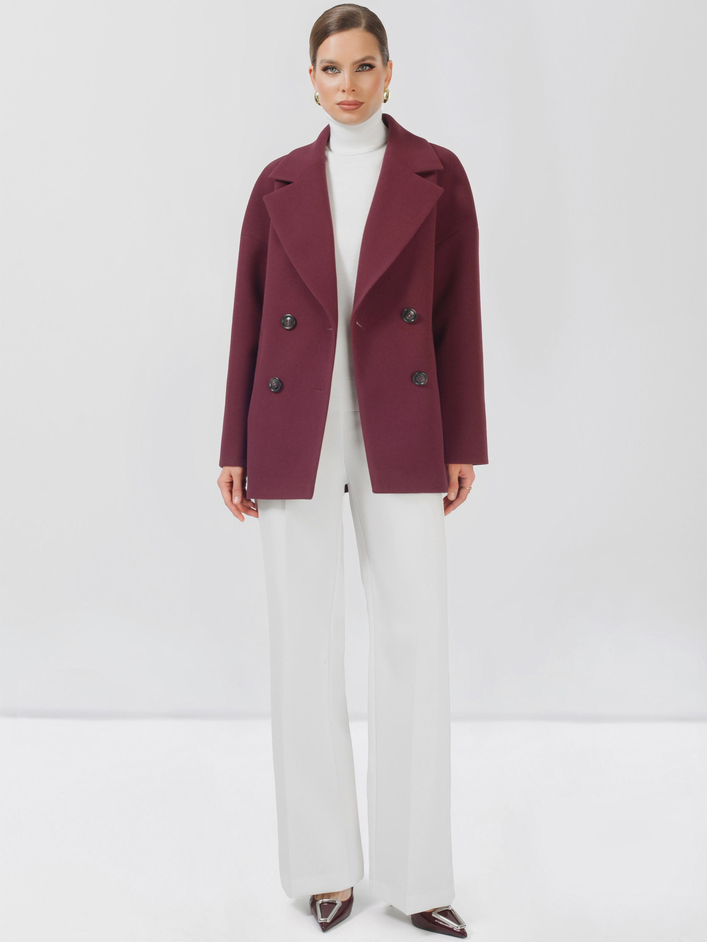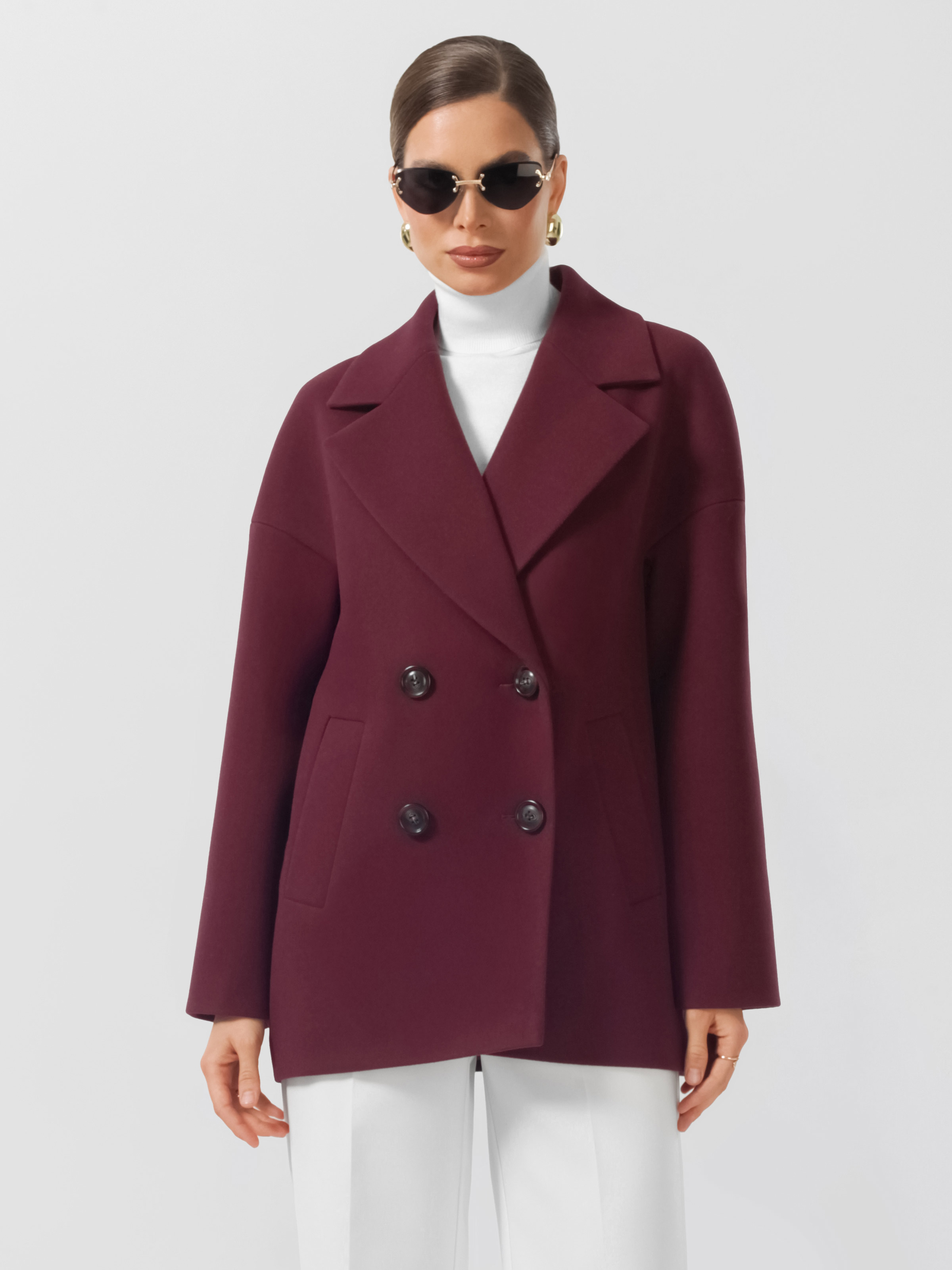Модное короткое пальто из мягкой шерстяной ткани. Свободный, зауженный книзу силуэт и асимметричная длина (полочка чуть короче спинки) создают утонченный, но динамичный образ. В мягком покрое рукава предусмотрена ромбовидная ластовица, что гарантирует комфорт и удобство при движении. Застежка на пуговицы, удобные карманы - листочки, английский воротник с четкой линией обрезки. Размер рекомендовано подбирать по бОльшему показателю - либо по объёму груди, либо по бёдрам. Температурный режим носит рекомендательный характер до +5 °C, далее все зависит от индивидуальной переносимости температур.