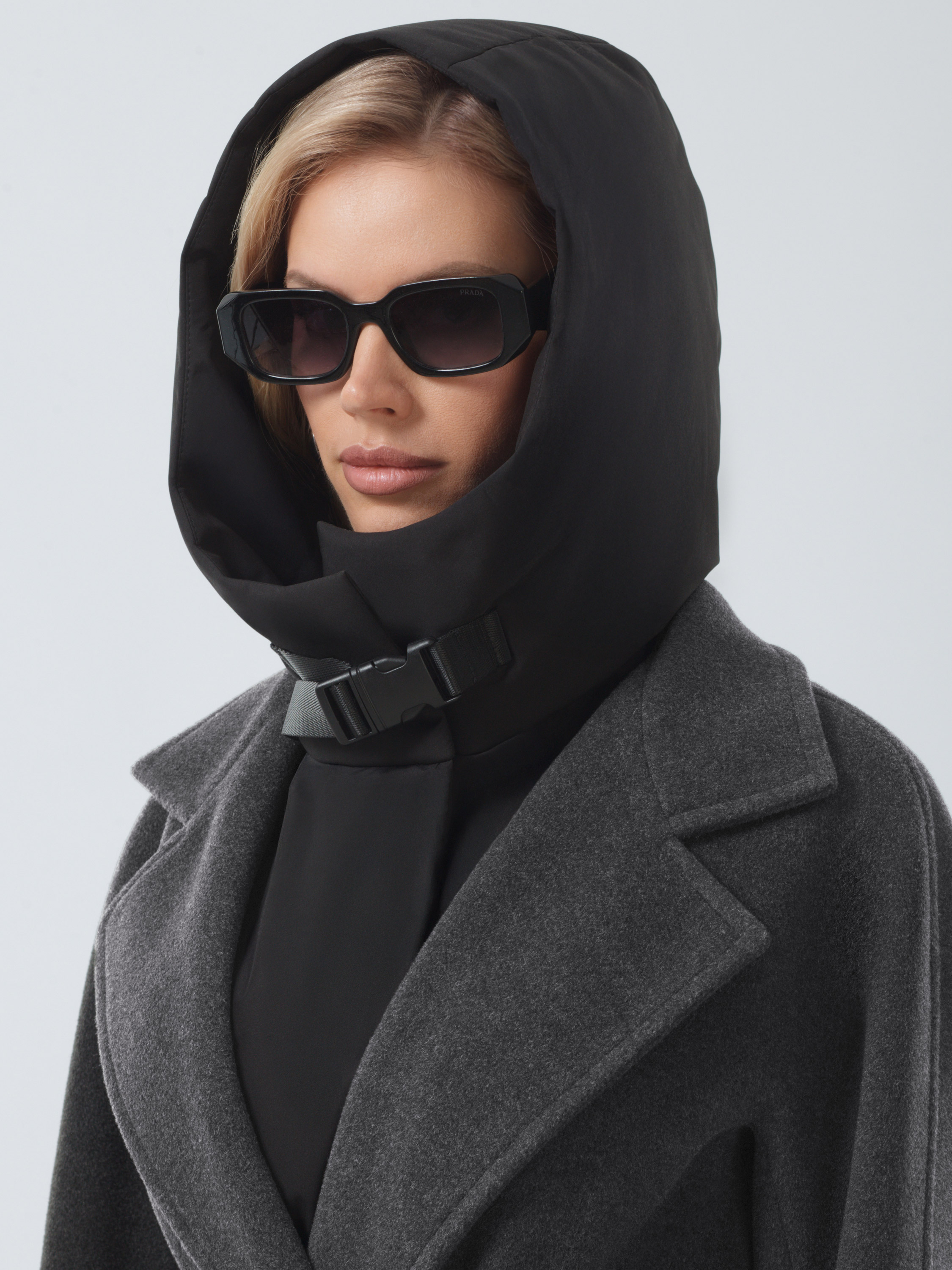 Актуальный лаконичный крой. Плавная линия плеча, комфортные комбинированные рукава с возможностью отворотов. Воротник – невысокая стойка – раскладывается в английский. Съёмная манишка с капюшоном из плотной плащевой ткани на утеплителе. Манишка фиксируется на пуговицы, застёгивается с помощью пряжки – фастекс на тесьме. Удобные карманы - листочки, застежка на фирменные пуговицы. Шлица в среднем шве спинки.