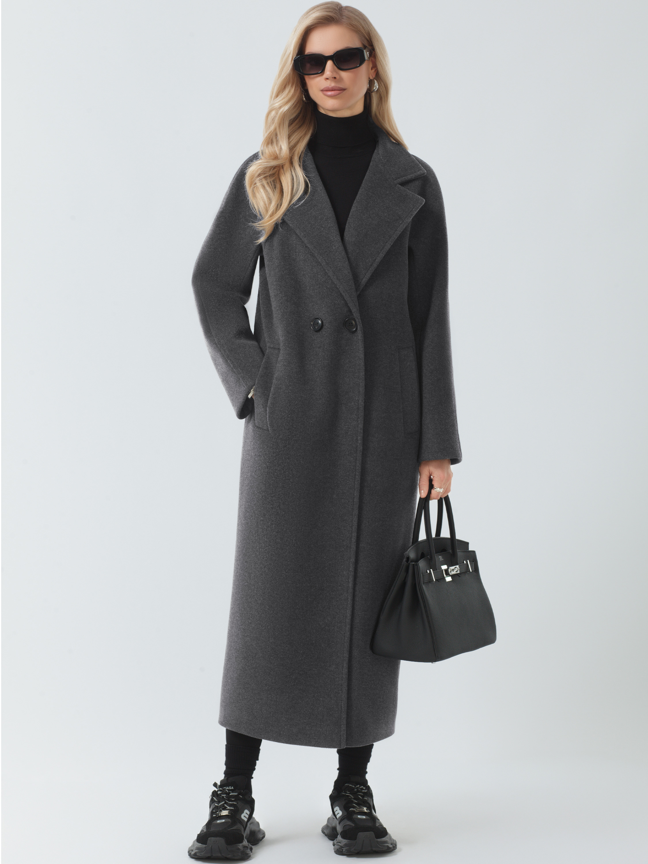 Cупермодное пальто в длине макси. Модель свободного силуэта выполнена в мягкой пластичной ткани с микроворсом.