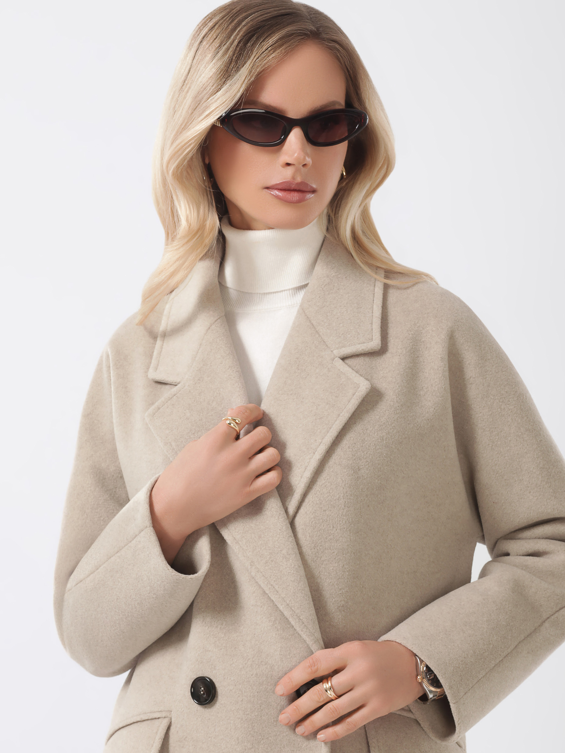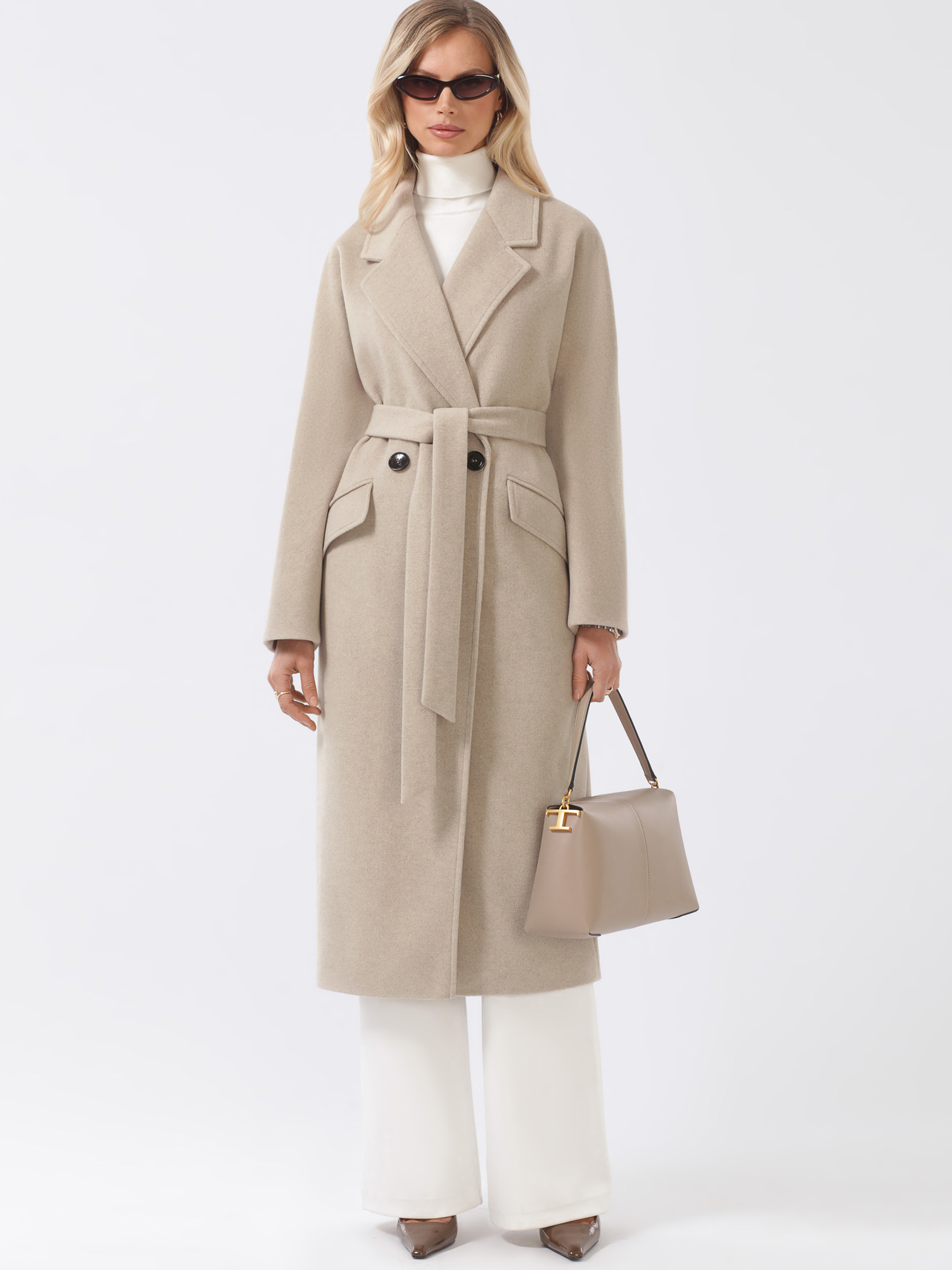 Трендовое пальто оверсайз из мягкой пластичной ткани с микроворсом. Свободный силуэт, плавная линия плеча. Комфортный комбинированный покрой рукава с возможностью отворота. Актуальный английский воротник. Карманы прорезные с клапанами, застежка на фирменные пуговицы. Шлица в среднем шве спинки. Пояс в комплекте. Модель декорирована отделочными строчками.