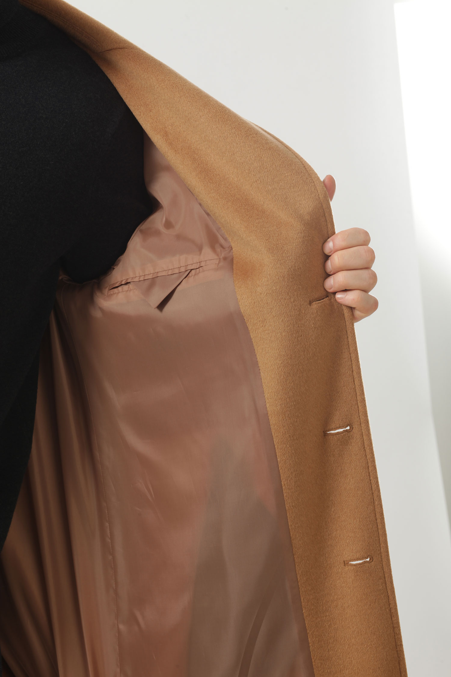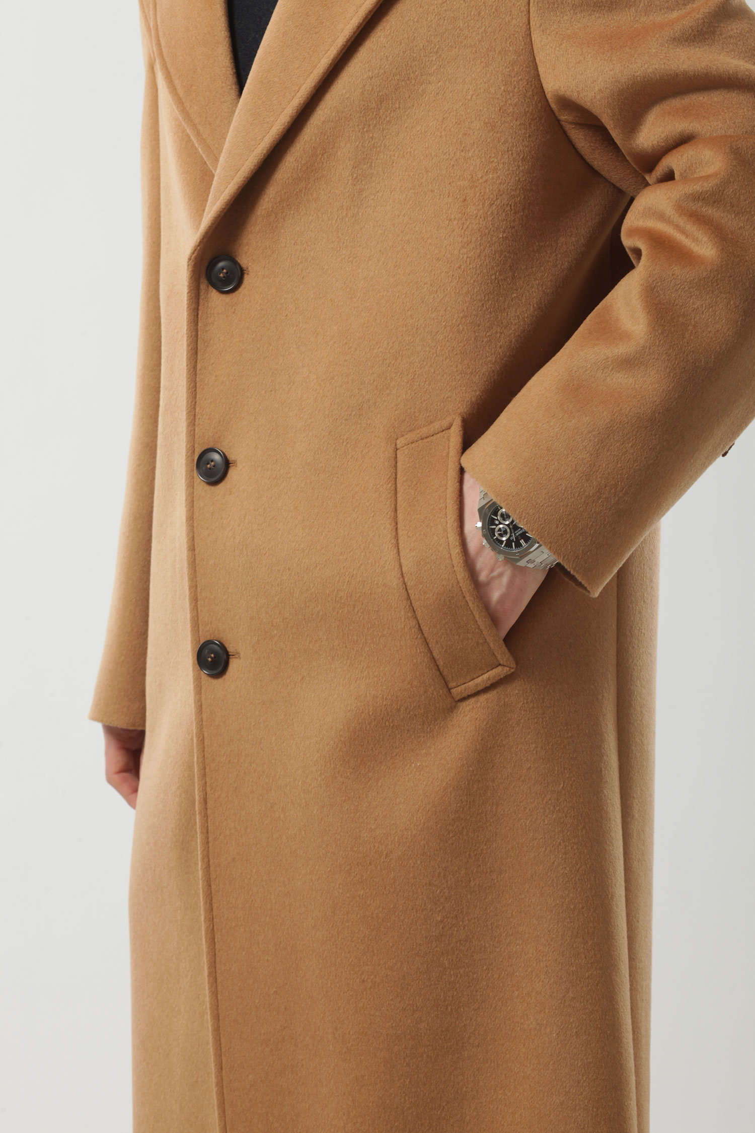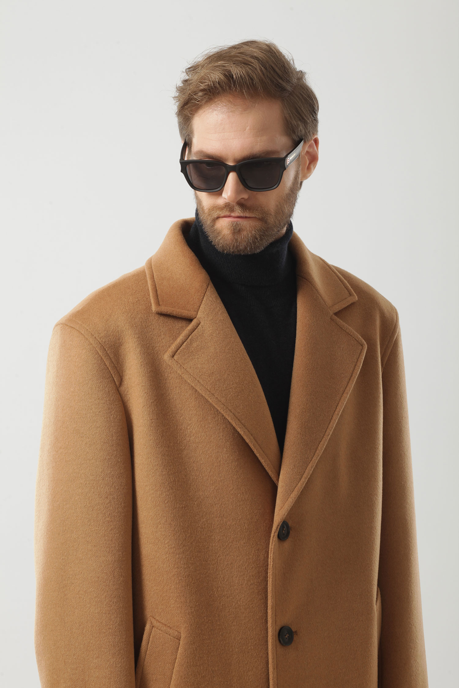 Длина по спинке – 120,0 см. Стильное однобортное пальто оверсайз свободного кроя, прямого силуэта. Покрой рукава рубашечный, двухшовный, достаточно свободный, слегка углублена пройма – все это позволяет носить пальто на худи. Воротник английский пиджачного типа с удобным уровнем застежки по борту на качественные фирменные пуговицы. Для удобства прорезные карманы-листочки расположены под небольшим наклоном.