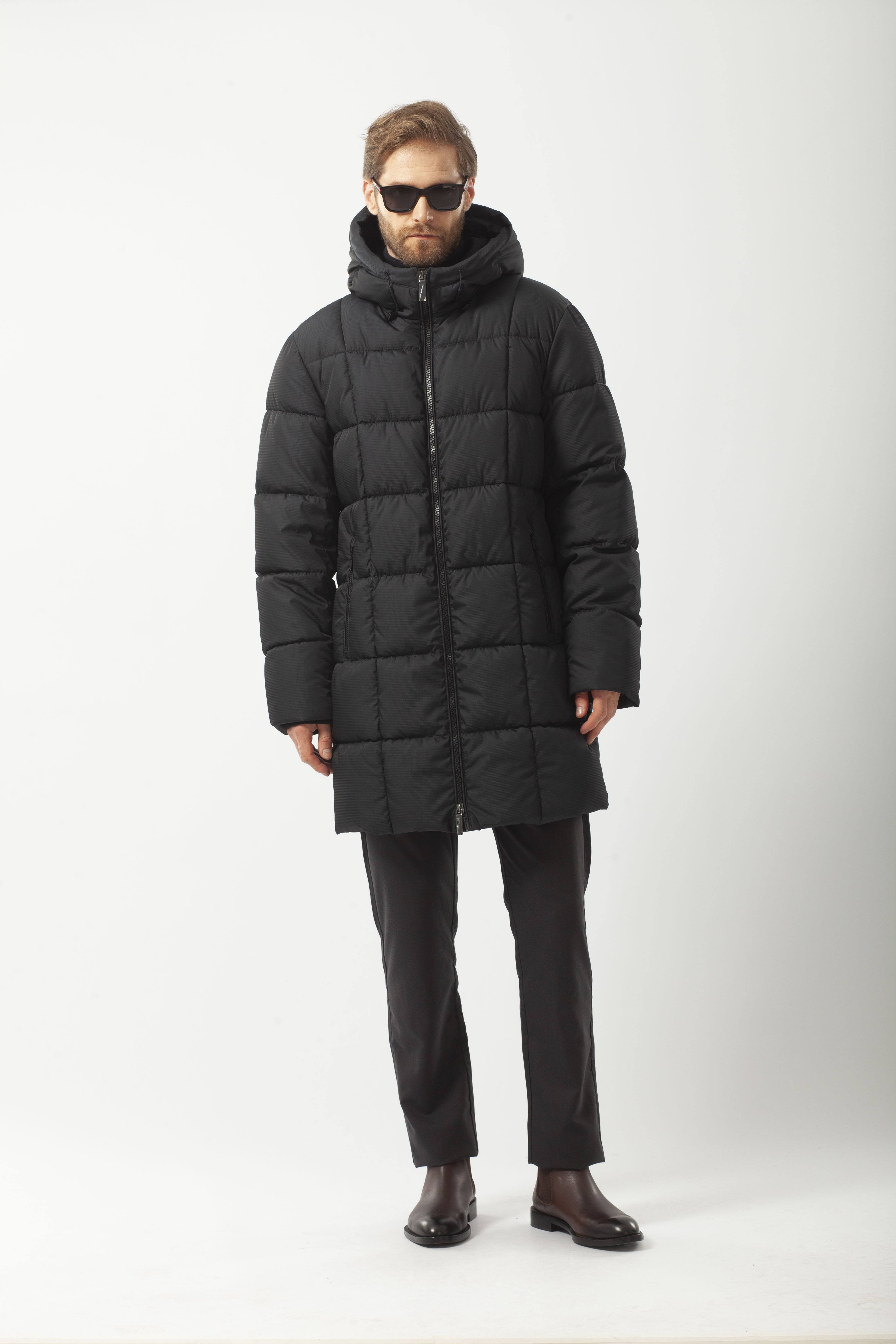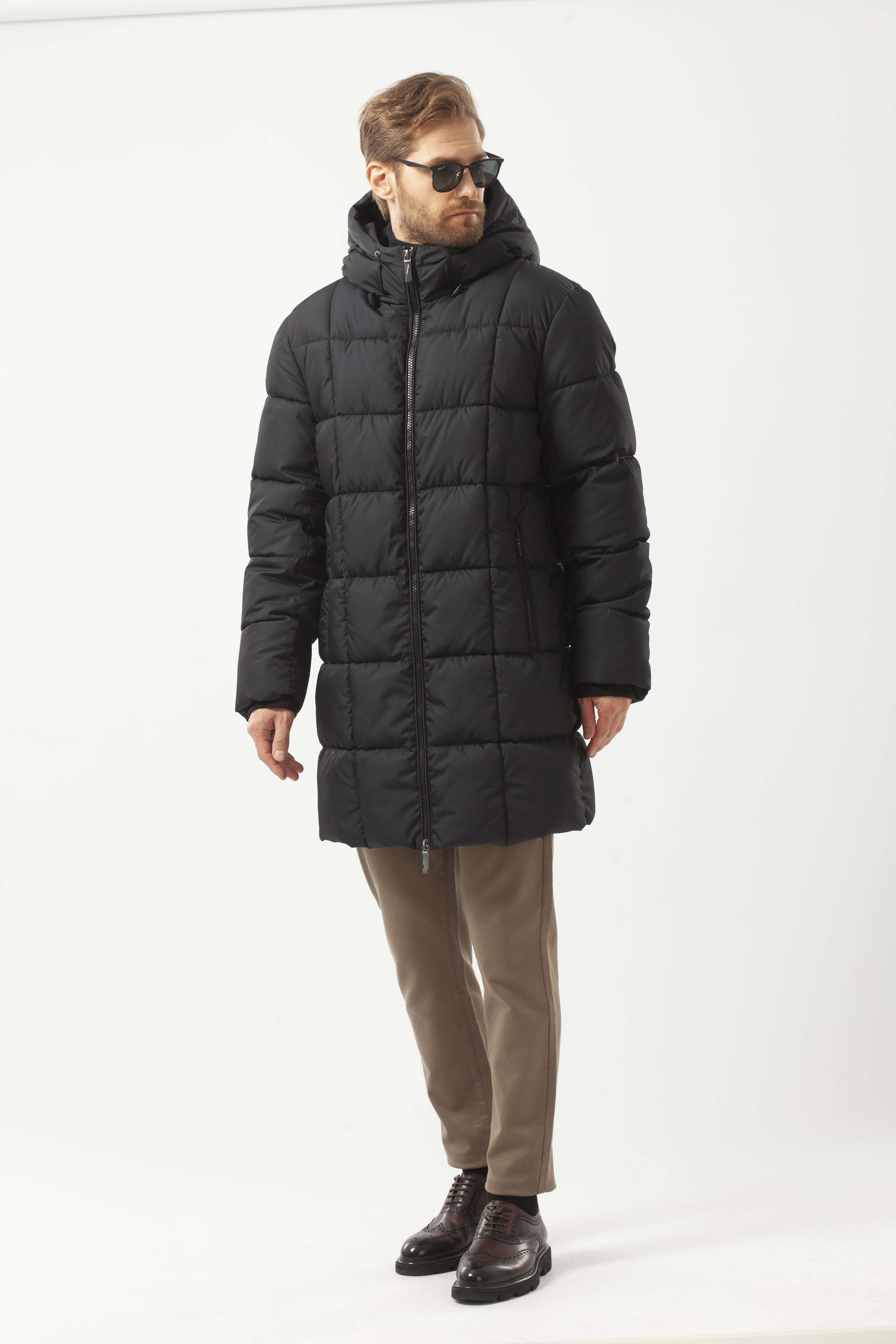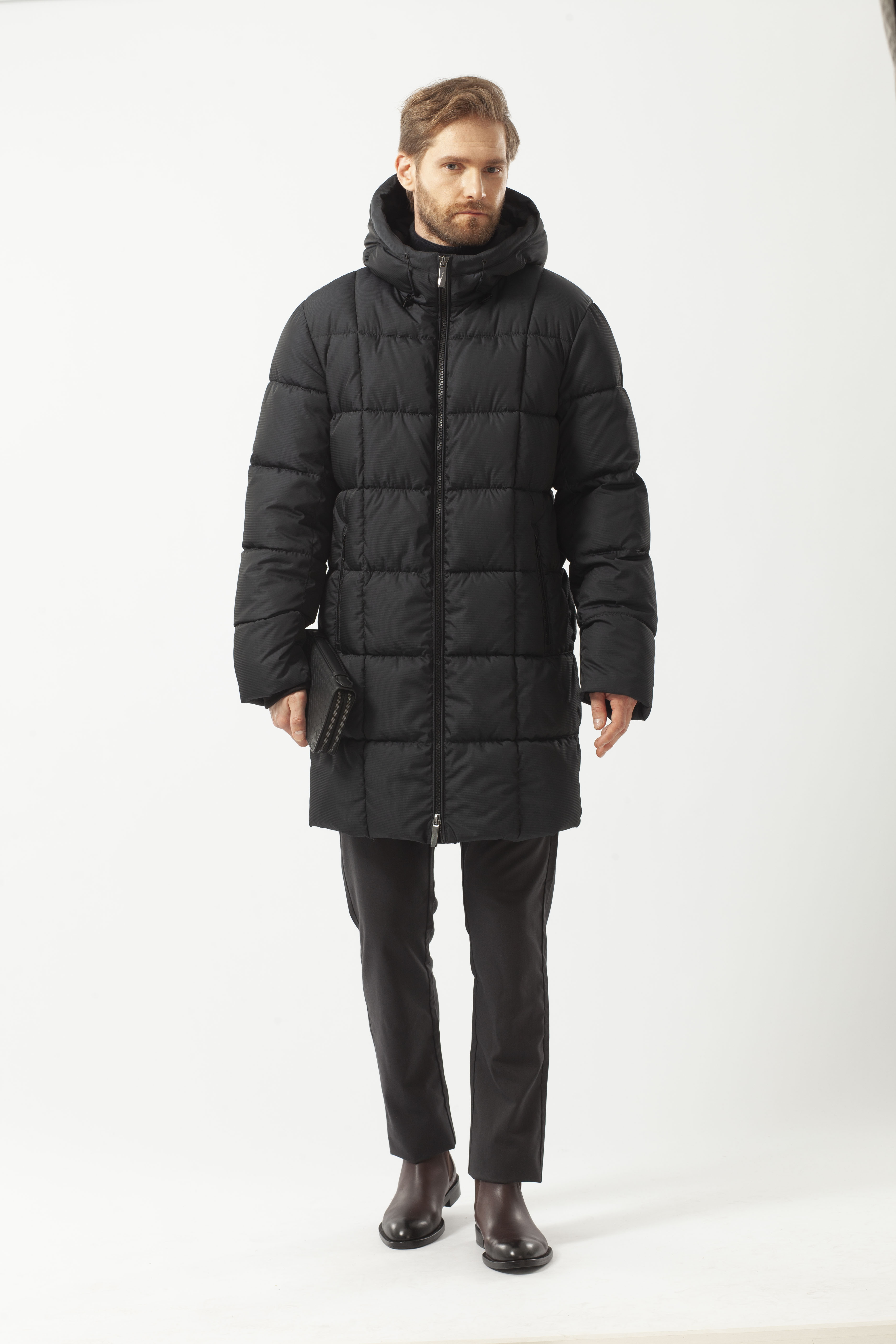 Пуховик мужской зимний из плотной плащевой ткани утеплён био-пухом высокого качества с отличными теплоизоляционными характеристиками. Удлинённая куртка комфортного прямого кроя, с классическим воротником-стойкой. Втачной покрой рукава. Удобная застёжкой на молнии. Ветрозащитная планка вдоль молнии способствует сохранению тепла внутри пуховика. Капюшон регулируется резинкой с фиксаторами на кулиске.