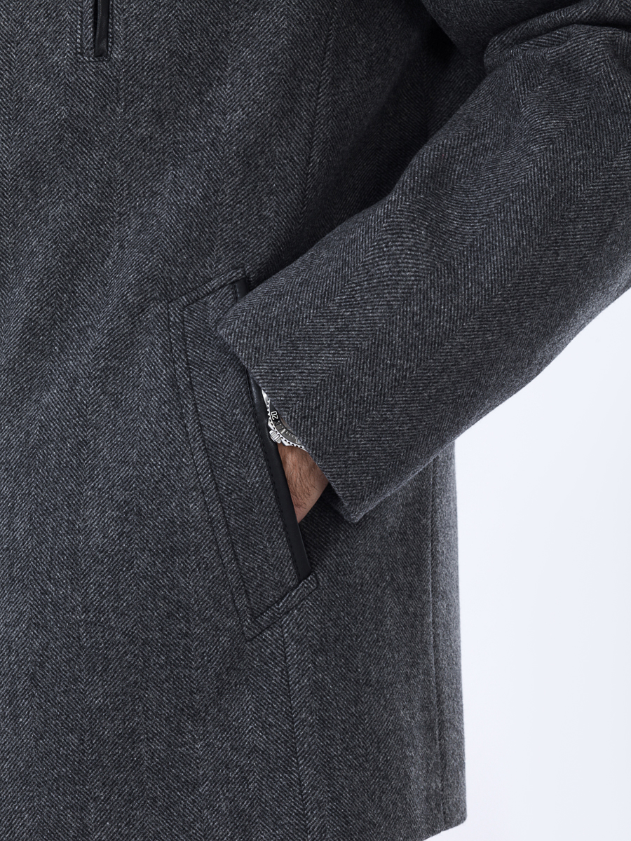 Втачные рукава, карманы-рамки с кожаными вставками,