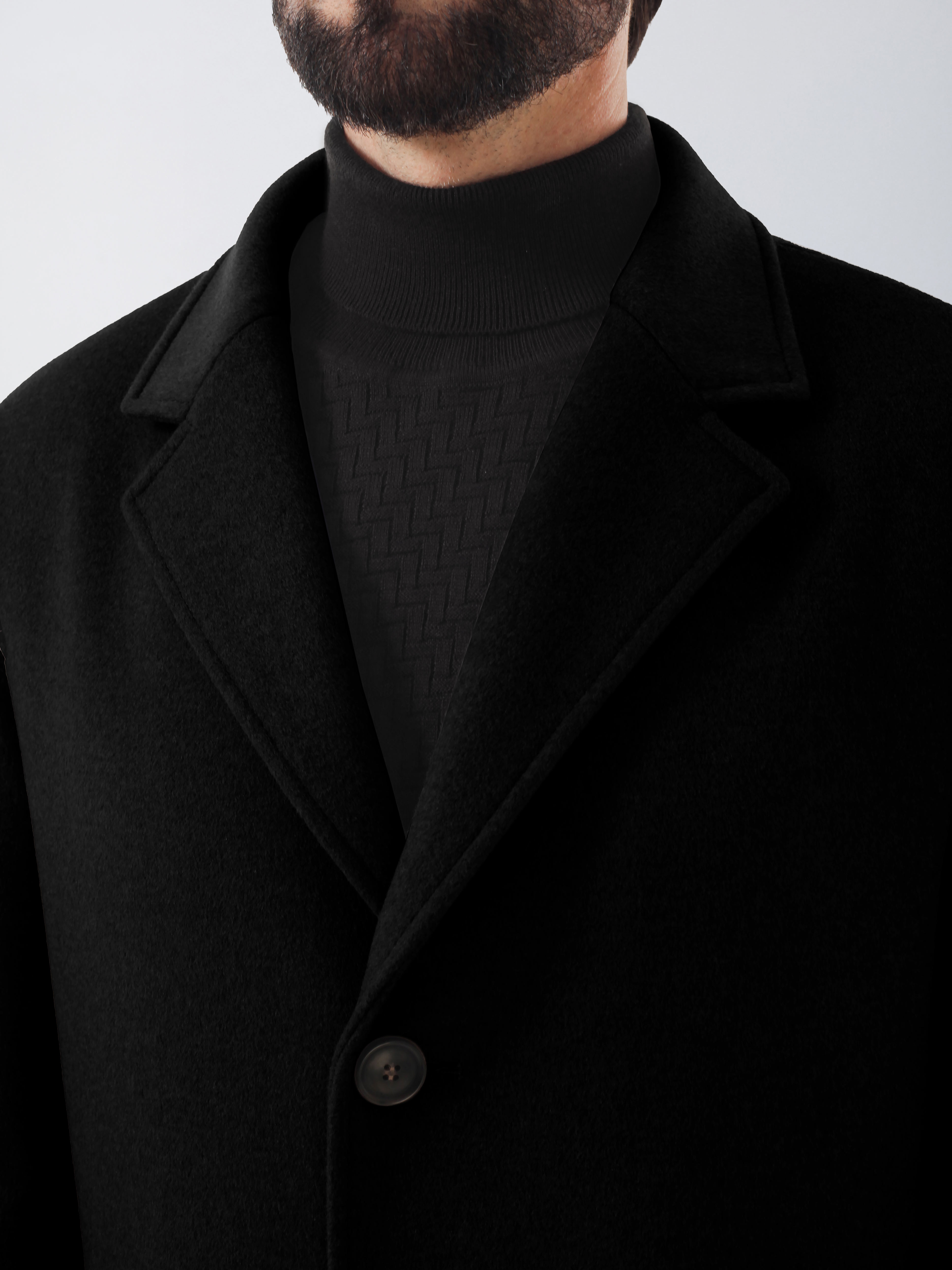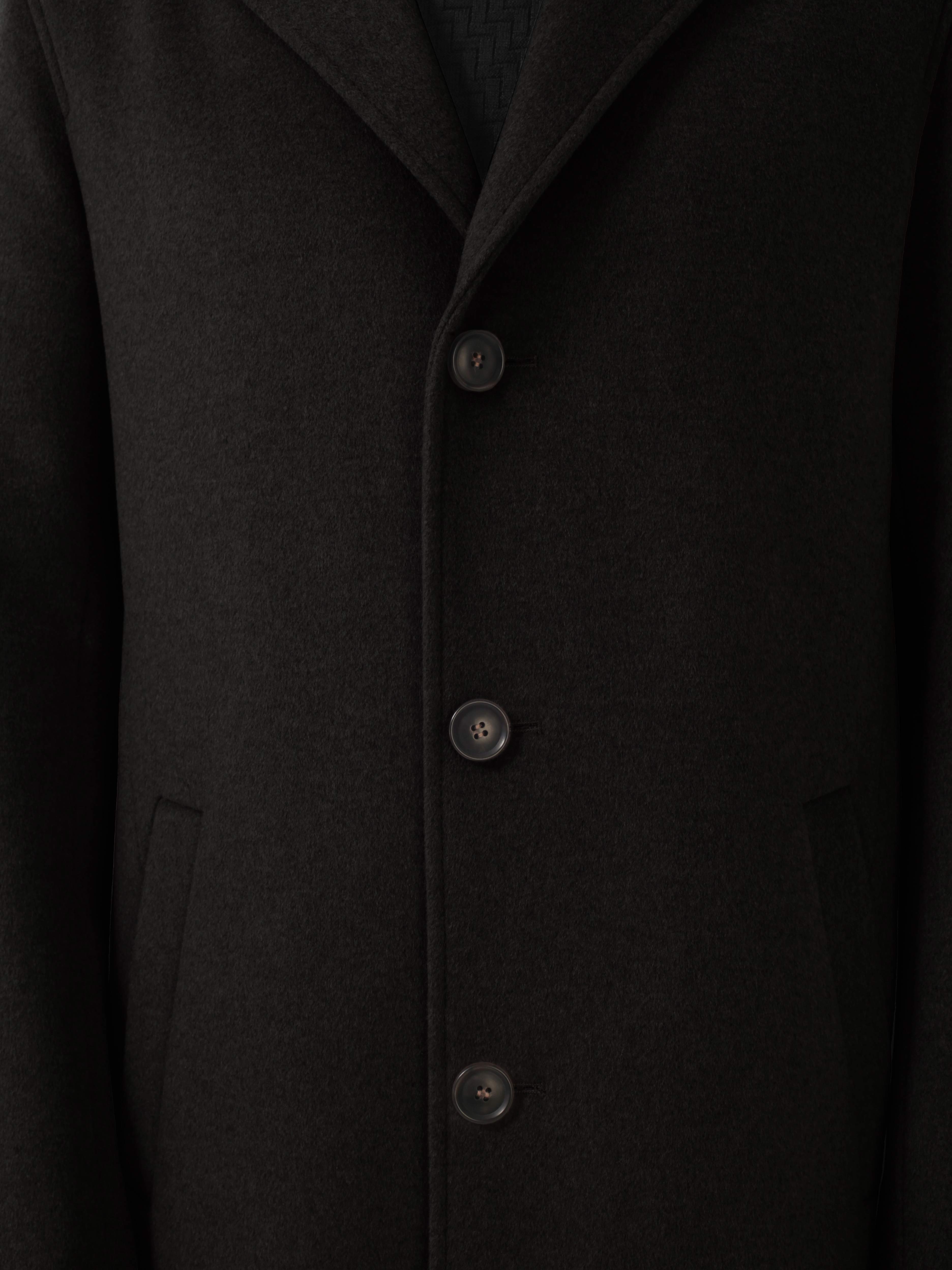 Мужское шерстяное пальто с английским воротником станет прекрасной основой для образов в классическом и Smart-Casual стилях. Шлица по среднему шву спинки обеспечивает комфорт при ходьбе.