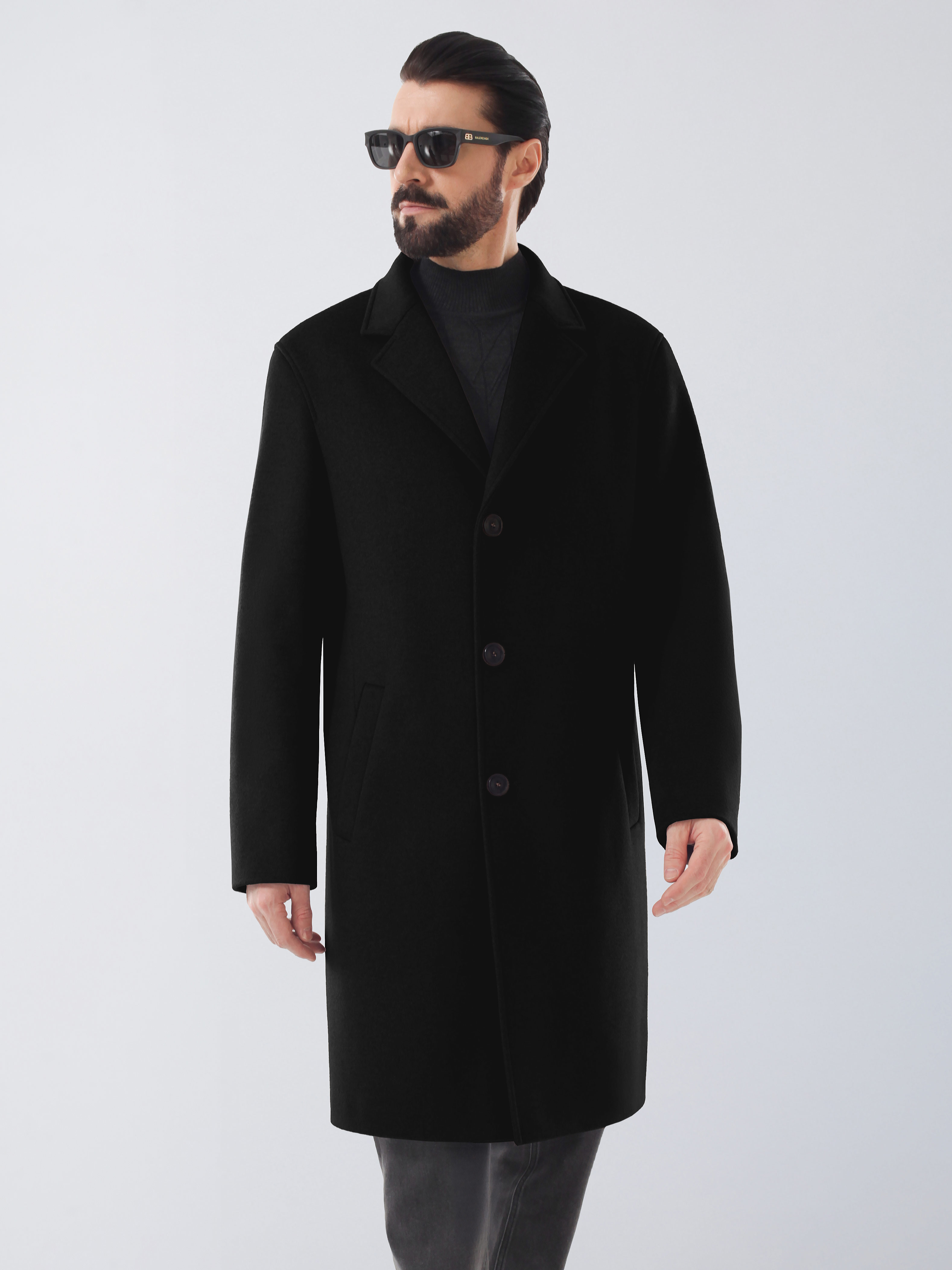 Мужское демисезонное пальто из шерстяной ткани. Актуальный свободный силуэт. Комфортный покрой рукава со спущенной линией плеча.