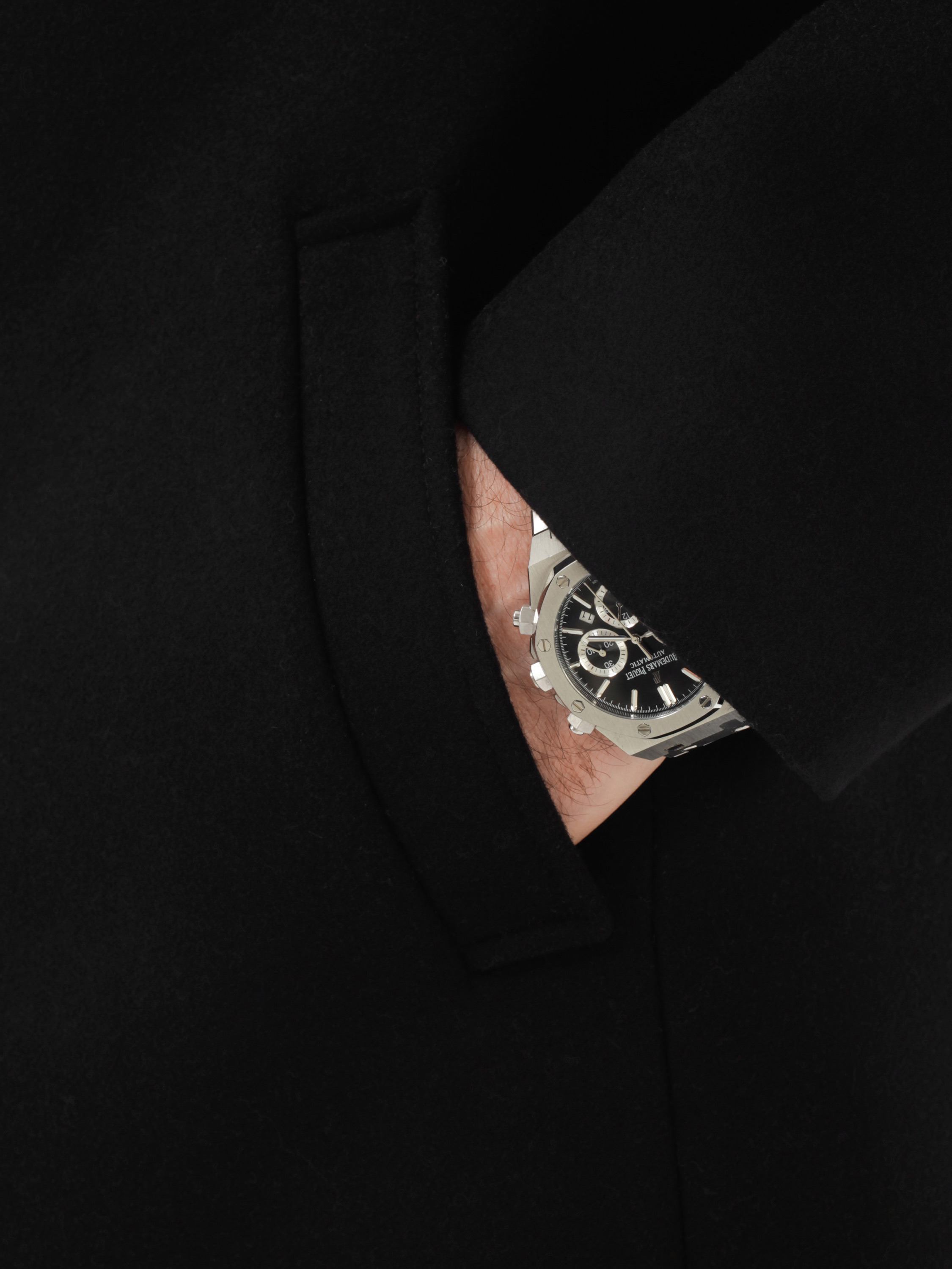 Для удобства прорезные карманы с листочками расположены под небольшим наклоном. внутренний карман с застежкой на молнию «invisible» подходит для хранения документов. Пальто декорировано отделочными строчками, и застегивается на акцентные фирменные пуговицы с роговым эффектом.