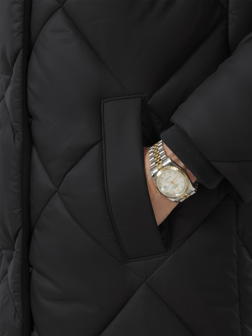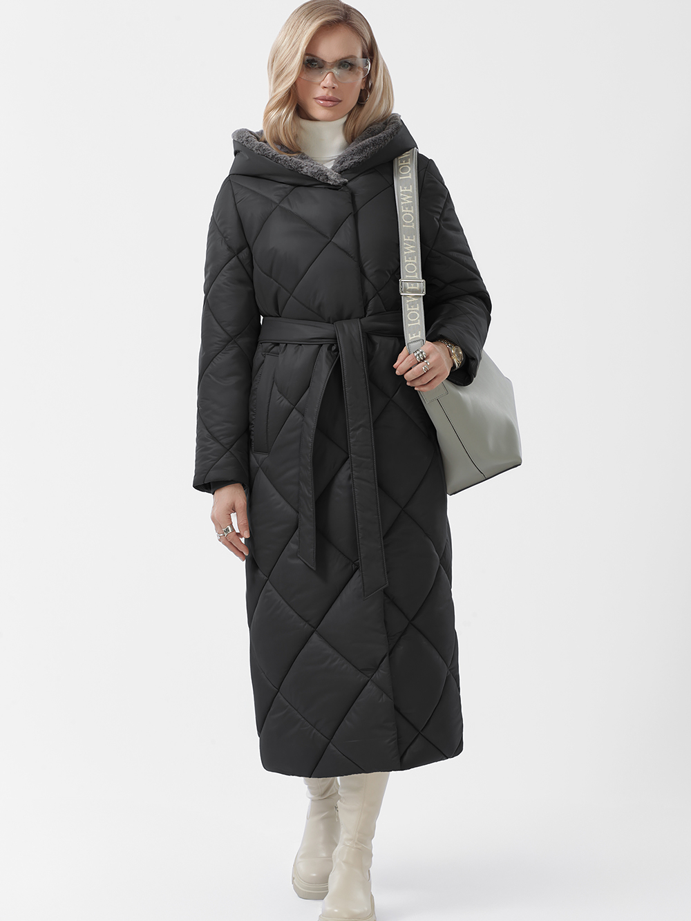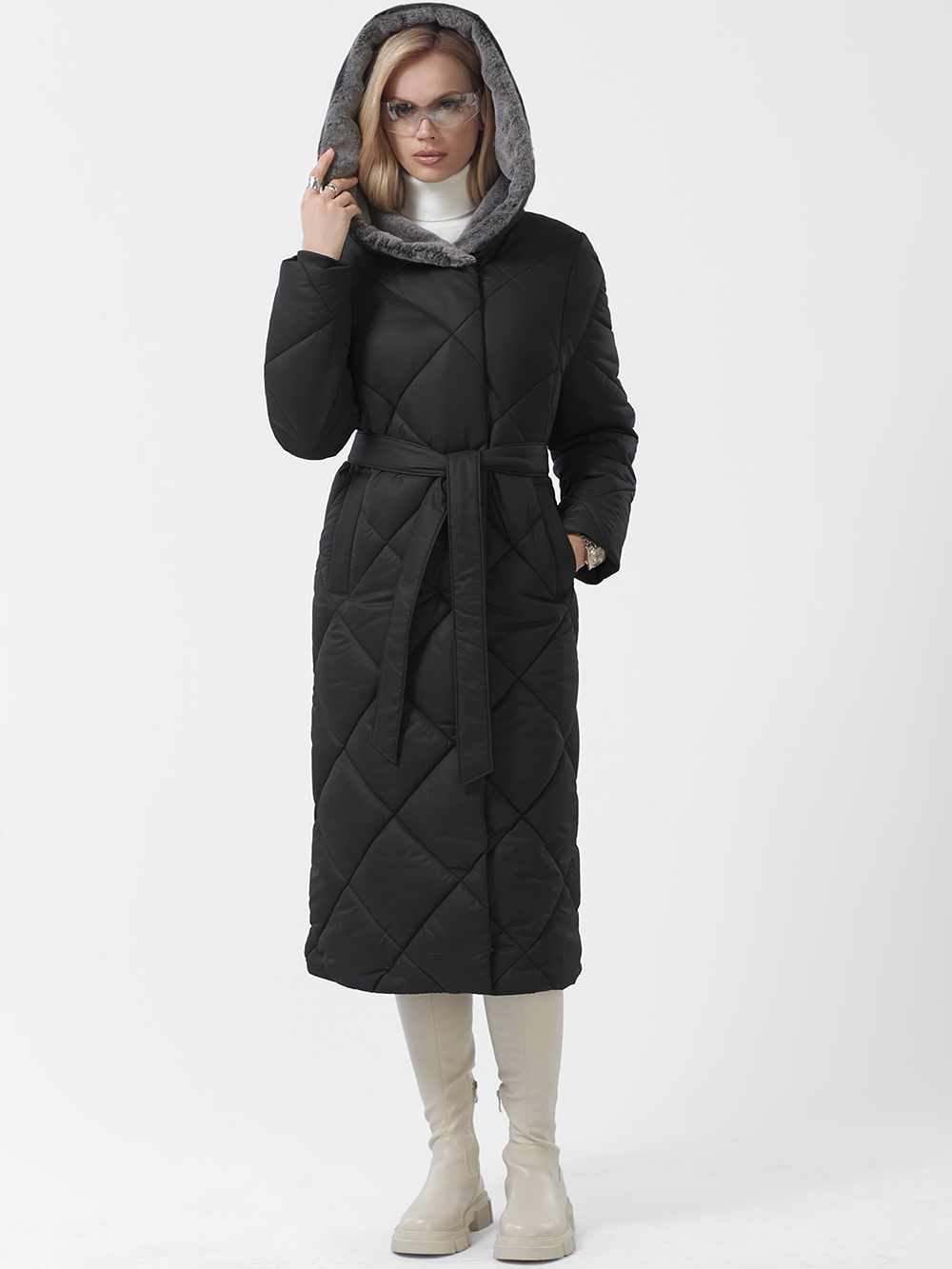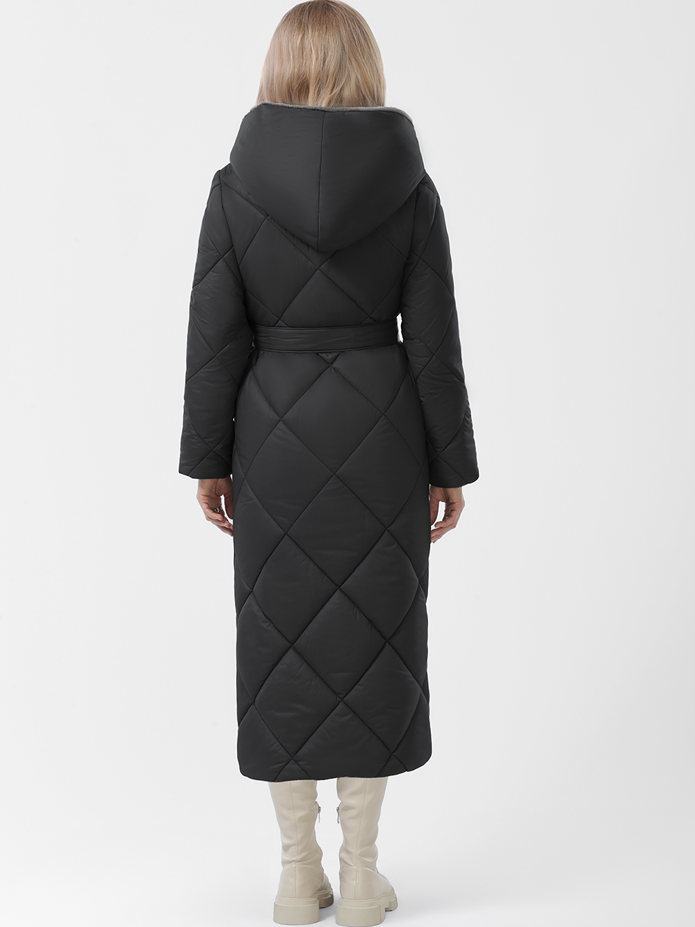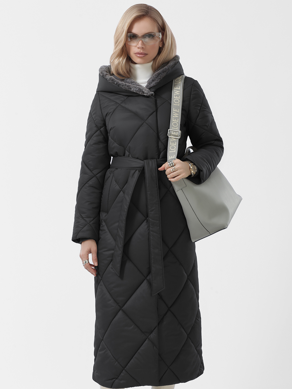 Элегантное зимнее стеганое пальто прямого силуэта. Модель выполнена из плащевой ткани стеганой с мягким теплым утеплителем. Втачной покрой рукава с трикотажными манжетами. Комфортный капюшон с качественным эко-мехом на внутренней части, капюшон фиксируется магнитом. Удобная застежка на потайные кнопки и молнию. Карманы прорезные с листочками, мешковина карманов выполнена из тонкого теплого эко-меха. Пояс в комплекте.