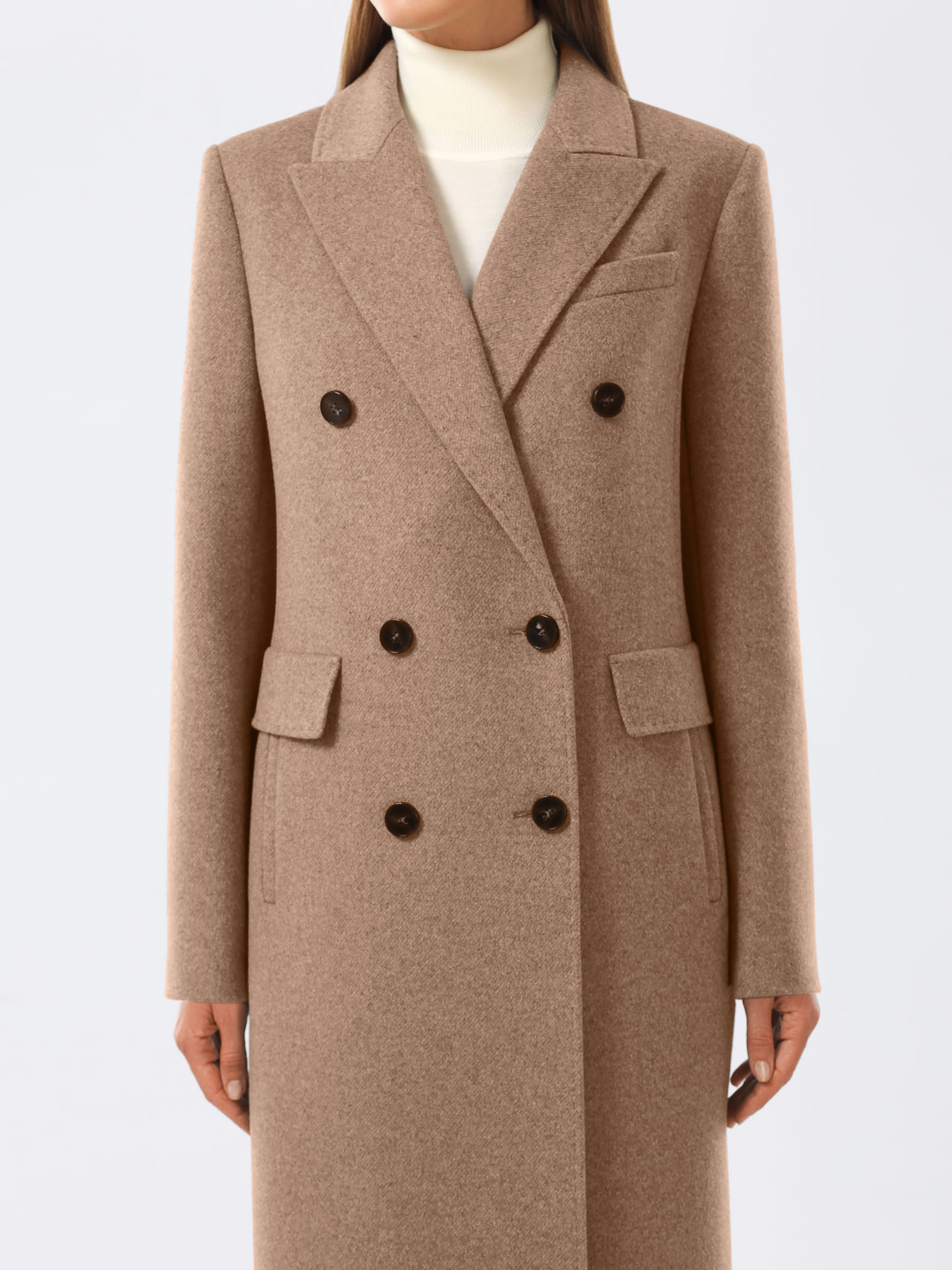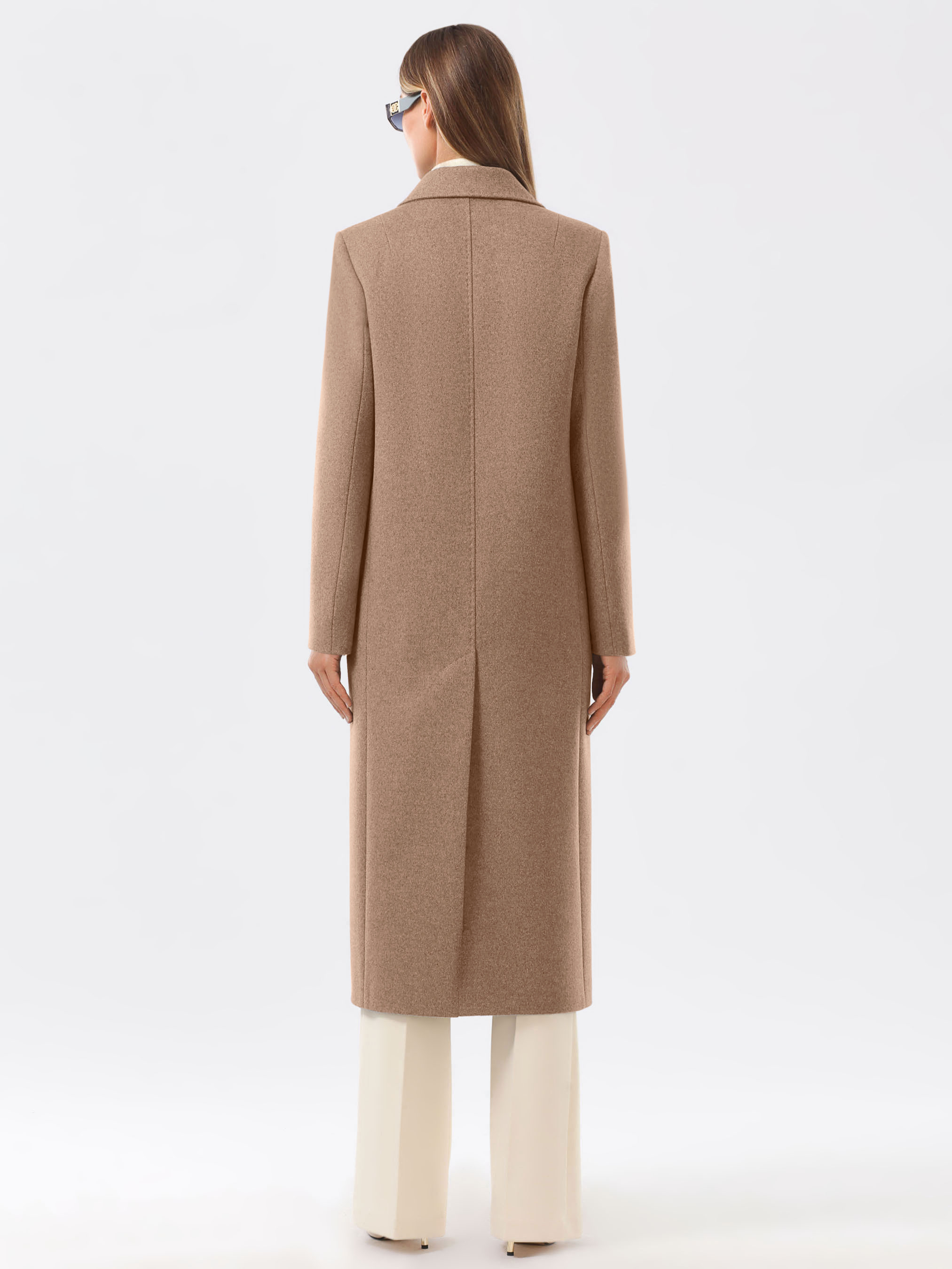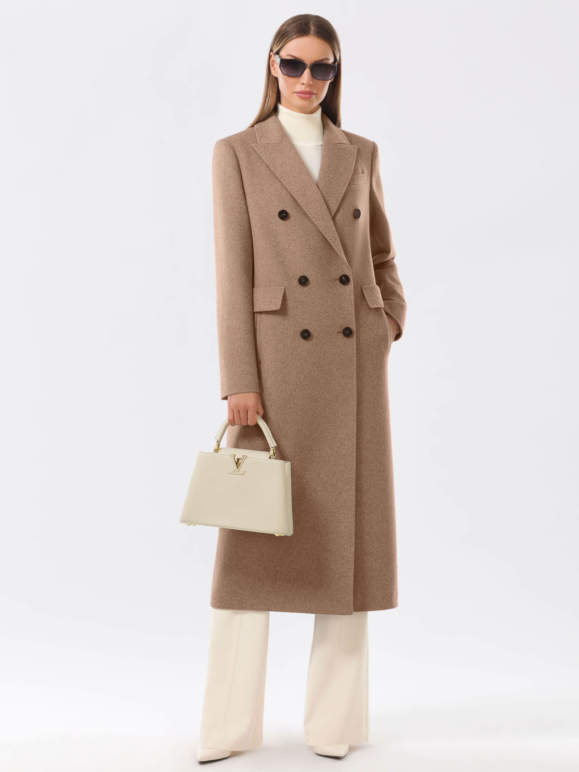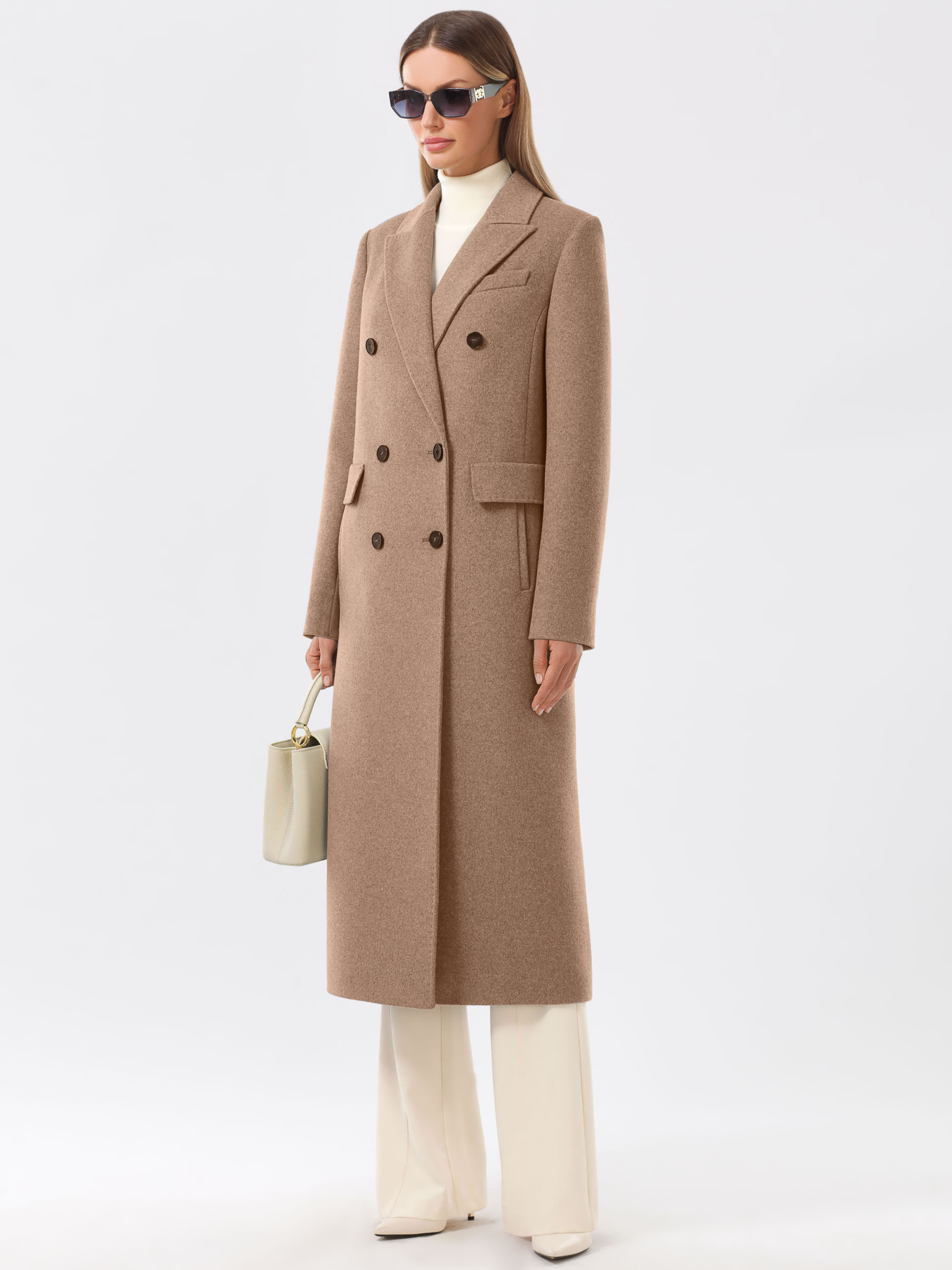 Трендовое пальто оверсайз из качественной шерстяной ткани с микроворсом. Длина изделия 125,0 см. Двубортная модель лаконичного прямого кроя, с четкими конструктивными линиями. Классические втачные рукава, немного расширенная линия плечевого пояса. Актуальный английский воротник – ласточка, его можно приподнять для более непринужденного эффектного образа. Карманы – листочки с клапанами, застежка на фирменные пуговицы. Декоративный нагрудный карман, шлица в среднем шве спинки.