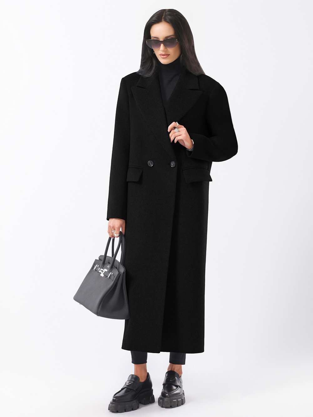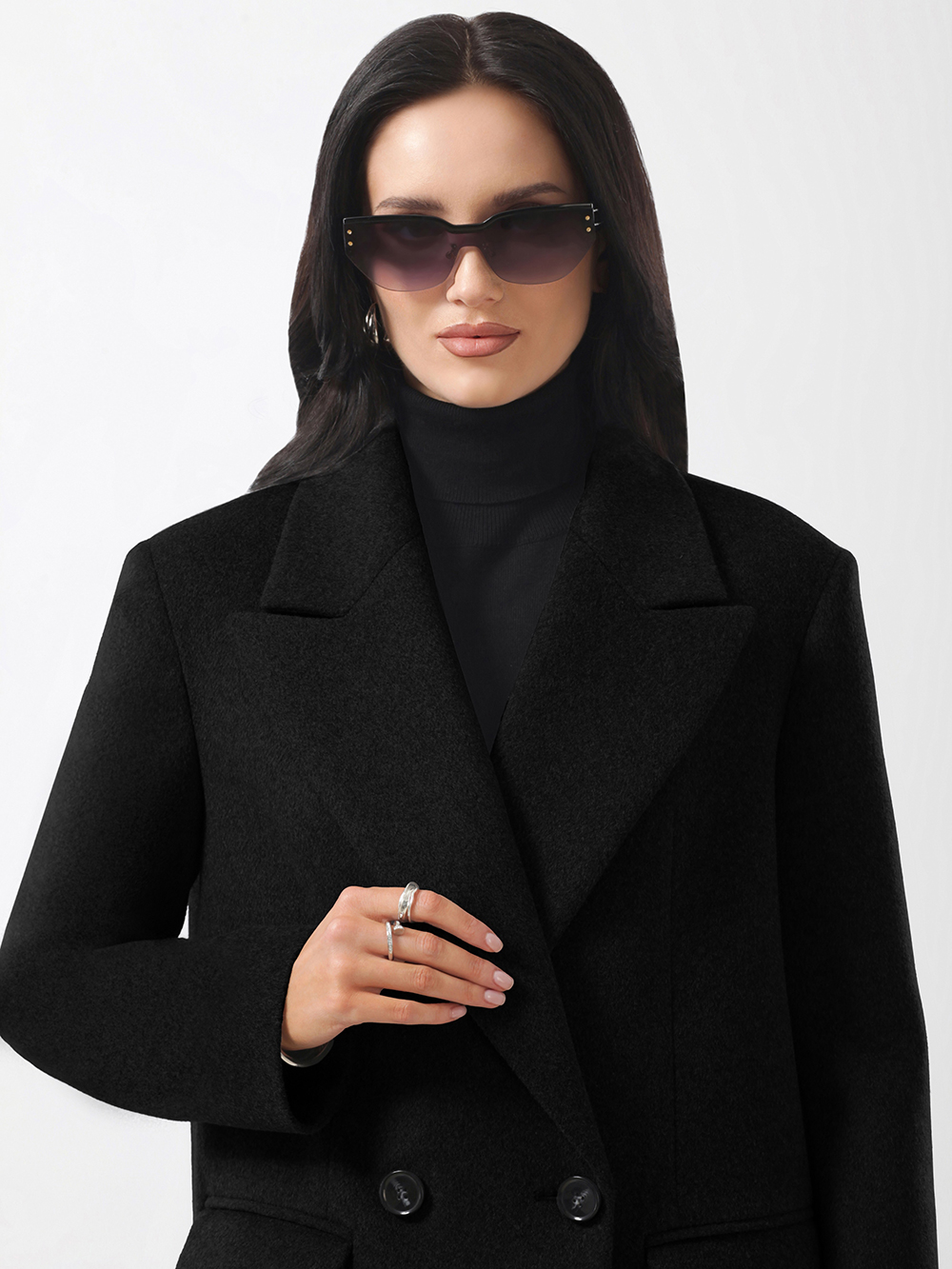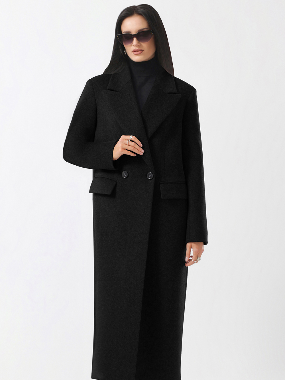 Трендовое оверсайз пальто модного прямого силуэта. Модель сочетает деловой стиль с женственной элегантностью. Пальто выполнено из благородной шерстяной ткани с микроворсом. Актуальный лаконичный крой. Расширенная линия плечевого пояса, комфортные втачные рукава. Английский воротник с модными острыми лацканами. Удобные прорезные карманы с клапанами, застежка на фирменные пуговицы. Шлица в среднем шве спинки.