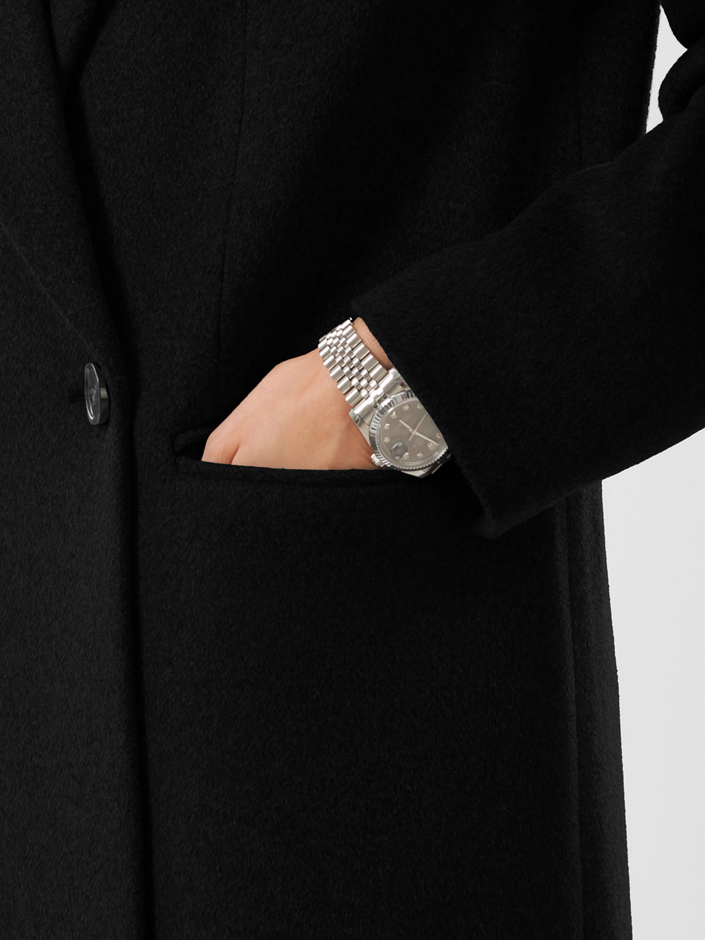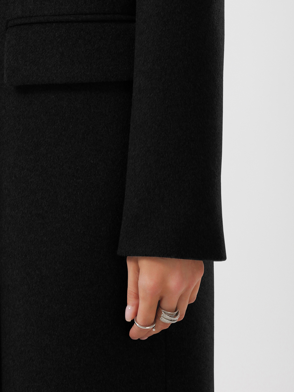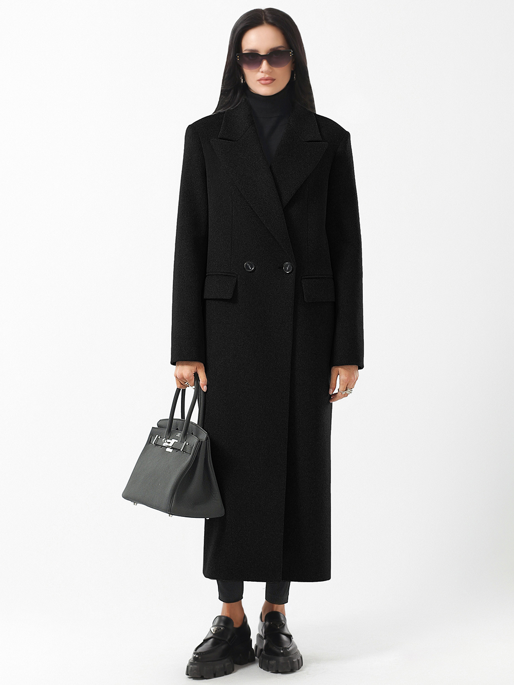 Трендовое оверсайз пальто модного прямого силуэта. Модель сочетает деловой стиль с женственной элегантностью. Пальто выполнено из благородной шерстяной ткани с микроворсом. Актуальный лаконичный крой. Расширенная линия плечевого пояса, комфортные втачные рукава. Английский воротник с модными острыми лацканами. Удобные прорезные карманы с клапанами, застежка на фирменные пуговицы. Шлица в среднем шве спинки.