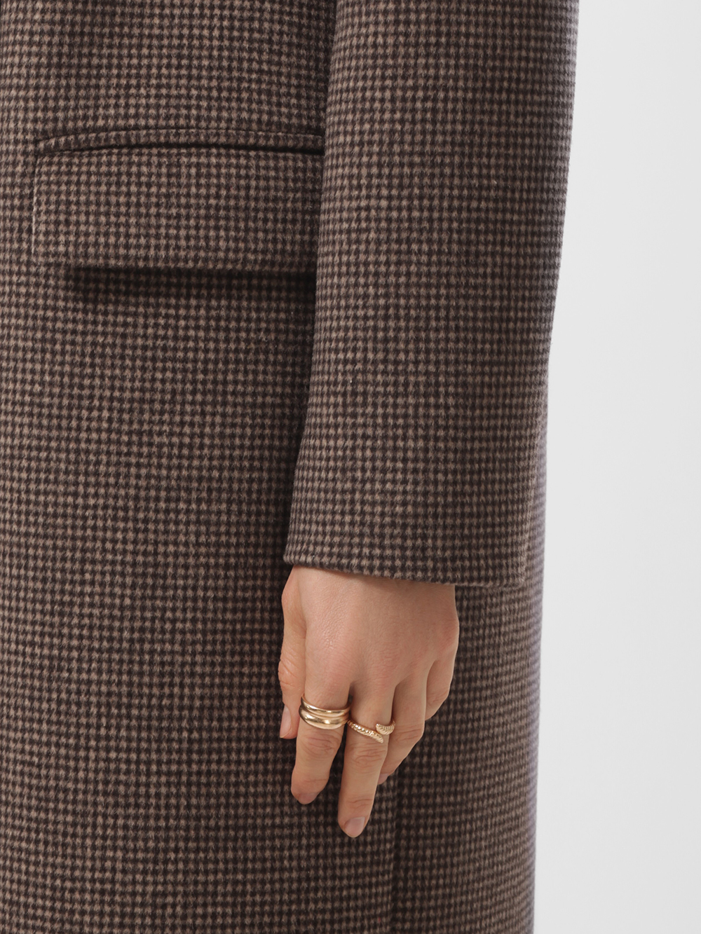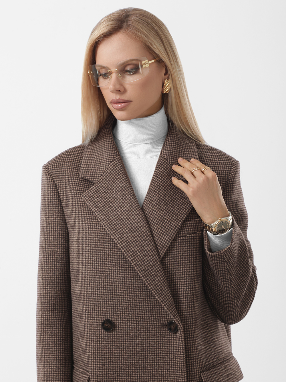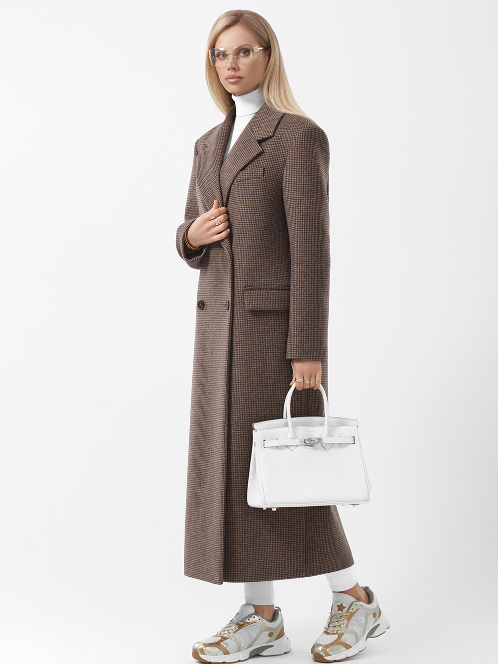 Трендовое пальто оверсайз с расширенной линией плечевого пояса. Модель актуального объёмного прямого силуэта из популярной шерстяной ткани с классическим переплетением "гусиная лапка". Актуальный лаконичный крой, комфортные втачные рукава. Английский воротник пиджачного типа. Декоративный нагрудный карман. Удобные прорезные карманы с клапанами, застежка на фирменные пуговицы. Шлица в среднем шве спинки. Пояс в комплекте.