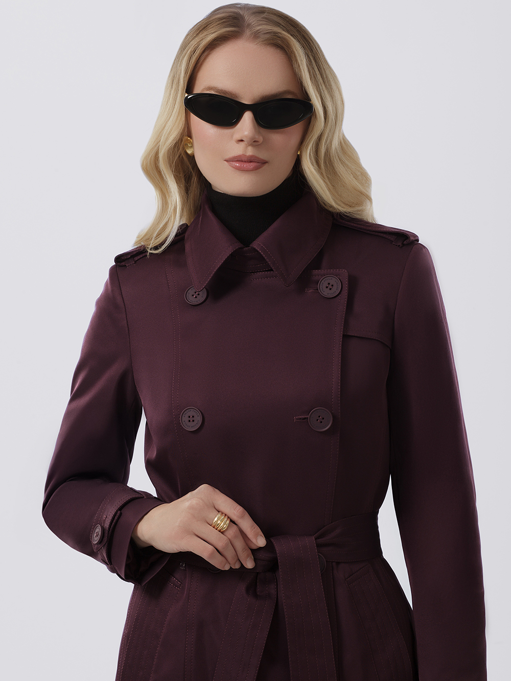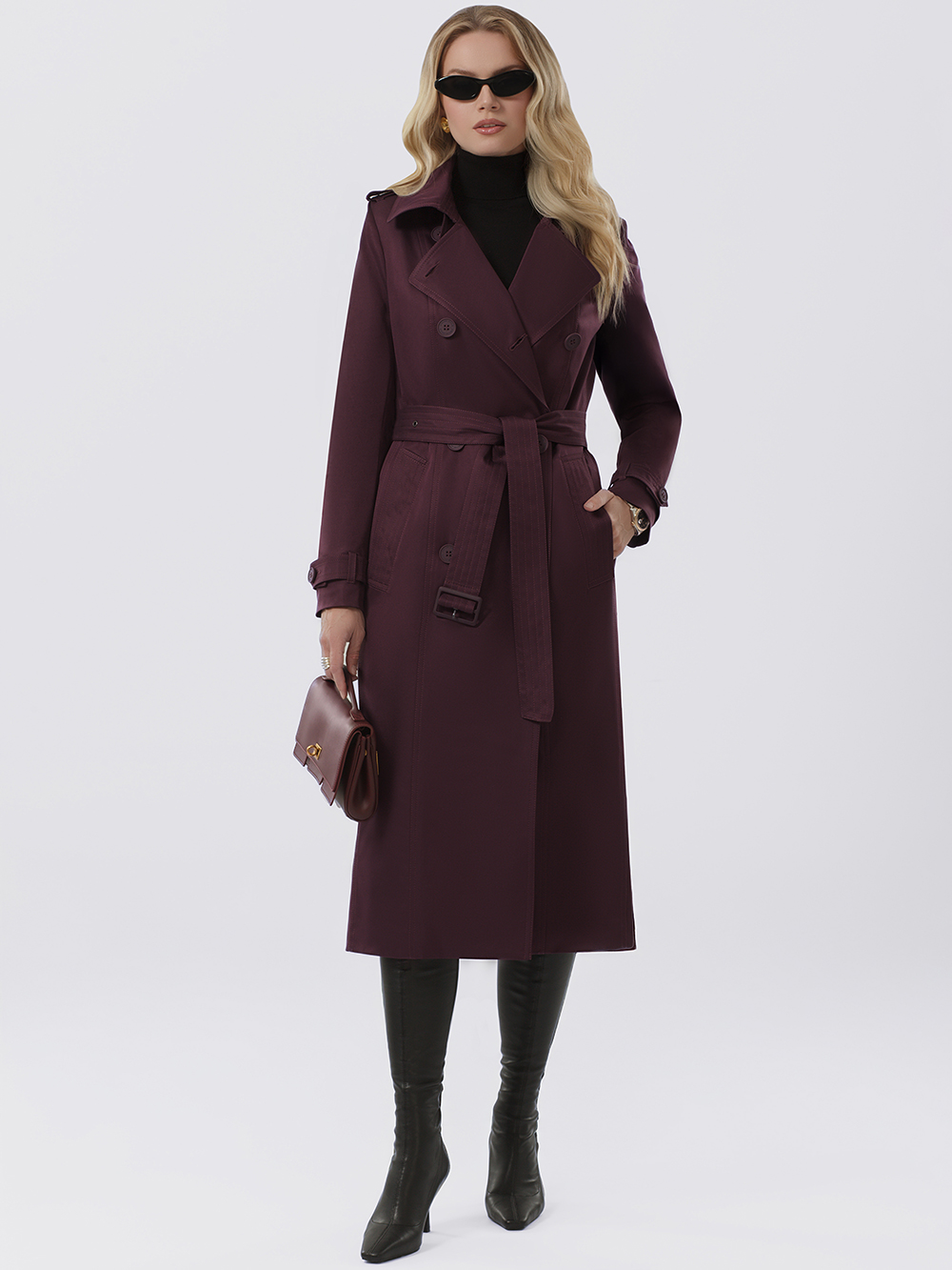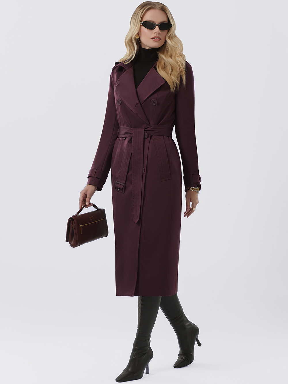 Безукоризненный двубортный плащ-тренч на стеганой с утеплителем подкладочной ткани.