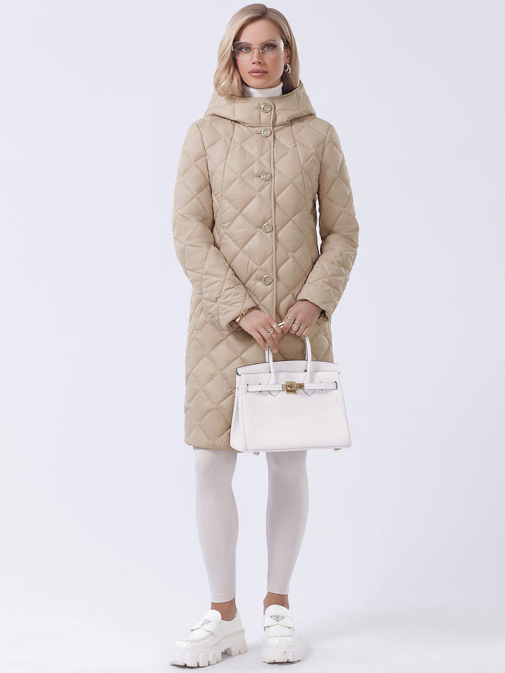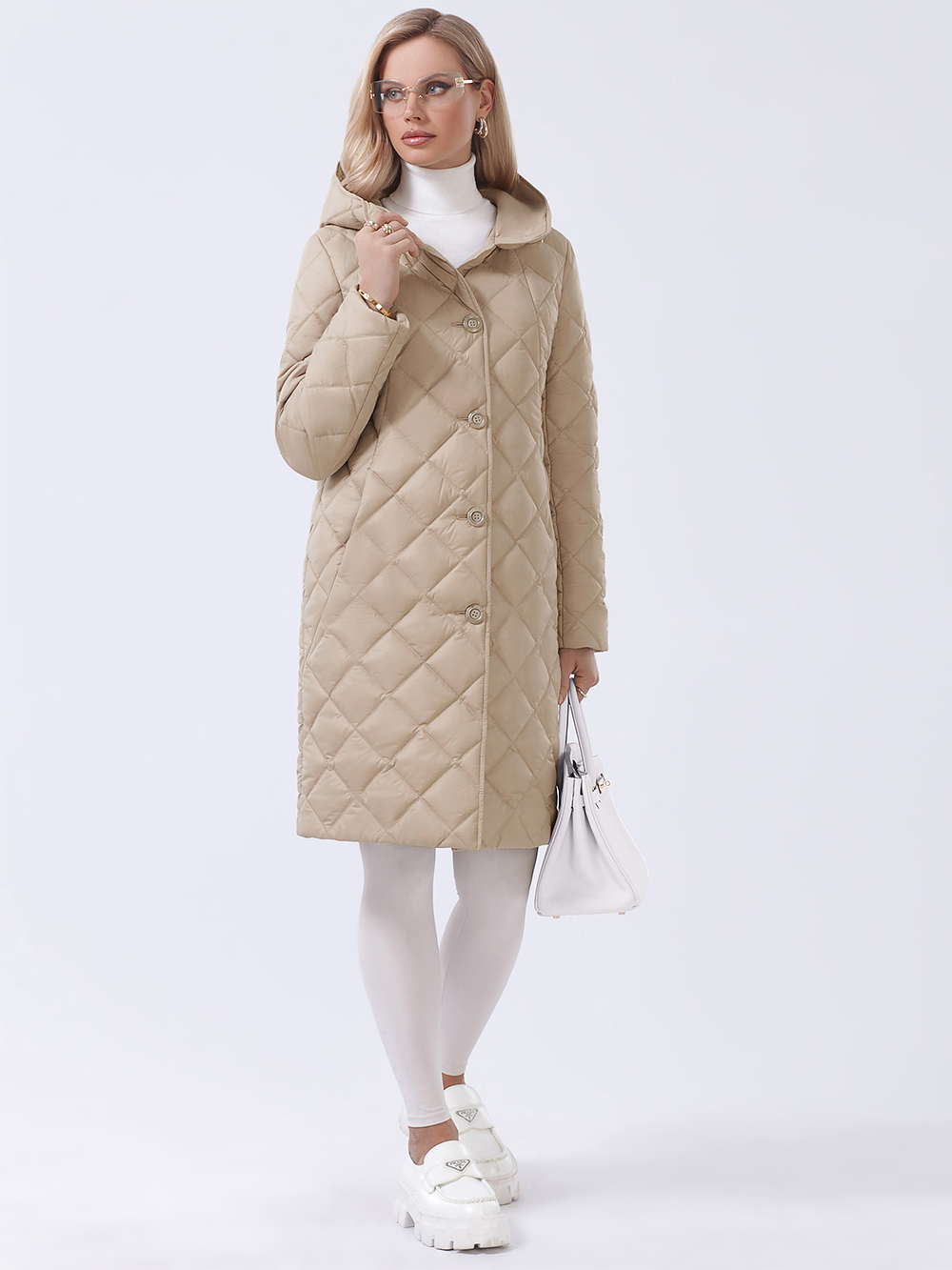Элегантное пальто комфортного прямого силуэта. Лаконичный спокойный крой, втачной покрой рукава с возможностью отворота. Уютный небольшой капюшон. Удобная застежка на фирменные пуговицы. Карманы в рельефах полочки на потайных кнопках. Пальто выполнено из плащевой ткани стеганой с мягким теплым утеплителем, с дополнительным слоем прокладочного материала - благодаря этому слою ткань более плотная и одновременно мягкая, лучше сохраняет тепло. Пальто хорошо держит форму, четко прослеживаются силуэт и модельные линии.