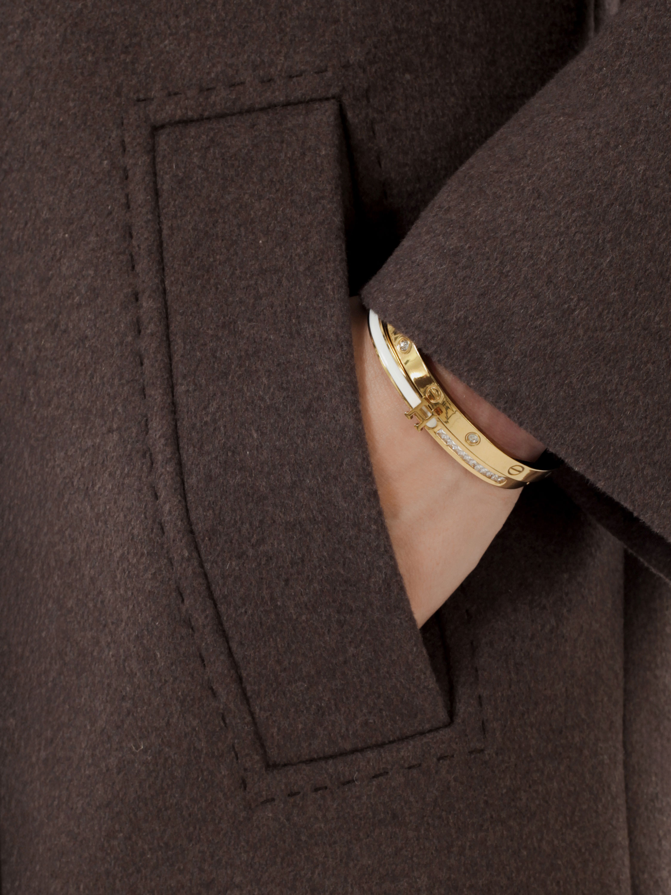 Роскошное женское пальто свободного лаконичного кроя. Модель выполнена из высококачественной шерстяной ткани с микроворсом. В состав ткани добавлен кашемир, чтобы придать ей эксклюзивную мягкость, легкость и превосходное тепло, а также обеспечить пальто благородный и элегантный внешний вид. Плавная линия плеча, комфортные уютные рукава рубашечного покроя с возможностью отворота. Удобные прорезные карманы с листочками. Застежка на фирменные пуговицы. Отложной воротник раскладывается в английский, лацкан фиксируется пуговицей. Шлица в среднем шве спинки. Пояс из ткани верха в комплекте.