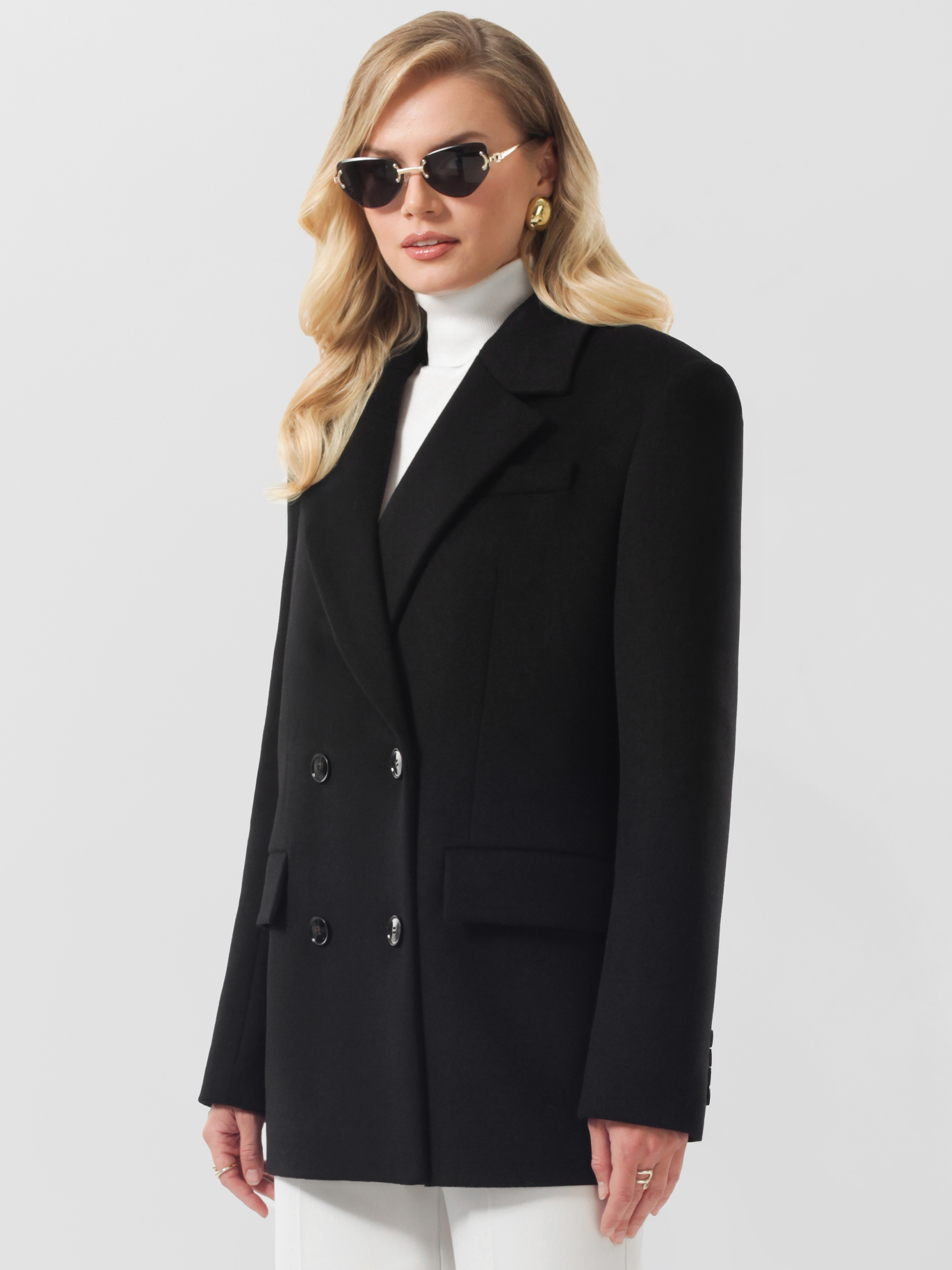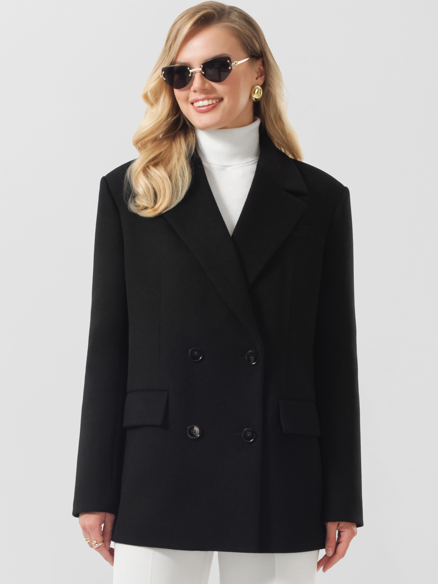 Трендовое пальто пиджак женское оверсайз с расширенной линией плечевого пояса. Модель выразительного прямого силуэта из высококачественной шерстяной ткани с микроворсом. В состав ткани добавлен кашемир, чтобы придать ей эксклюзивную мягкость, легкость и превосходное тепло, а также обеспечить пальто благородный и элегантный внешний вид. Актуальный лаконичный крой, комфортные втачные рукава с отлетными шлицами в нижней части. Английский воротник. Декоративный нагрудный карман. Удобные прорезные карманы с клапанами, застежка на фирменные пуговицы.