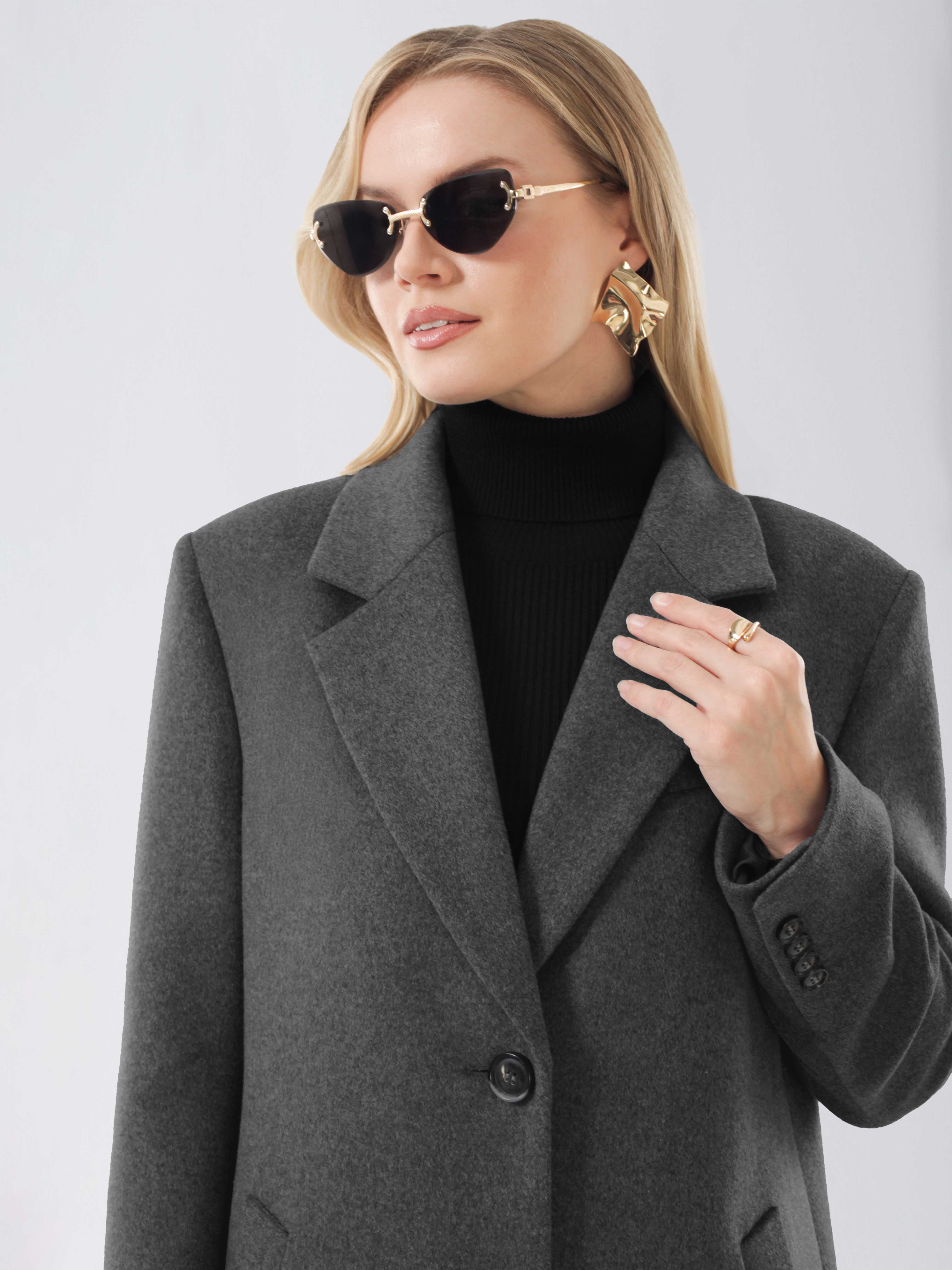 Дизайнерское премиум пальто лаконичного кроя расширенной линией плечевого пояса. Уникальная оверсайз модель business casual из высококачественной шерстяной ткани с микроворсом. В состав ткани добавлен кашемир, чтобы придать ей эксклюзивную мягкость, легкость и превосходное тепло, а также обеспечить пальто благородный и элегантный внешний вид.