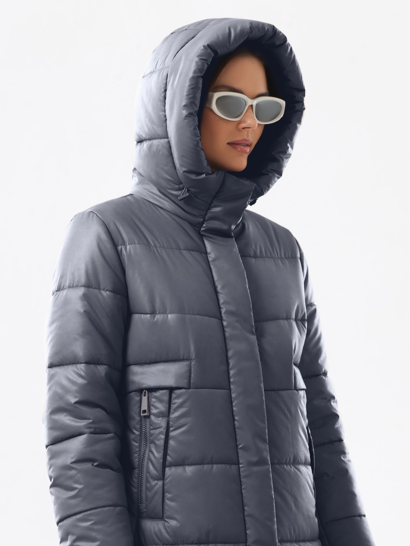 Трендовое дизайнерское пальто из лёгкой плащевой ткани, стеганой с синтепоном. Модель свободного кроя с комфортным капюшоном с кулиской на фиксаторах. Втачные рукава с трикотажными манжетами, которые облегают запястье и препятствуют проникновению холодного воздуха. Застежка под ветрозащитным клапаном – двухзамковая молния и установочные кнопки. Карманы на молниях с декоративными листочками. Мешковина карманов выполнена из мягкой, приятной на ощупь ткани. Для удобства при движении, предусмотрены разрезы в боковых швах на молниях invisible. Внутренний карман на потайной молнии. Размер рекомендовано подбирать по большему показателю – либо по объёму груди, либо по бёдрам. Температурный режим носит рекомендательный характер до -20°C, далее все зависит от индивидуальной переносимости температур.