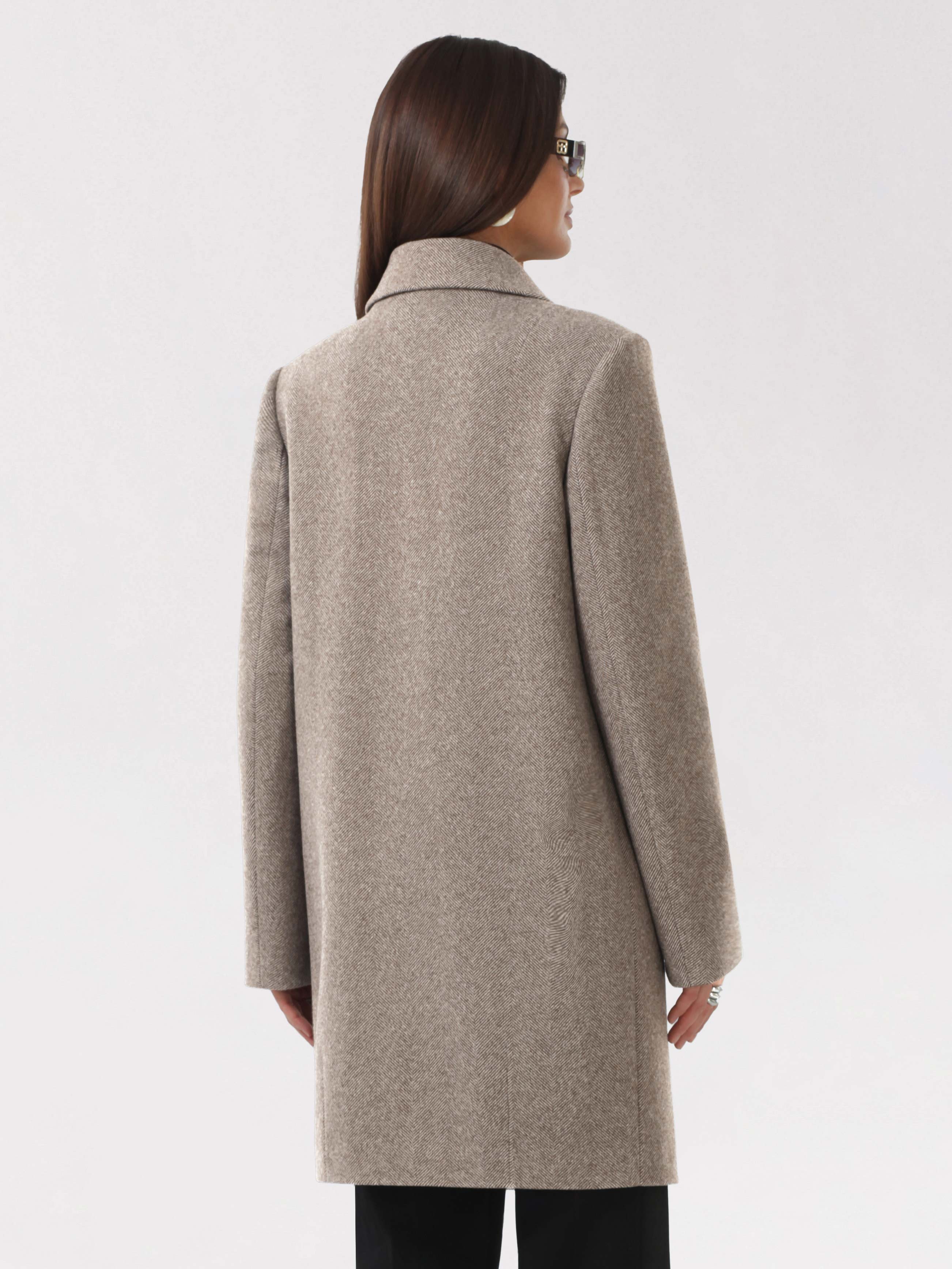 Молодежное пальто лаконичного кроя, с четкими конструктивными линиями, в стиле мужского пиджака. Двубортная модель прямого силуэта с застежкой на акцентные пуговицы. Втачные рукава, карманы – листочки, воротник - английский с длинными лацканами, его можно приподнять для более непринужденного эффектного образа. Пальто выполнено из трендовой шерстяной ткани в твидовом переплетении. Размер рекомендовано подбирать по бОльшему показателю - либо по объёму груди, либо по бёдрам. Температурный режим носит рекомендательный характер до +5 °C, далее все зависит от индивидуальной переносимости температур.