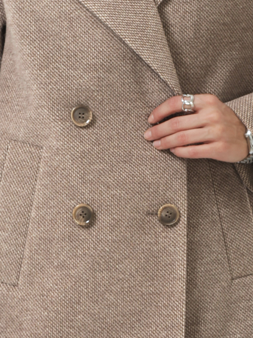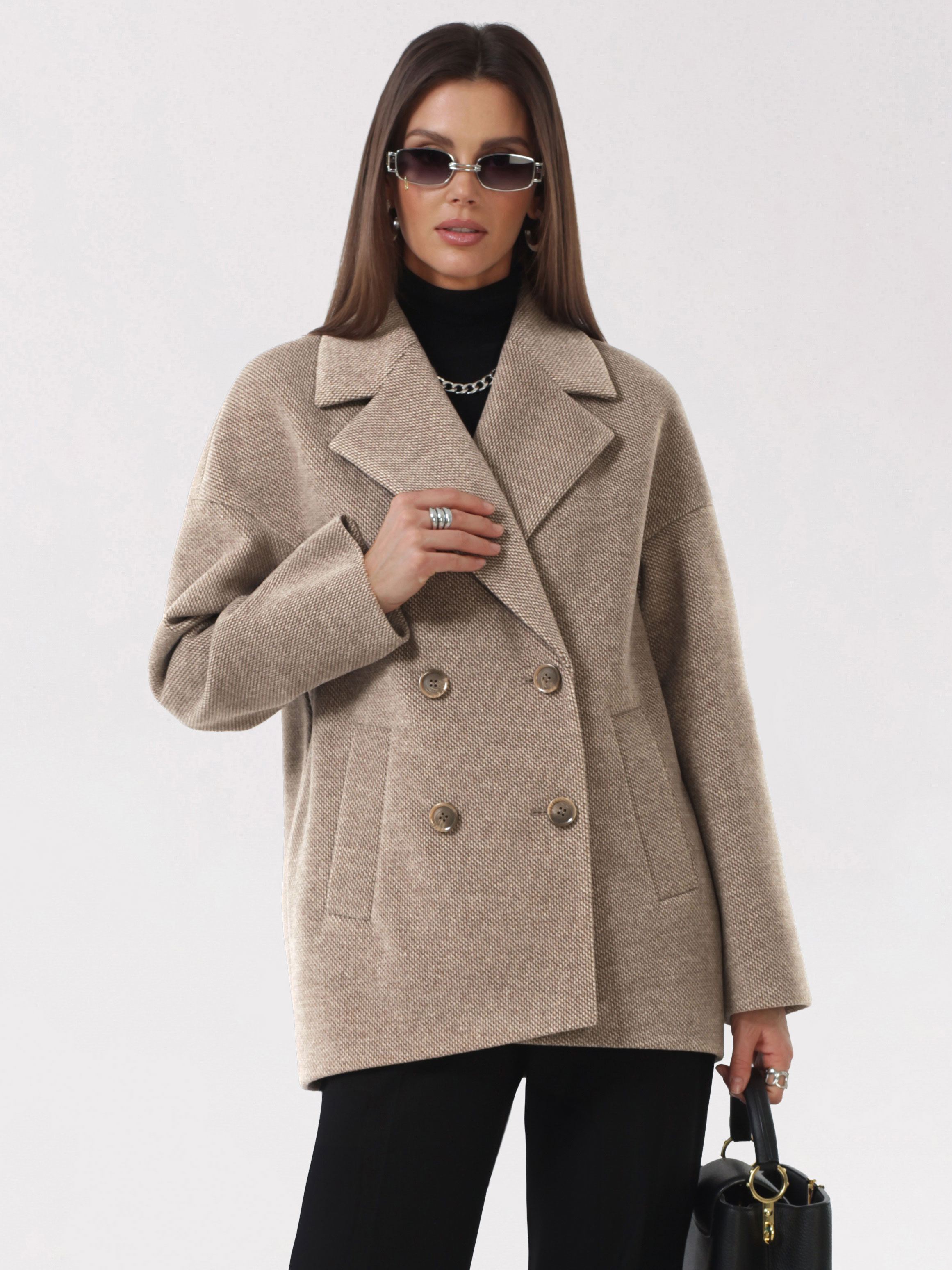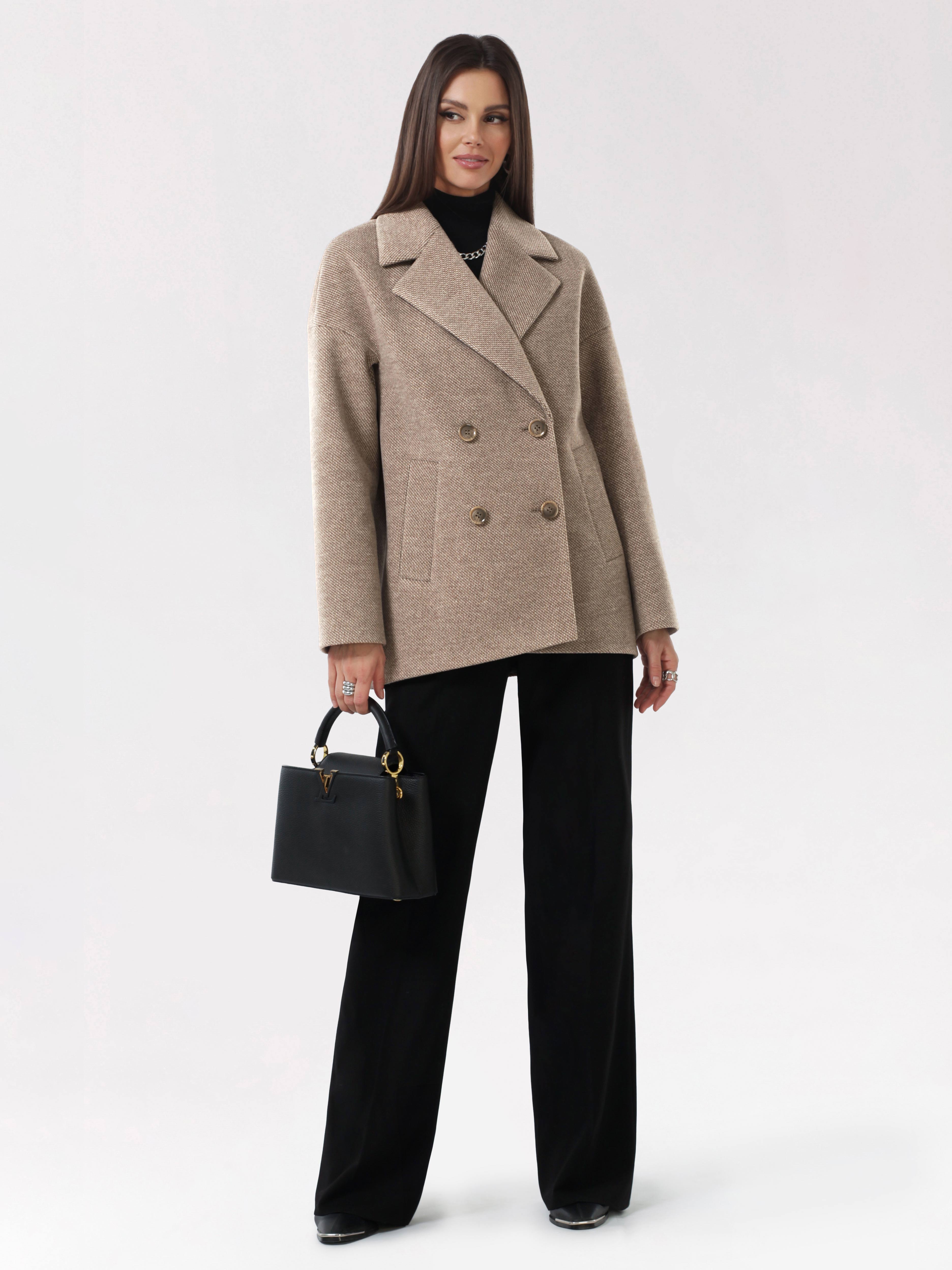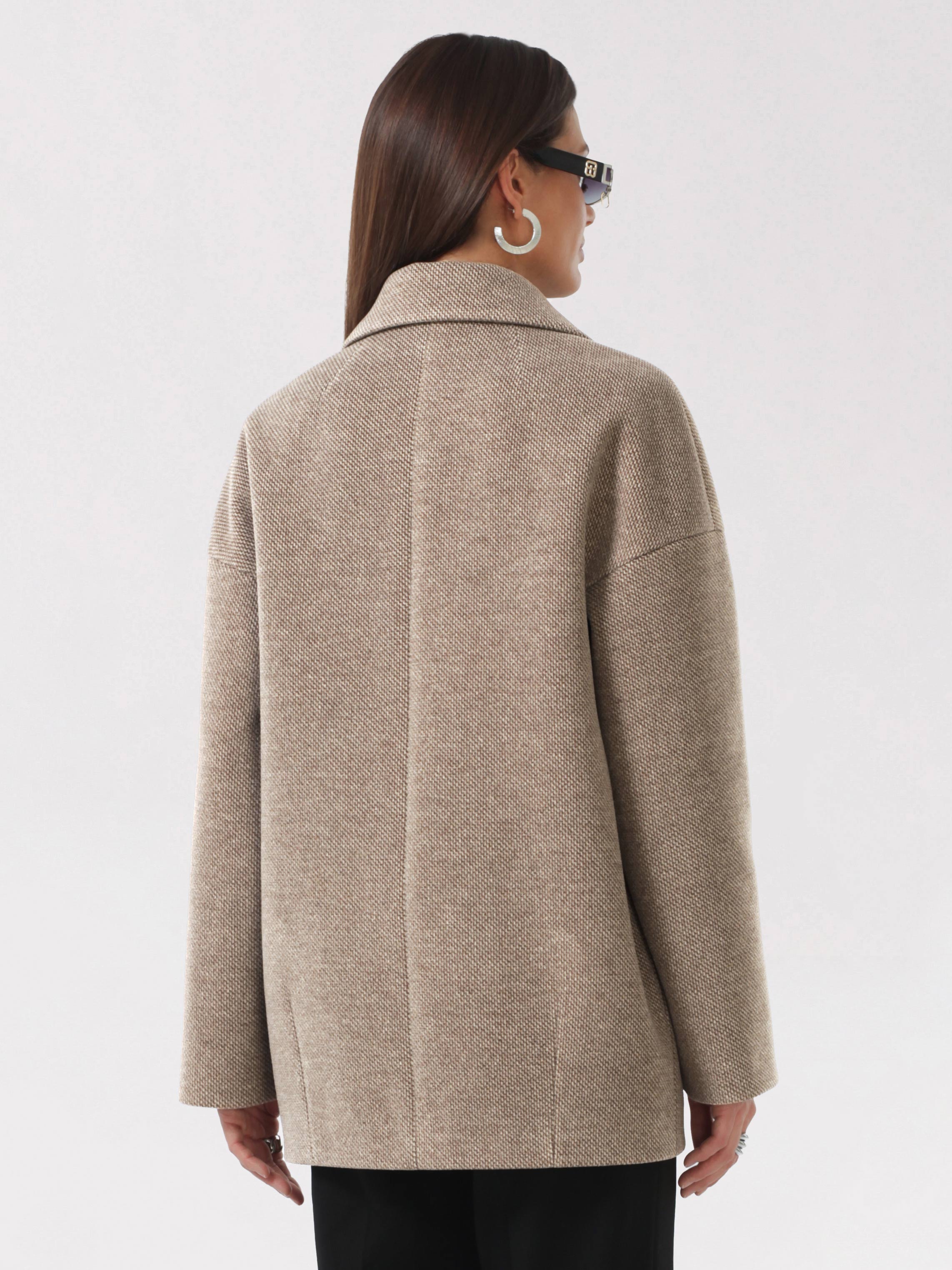 Модное короткое пальто из мягкой шерстяной ткани в твидовом переплетении. Свободный, зауженный книзу силуэт и асимметричная длина (полочка чуть короче спинки) создают утонченный, но динамичный образ. В мягком покрое рукава предусмотрена ромбовидная ластовица, что гарантирует комфорт и удобство при движении. Застежка на пуговицы, удобные карманы - листочки, английский воротник с четкой линией обрезки. Размер рекомендовано подбирать по бОльшему показателю - либо по объёму груди, либо по бёдрам. Температурный режим носит рекомендательный характер до +5 °C, далее все зависит от индивидуальной переносимости температур.