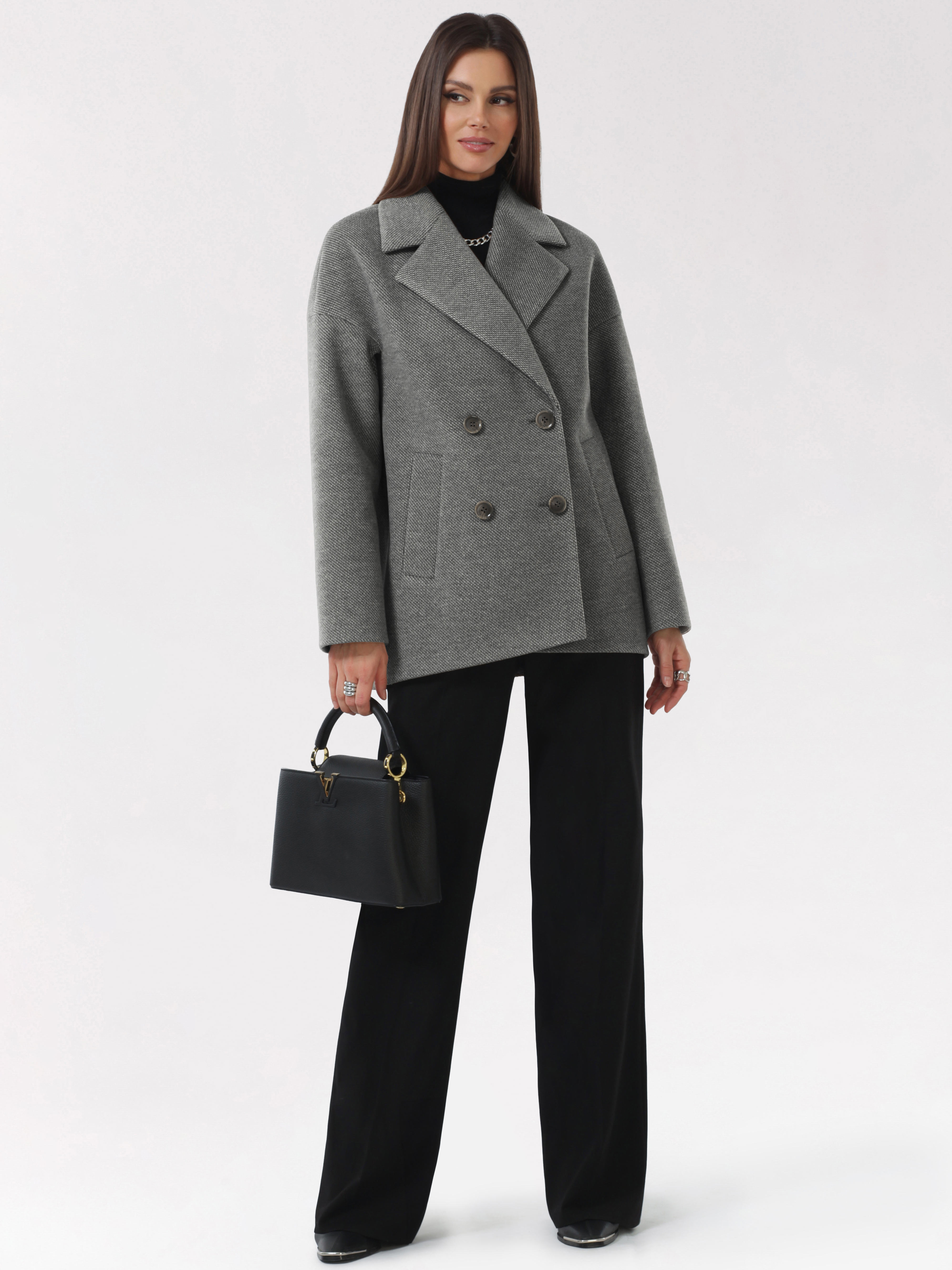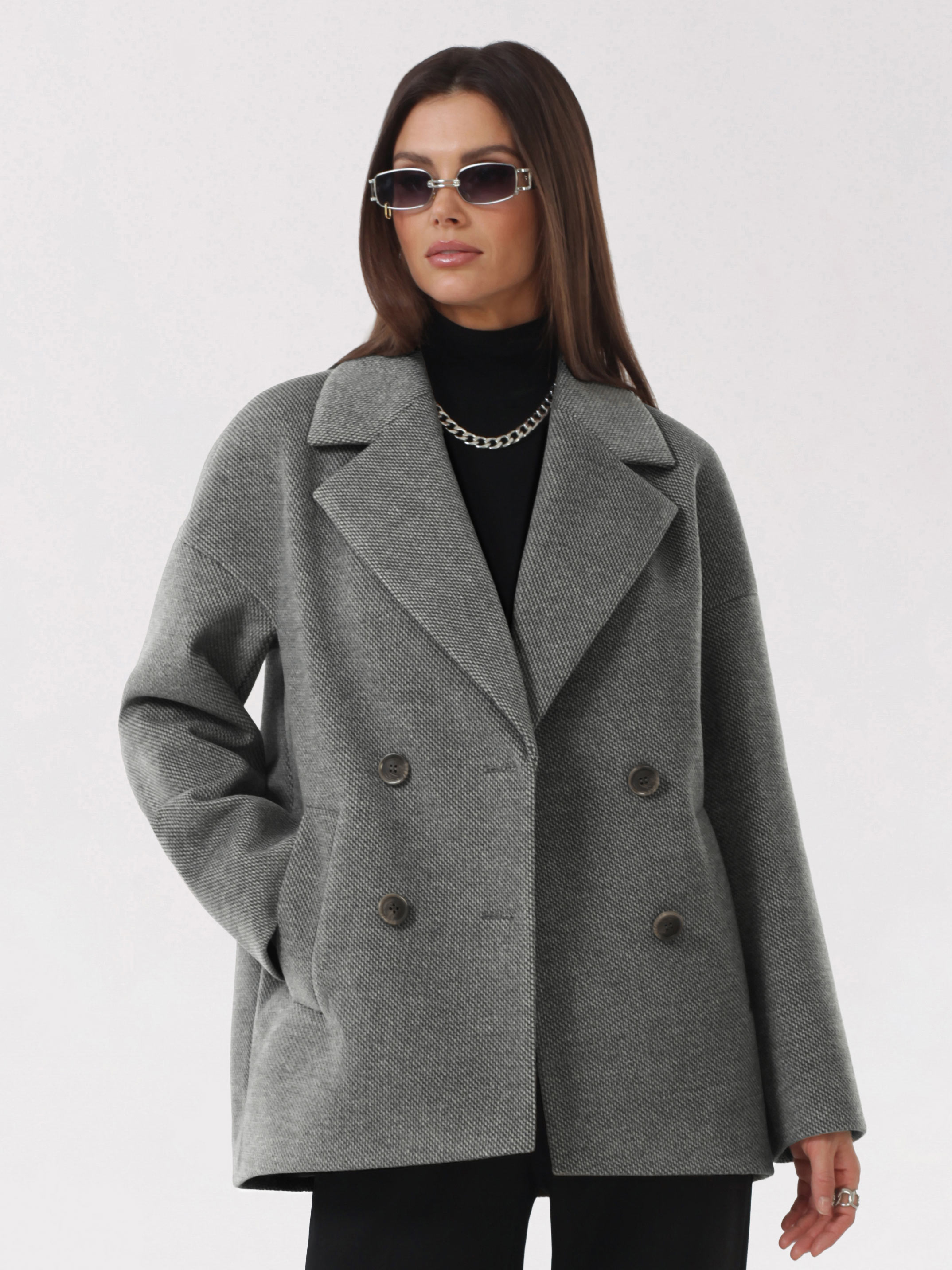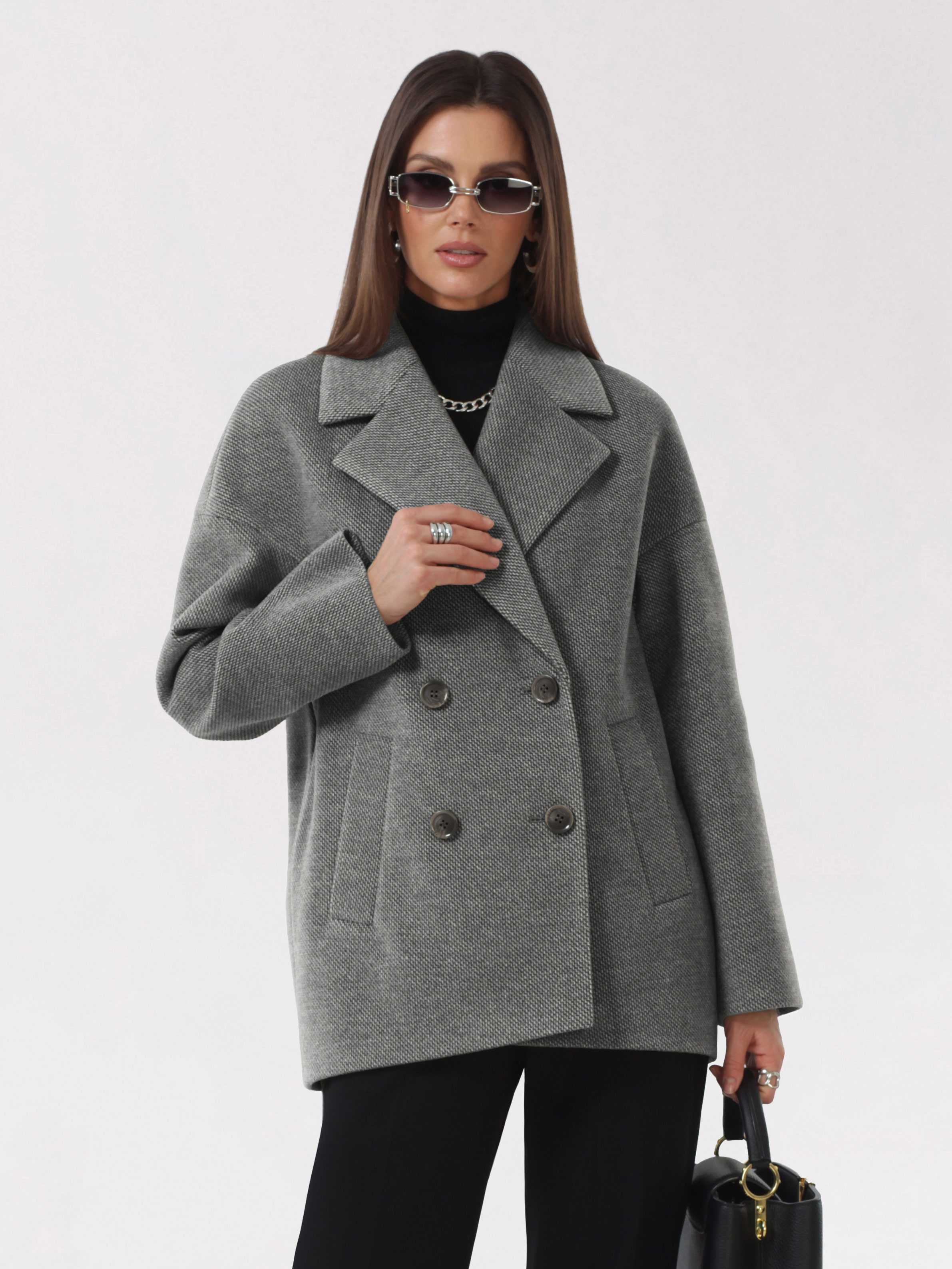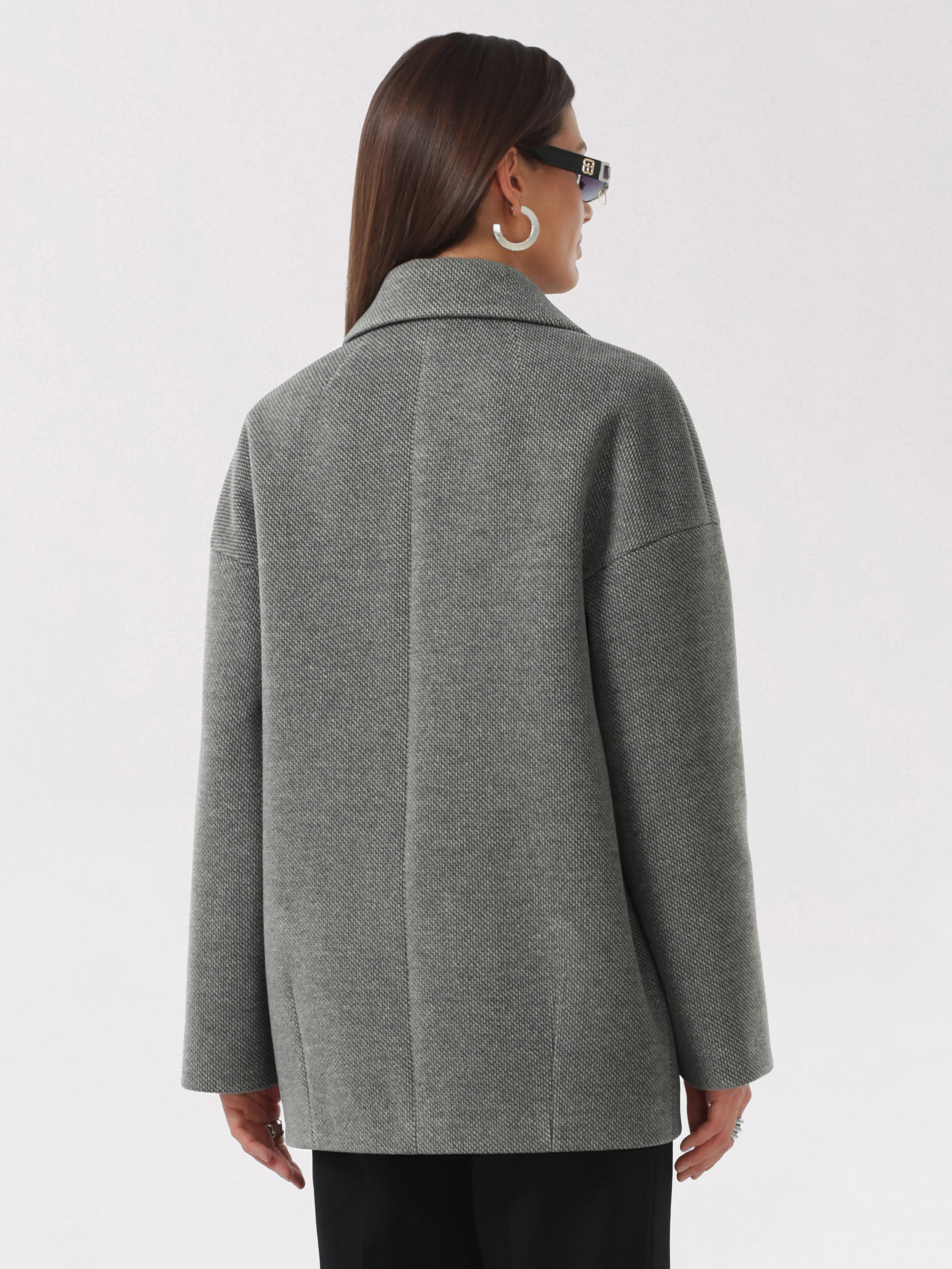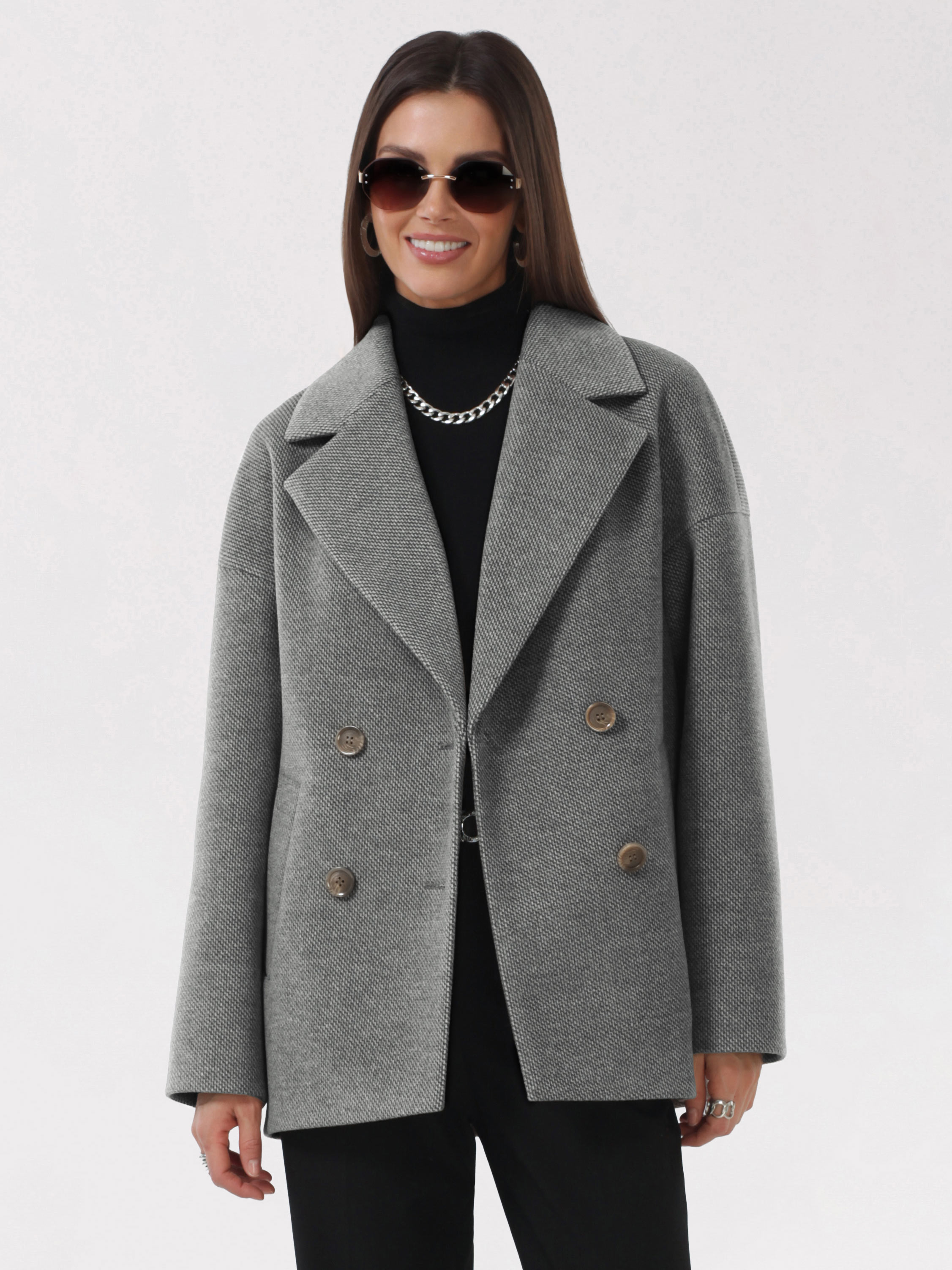 Модное короткое пальто из мягкой шерстяной ткани в твидовом переплетении. Свободный, зауженный книзу силуэт и асимметричная длина (полочка чуть короче спинки) создают утонченный, но динамичный образ. В мягком покрое рукава предусмотрена ромбовидная ластовица, что гарантирует комфорт и удобство при движении. Застежка на пуговицы, удобные карманы - листочки, английский воротник с четкой линией обрезки. Размер рекомендовано подбирать по бОльшему показателю - либо по объёму груди, либо по бёдрам. Температурный режим носит рекомендательный характер до +5 °C, далее все зависит от индивидуальной переносимости температур.