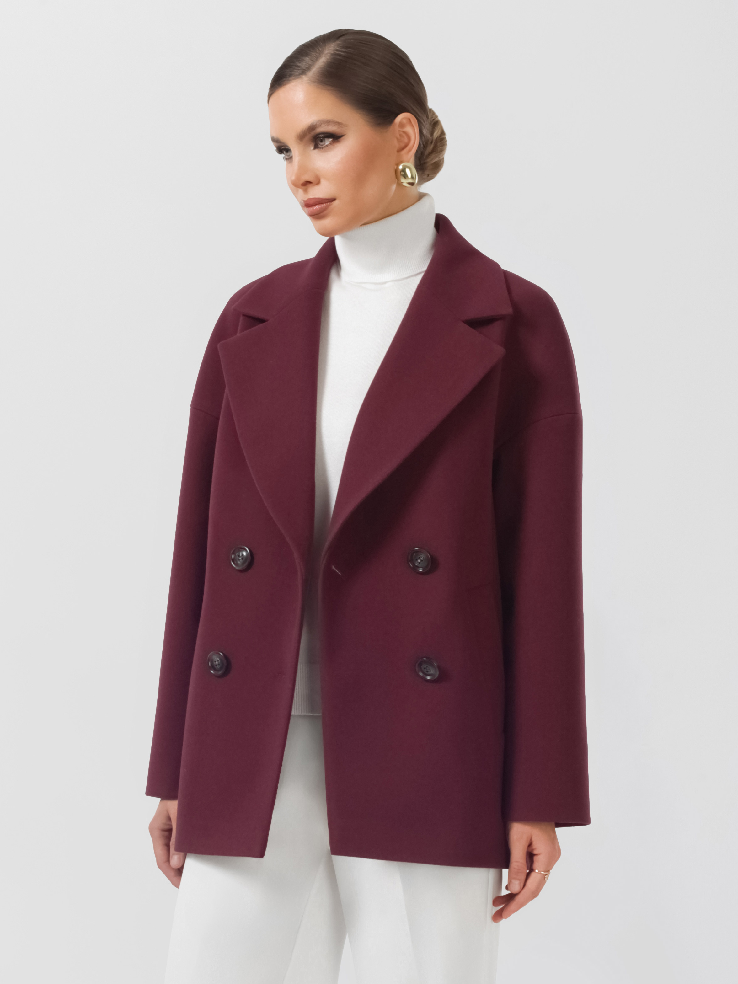 Модное короткое пальто из мягкой шерстяной ткани. Свободный, зауженный книзу силуэт и асимметричная длина (полочка чуть короче спинки) создают утонченный, но динамичный образ. В мягком покрое рукава предусмотрена ромбовидная ластовица, что гарантирует комфорт и удобство при движении. Застежка на пуговицы, удобные карманы - листочки, английский воротник с четкой линией обрезки. Размер рекомендовано подбирать по бОльшему показателю - либо по объёму груди, либо по бёдрам. Температурный режим носит рекомендательный характер до +5 °C, далее все зависит от индивидуальной переносимости температур.