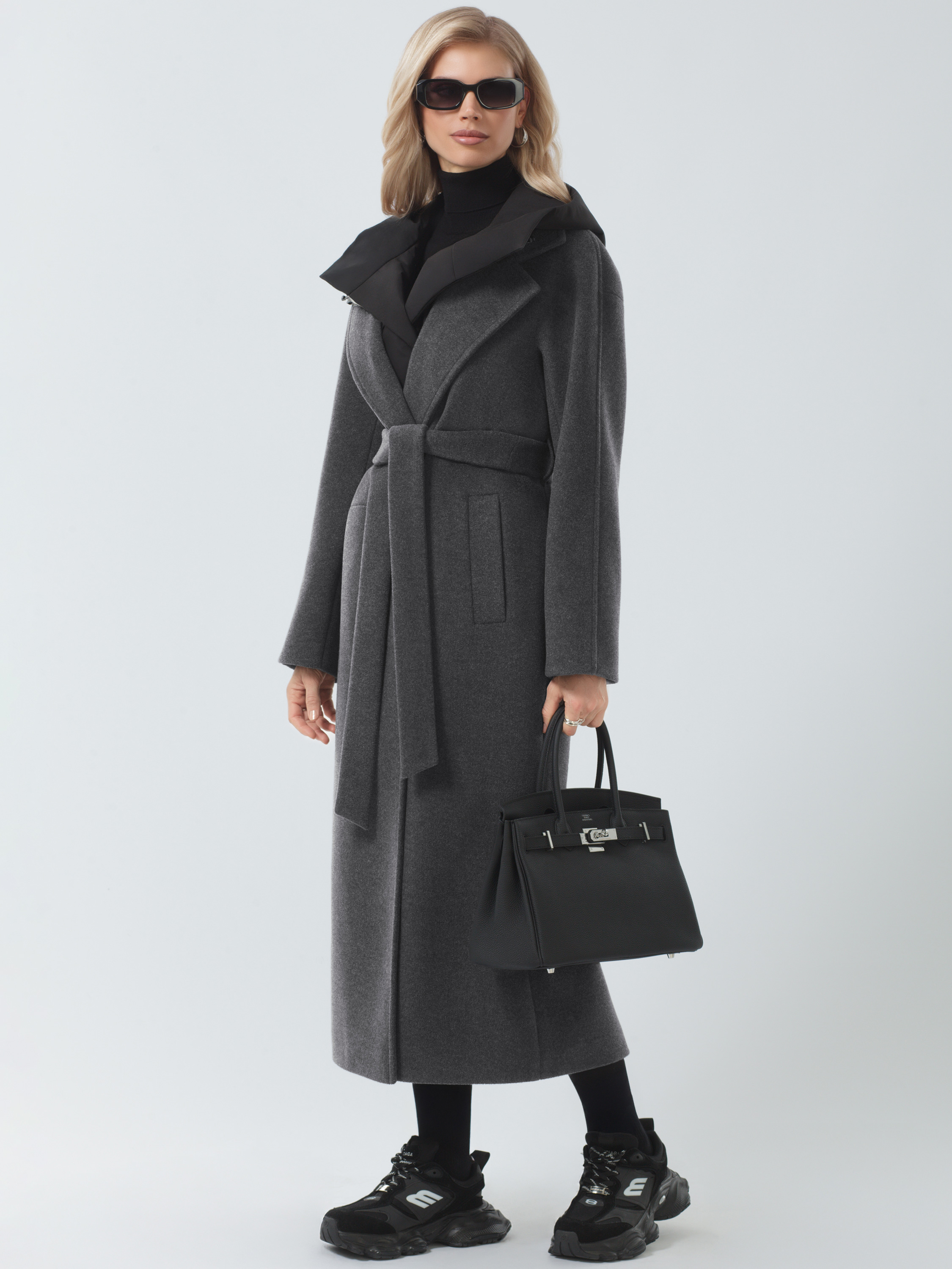 Cупермодное пальто в длине макси. Модель свободного силуэта выполнена в мягкой пластичной ткани с микроворсом.