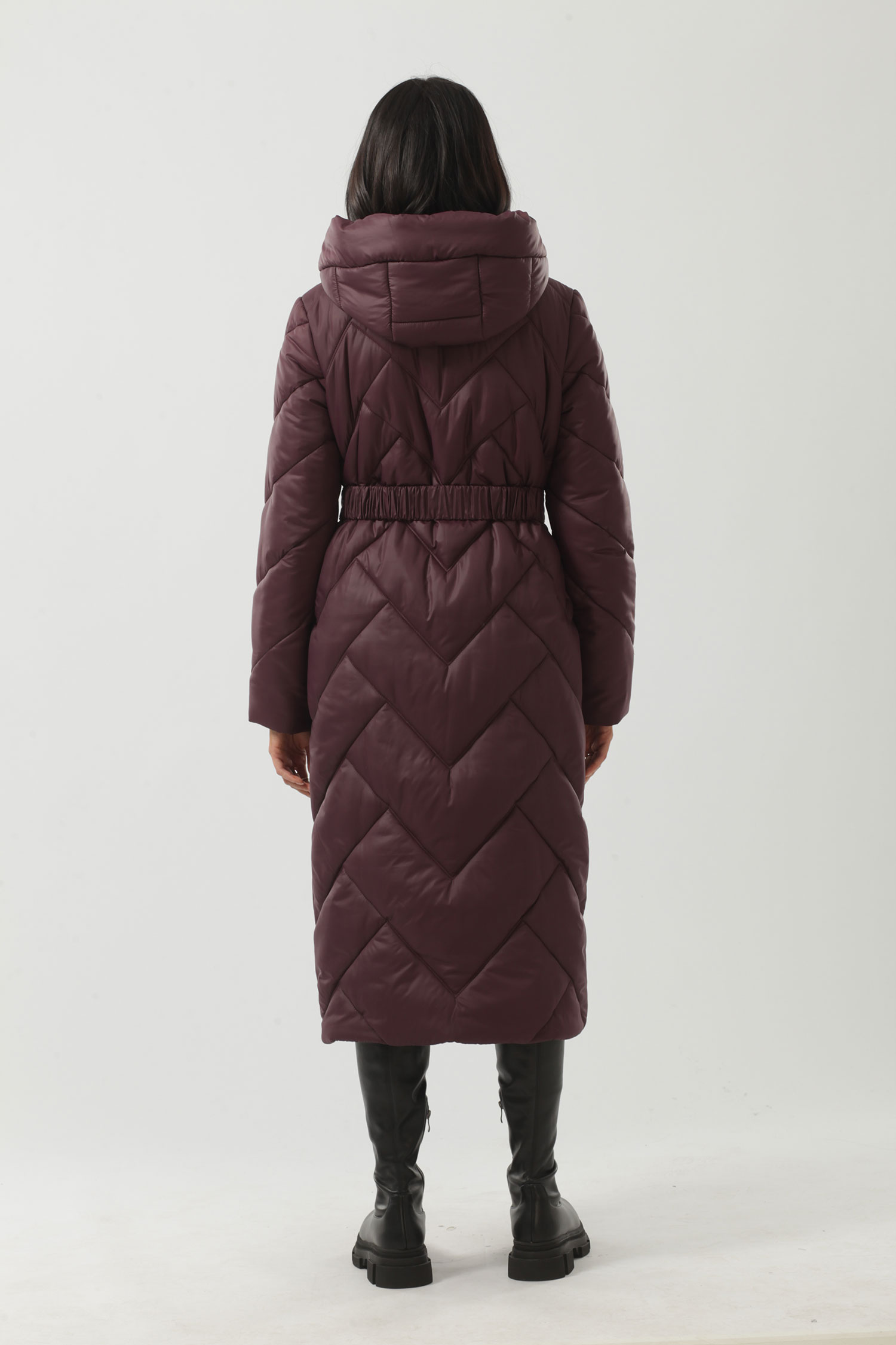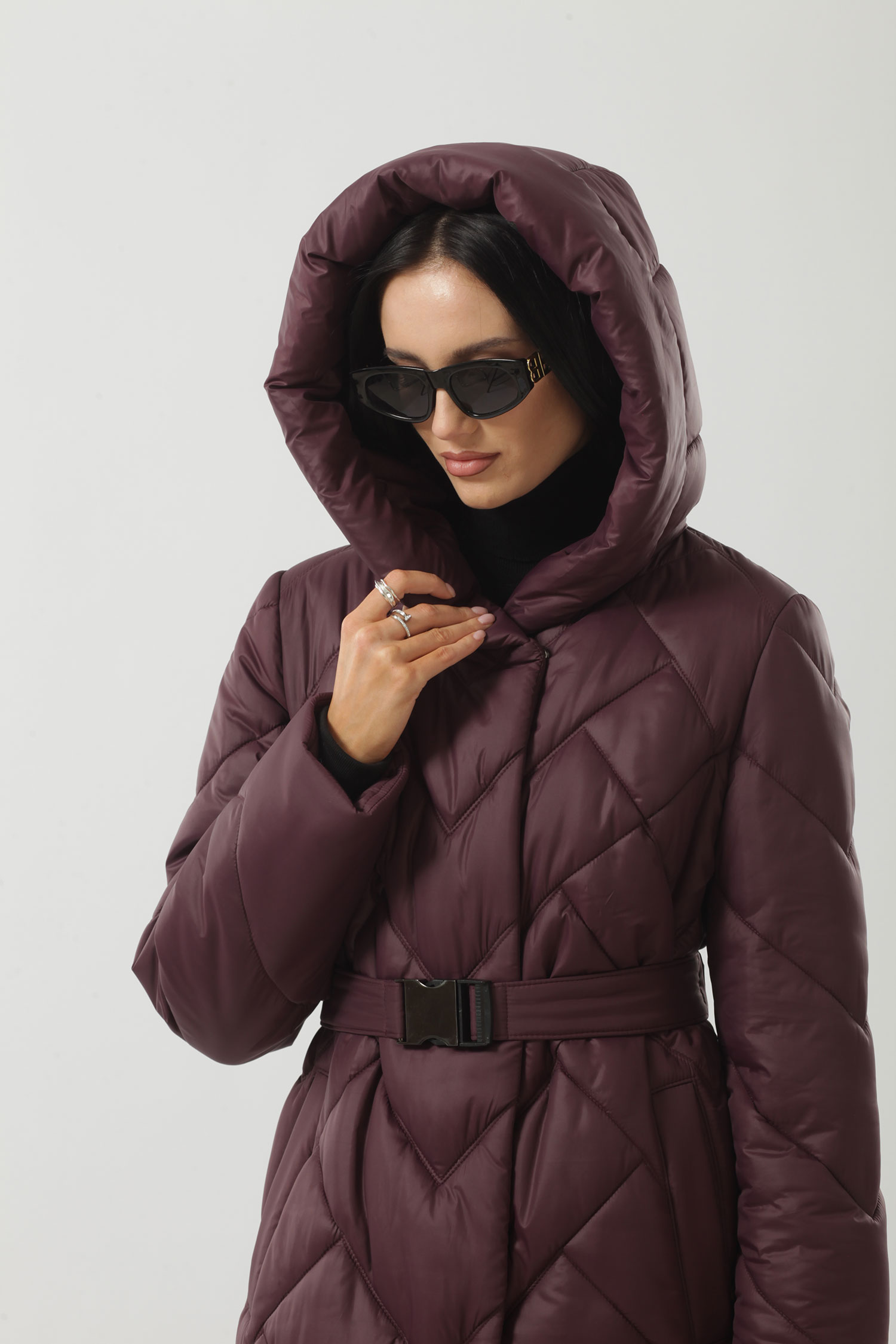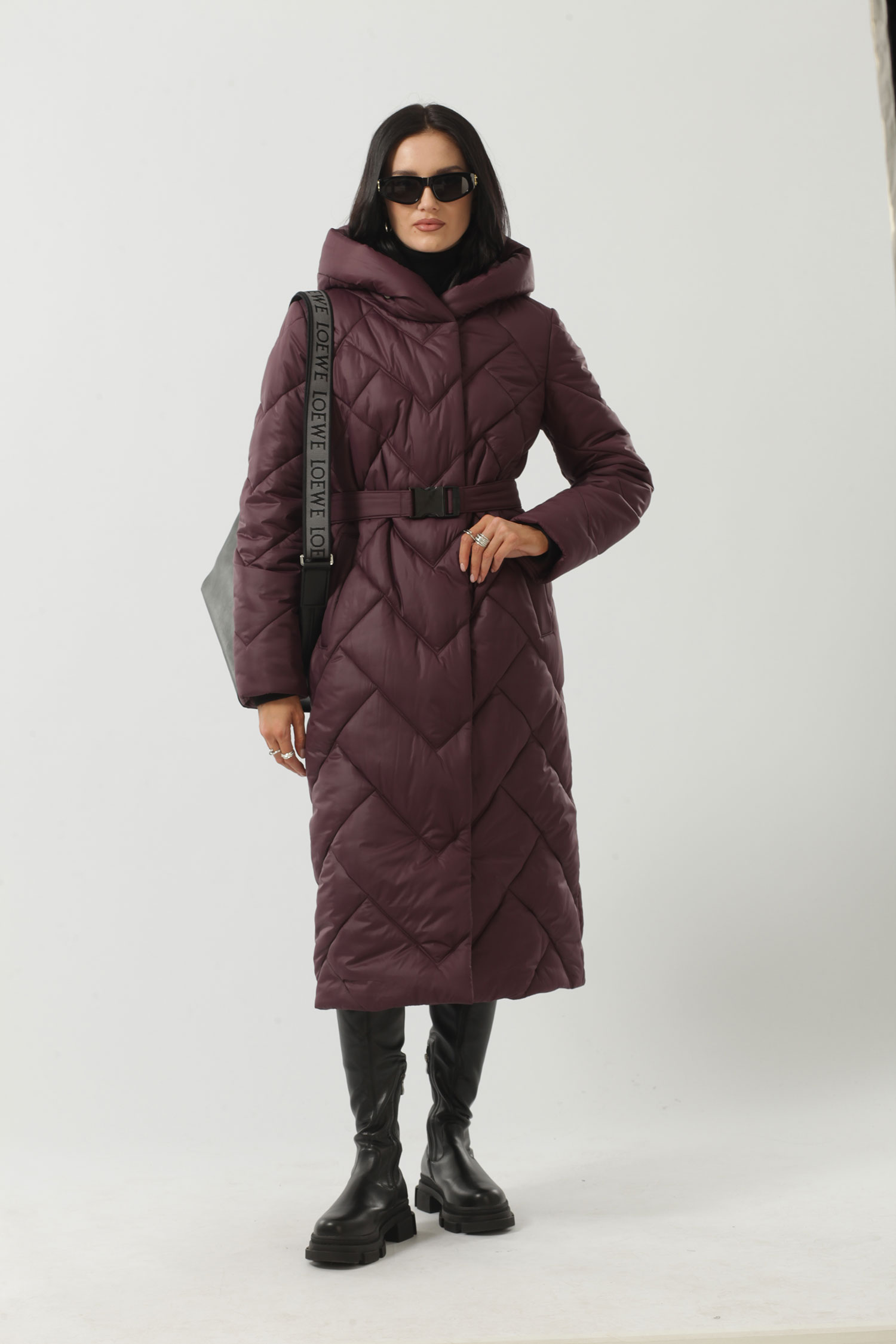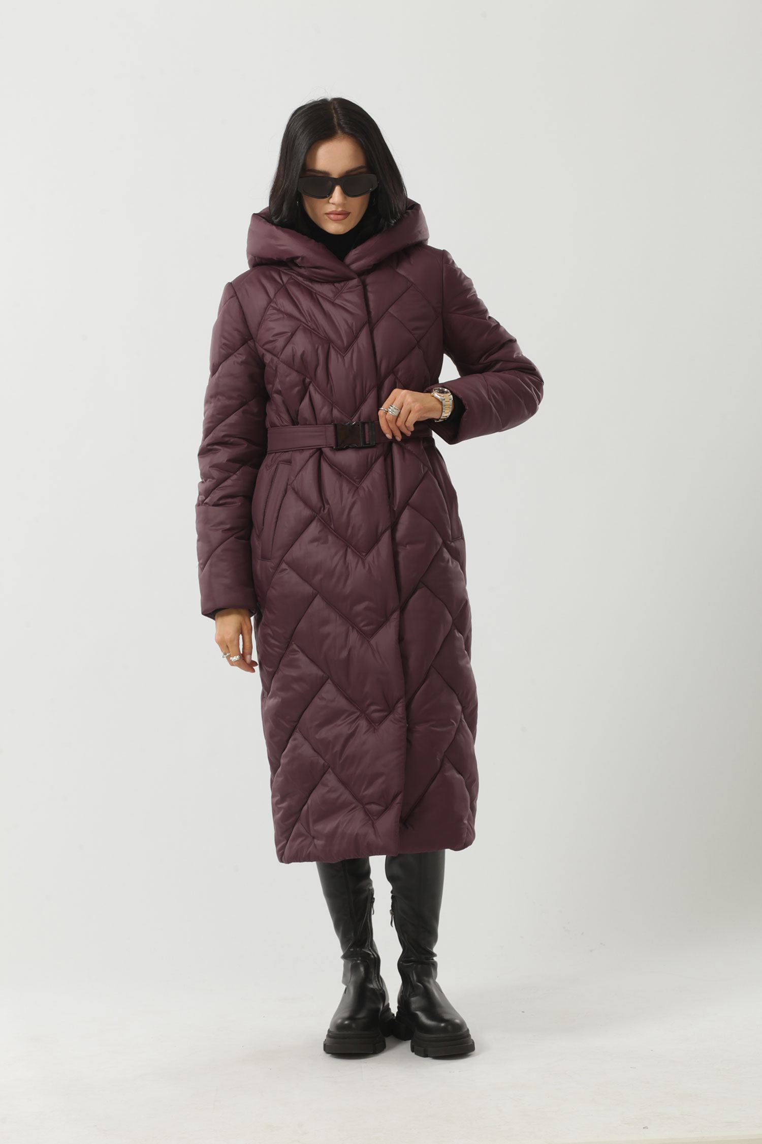 Эффектное теплое стеганое пальто прямого силуэта. Длина изделия 115,0 см. Модель выполнена из плащевой ткани стеганой с мягким теплым утеплителем. Втачной покрой рукава с трикотажными манжетами. Комфортный капюшон с кулиской на фиксаторах. Для плотного прилегания к шее предусмотрен магнит. Удобная застежка на потайные кнопки и молнию. Прорезные карманы с листочками, мешковина карманов выполнена из тонкого теплого эко-меха. В комплекте два пояса – классический из ткани верха, второй - также из ткани верха, но с эффектной пряжкой и сборкой на спинке (для чёткого прилегания на любую талию).