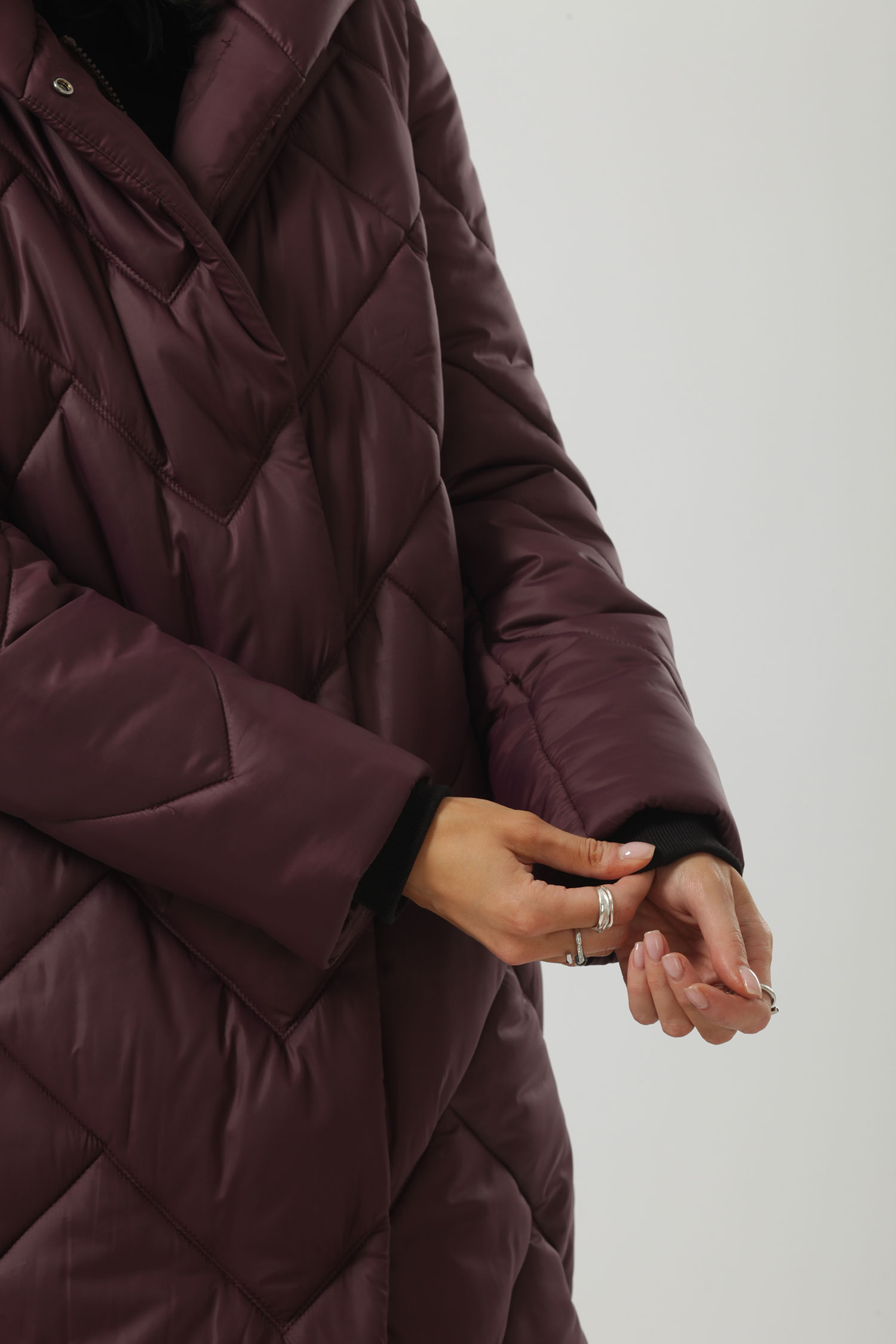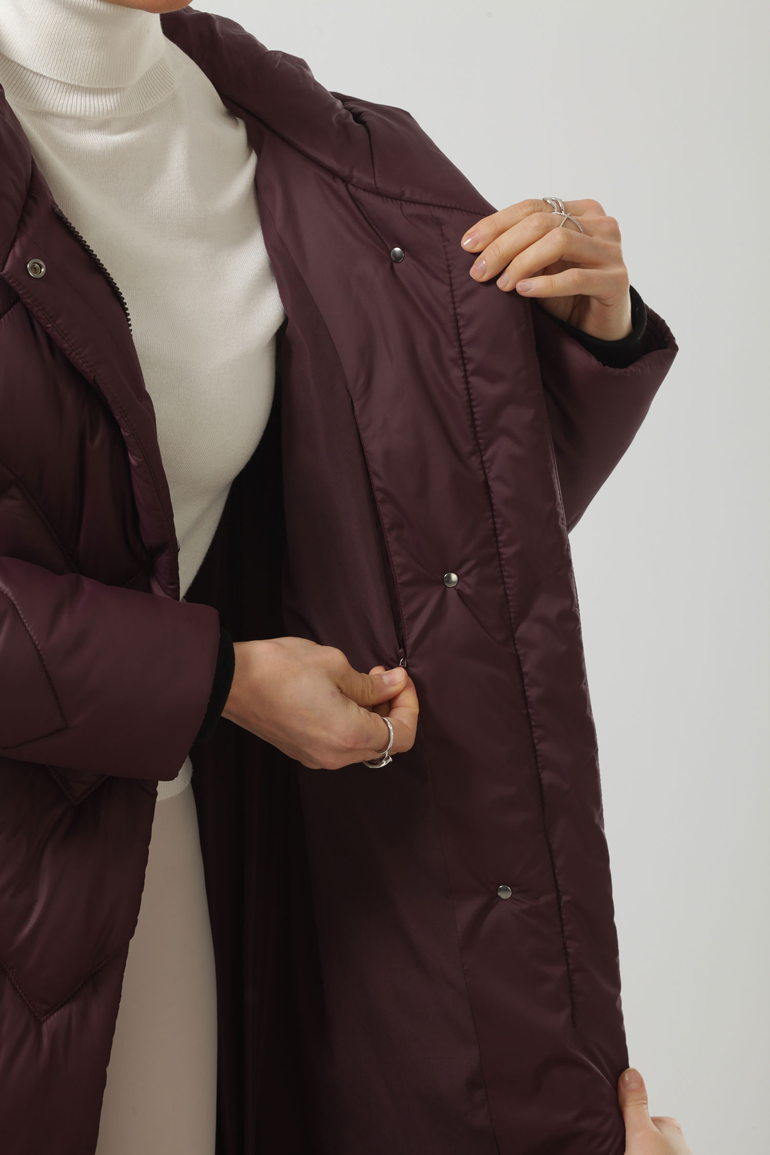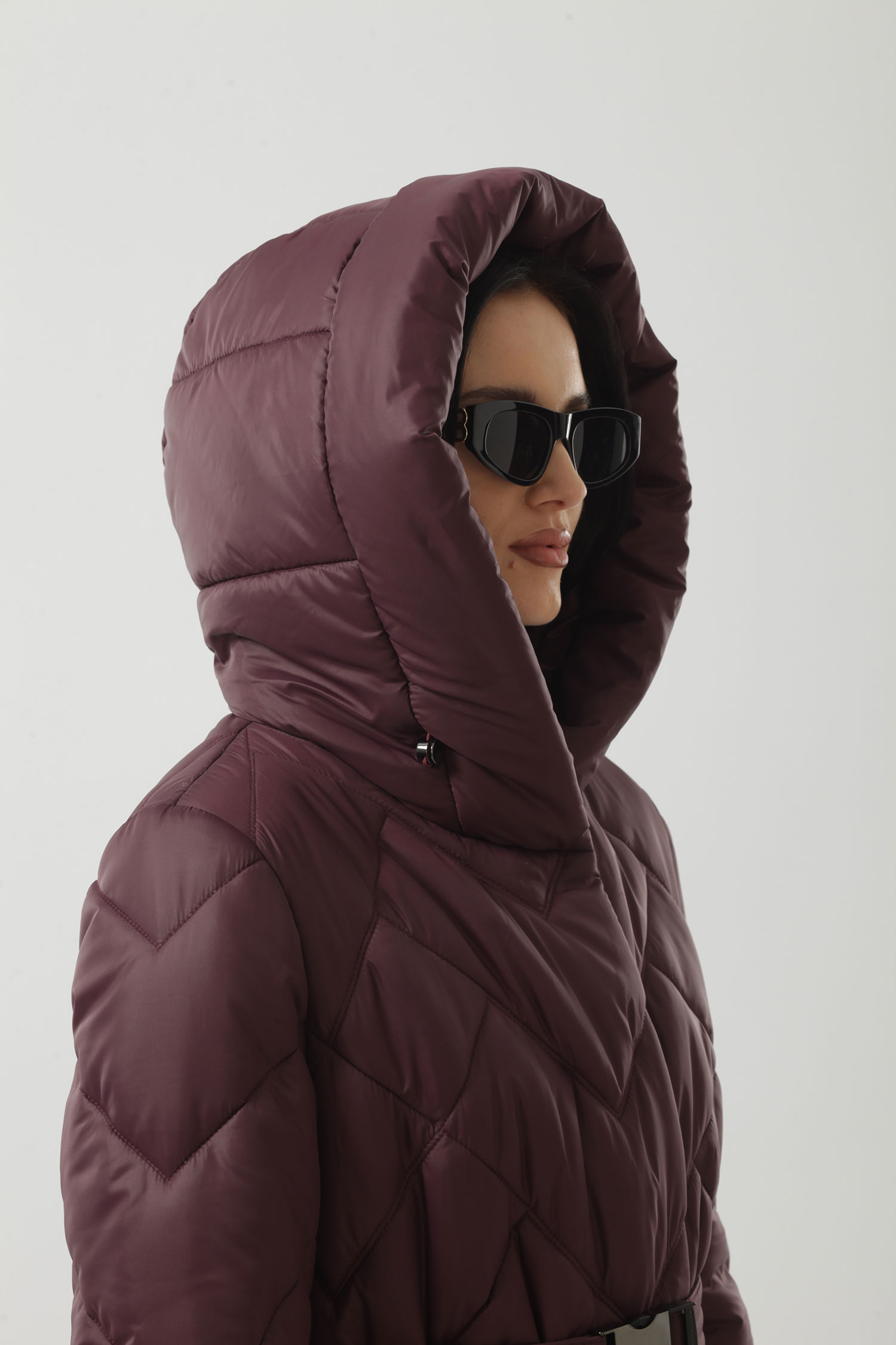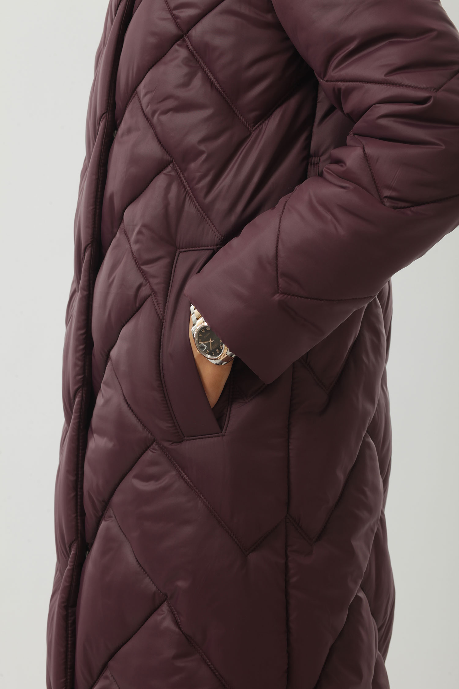 Эффектное теплое стеганое пальто прямого силуэта. Длина изделия 115,0 см. Модель выполнена из плащевой ткани стеганой с мягким теплым утеплителем. Втачной покрой рукава с трикотажными манжетами. Комфортный капюшон с кулиской на фиксаторах. Для плотного прилегания к шее предусмотрен магнит. Удобная застежка на потайные кнопки и молнию. Прорезные карманы с листочками, мешковина карманов выполнена из тонкого теплого эко-меха. В комплекте два пояса – классический из ткани верха, второй - также из ткани верха, но с эффектной пряжкой и сборкой на спинке (для чёткого прилегания на любую талию).