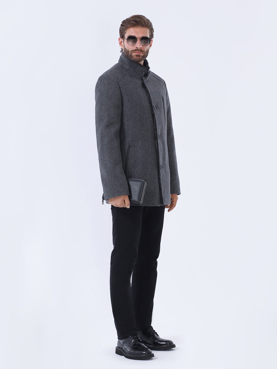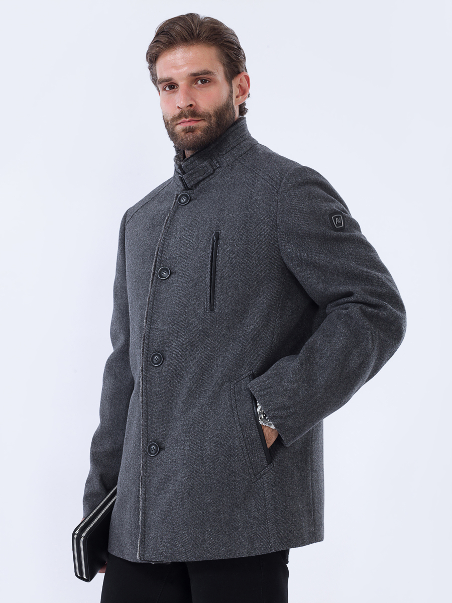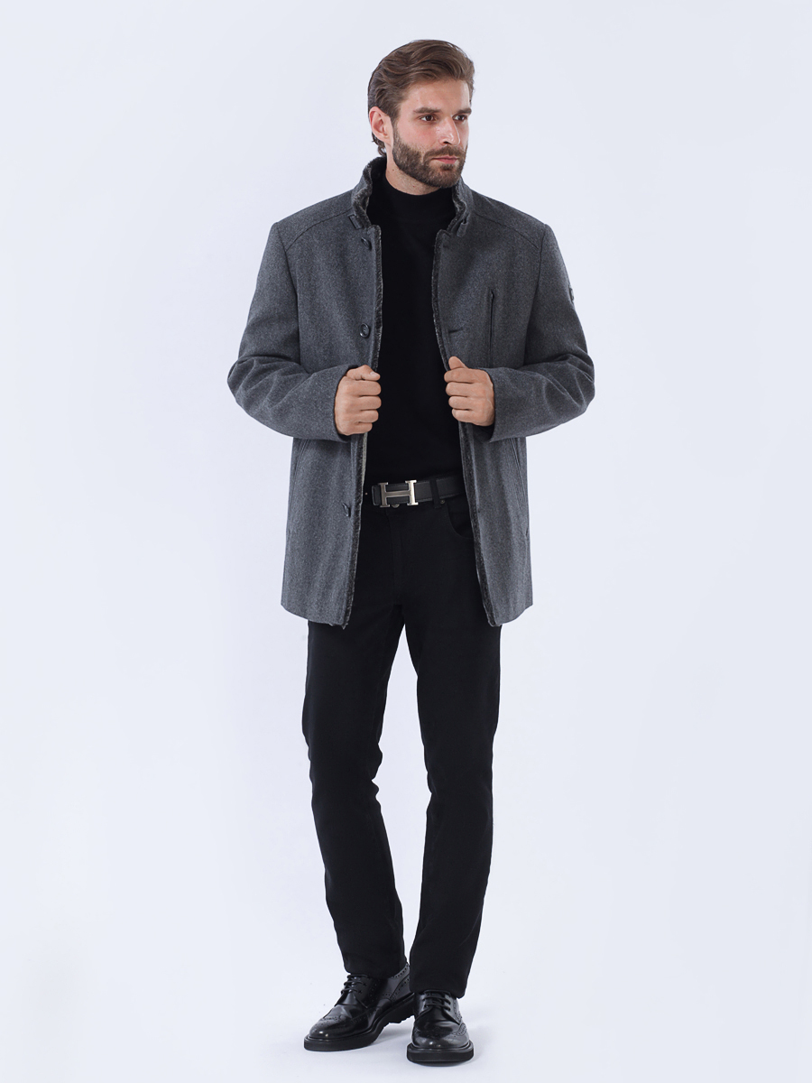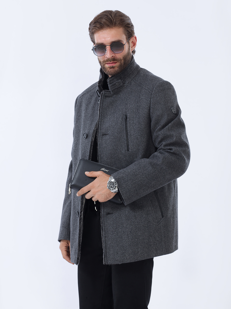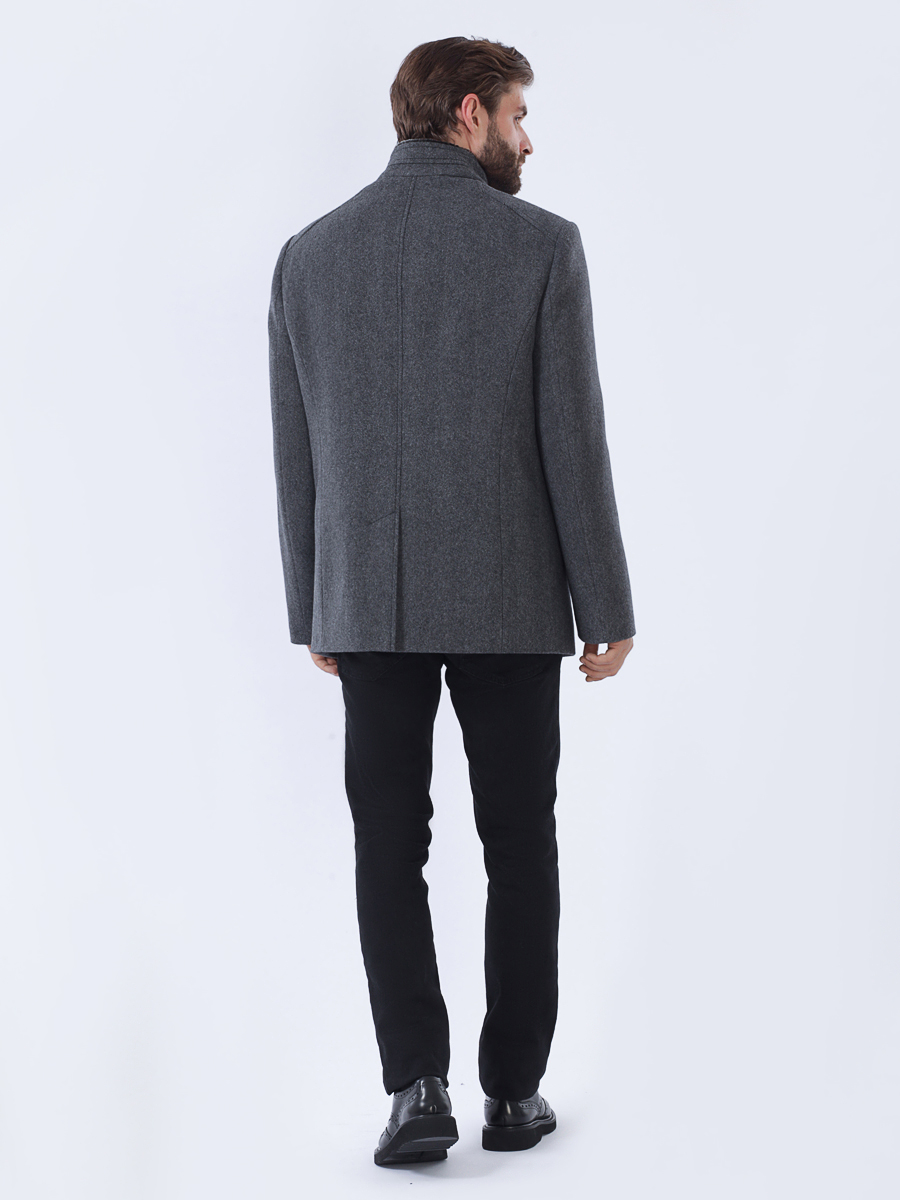 Приталенный силуэт с застежкой на 4 видимые пуговицы.