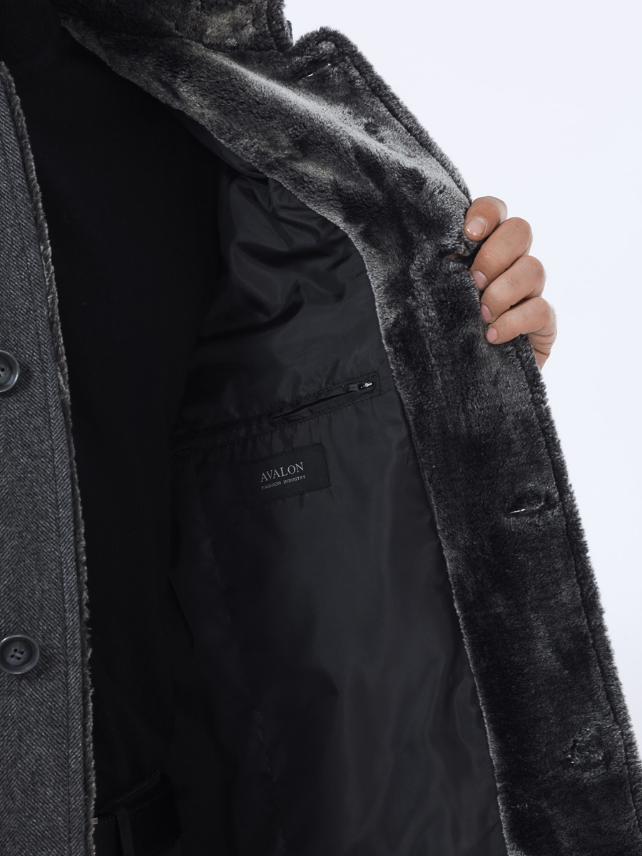 Молодежное зимнее пальто с отделкой из искусственного меха.