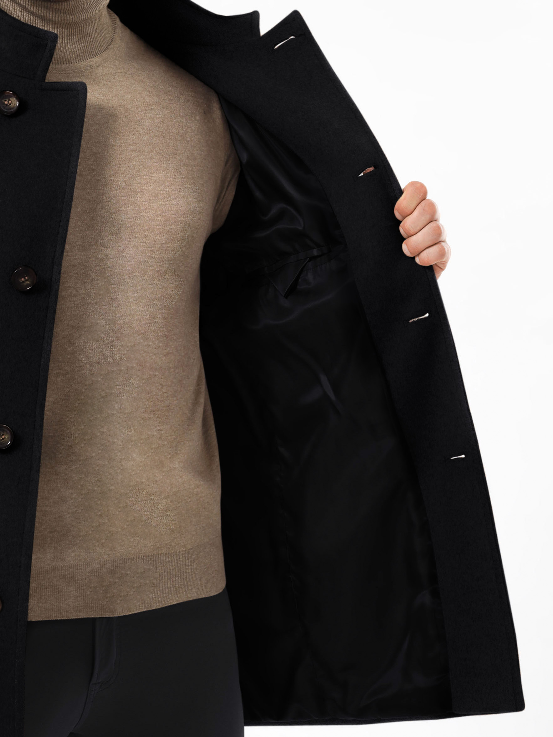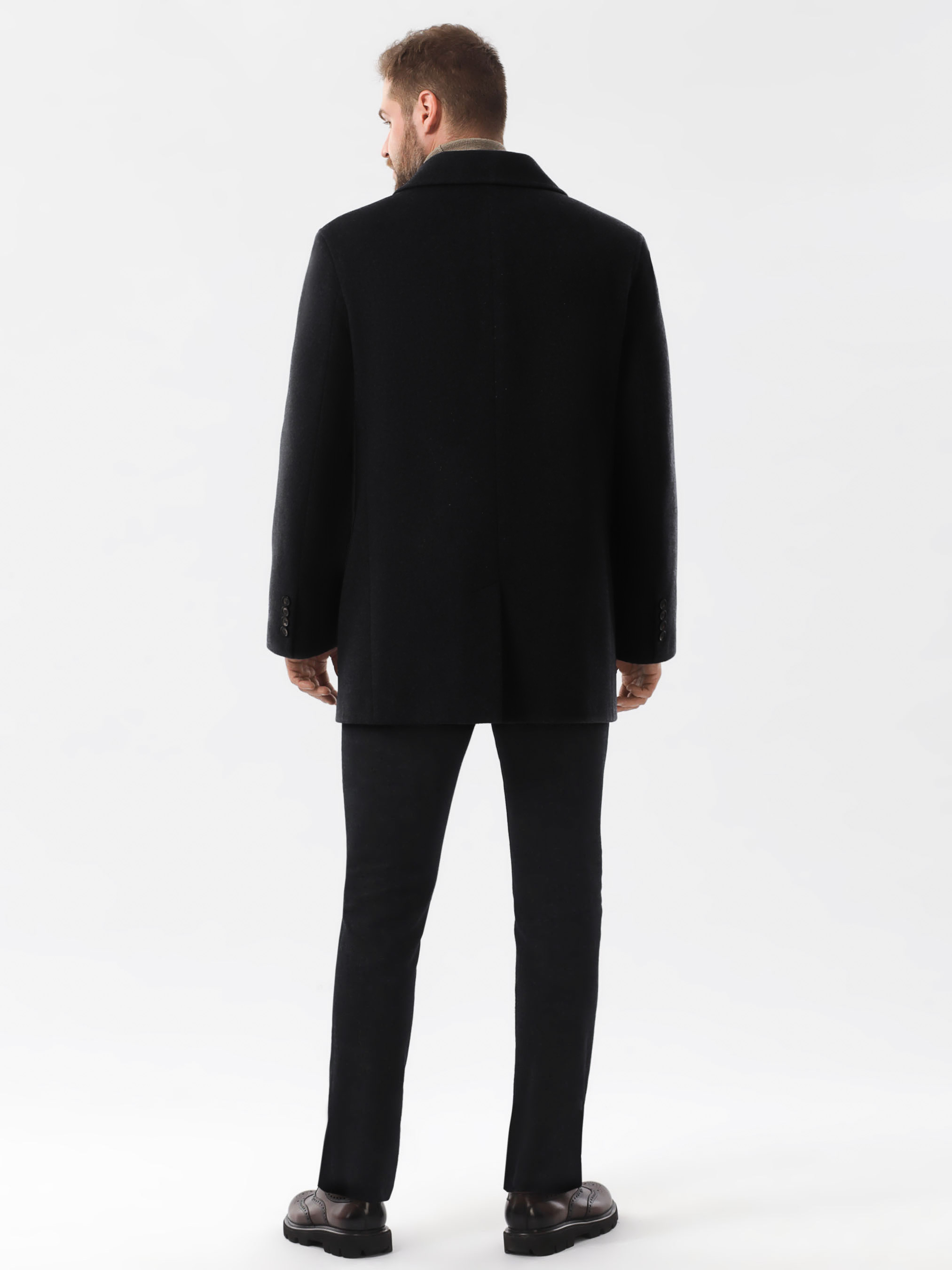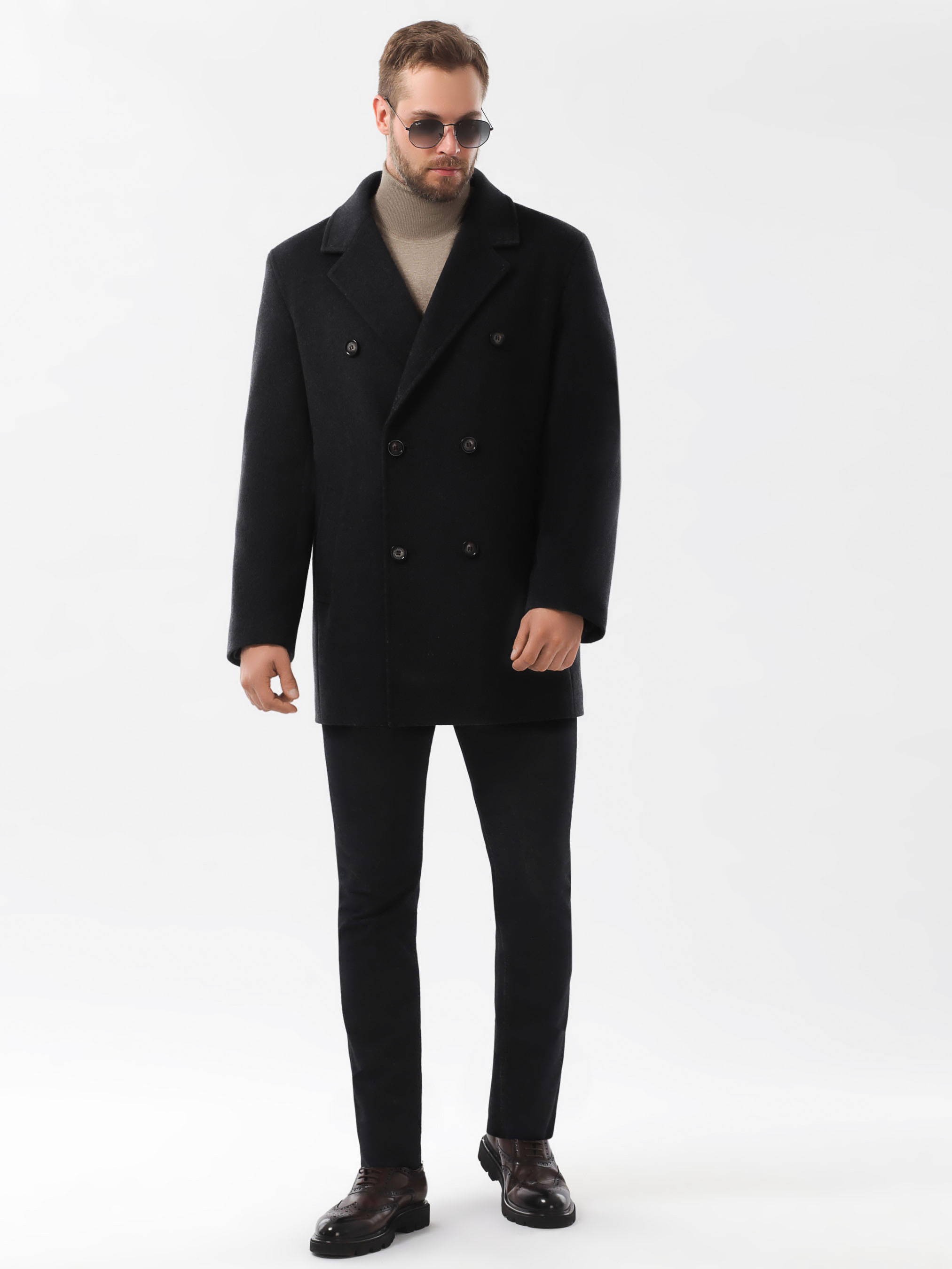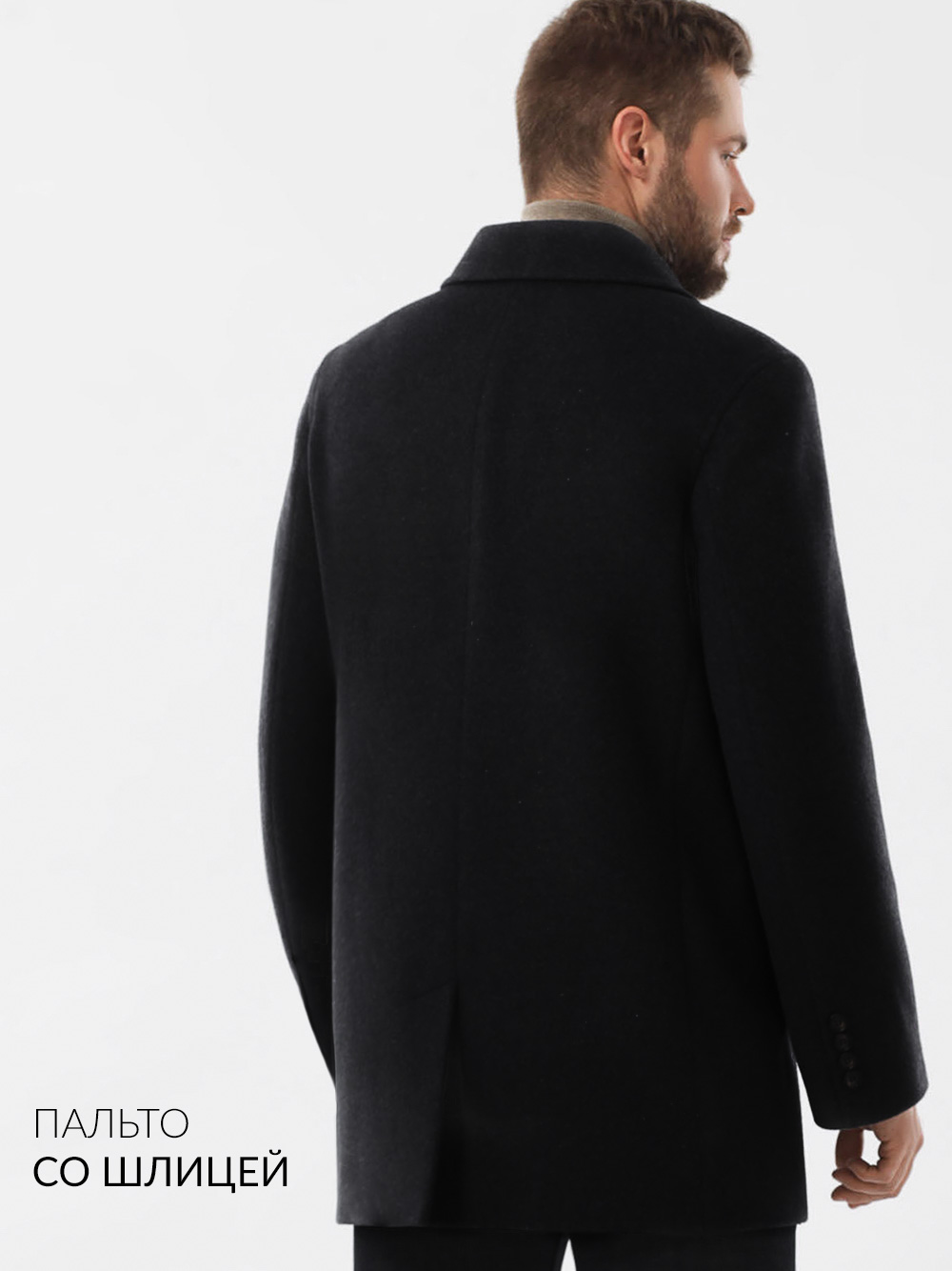 Длина по спинке - 85 см. Пальто полуприлегающего силуэта. Воротник английский пиджачного типа. Классический втачной покрой рукава, со шлицей на пуговицах. Для удобства прорезные карманы-листочки расположены под небольшим наклоном.