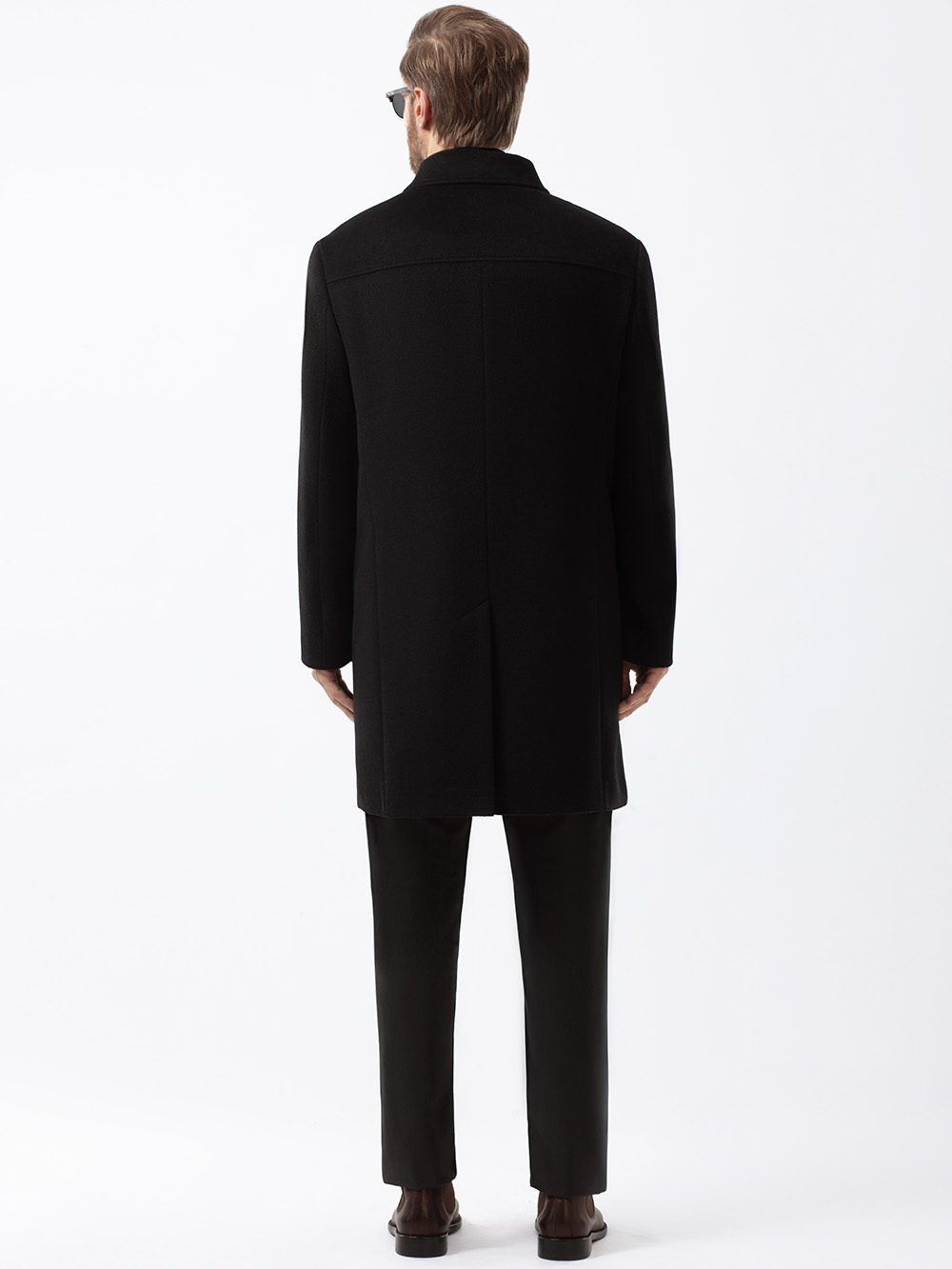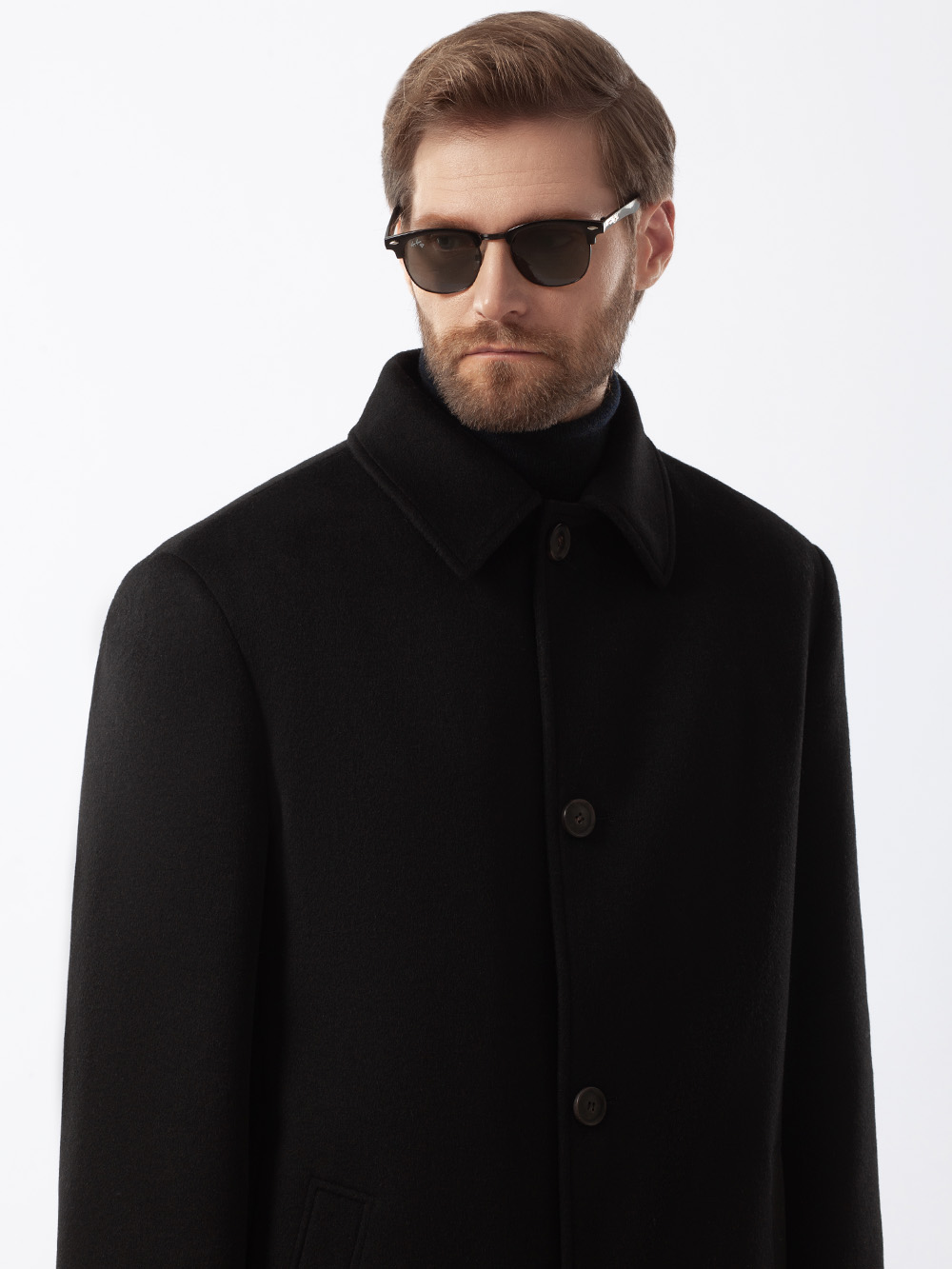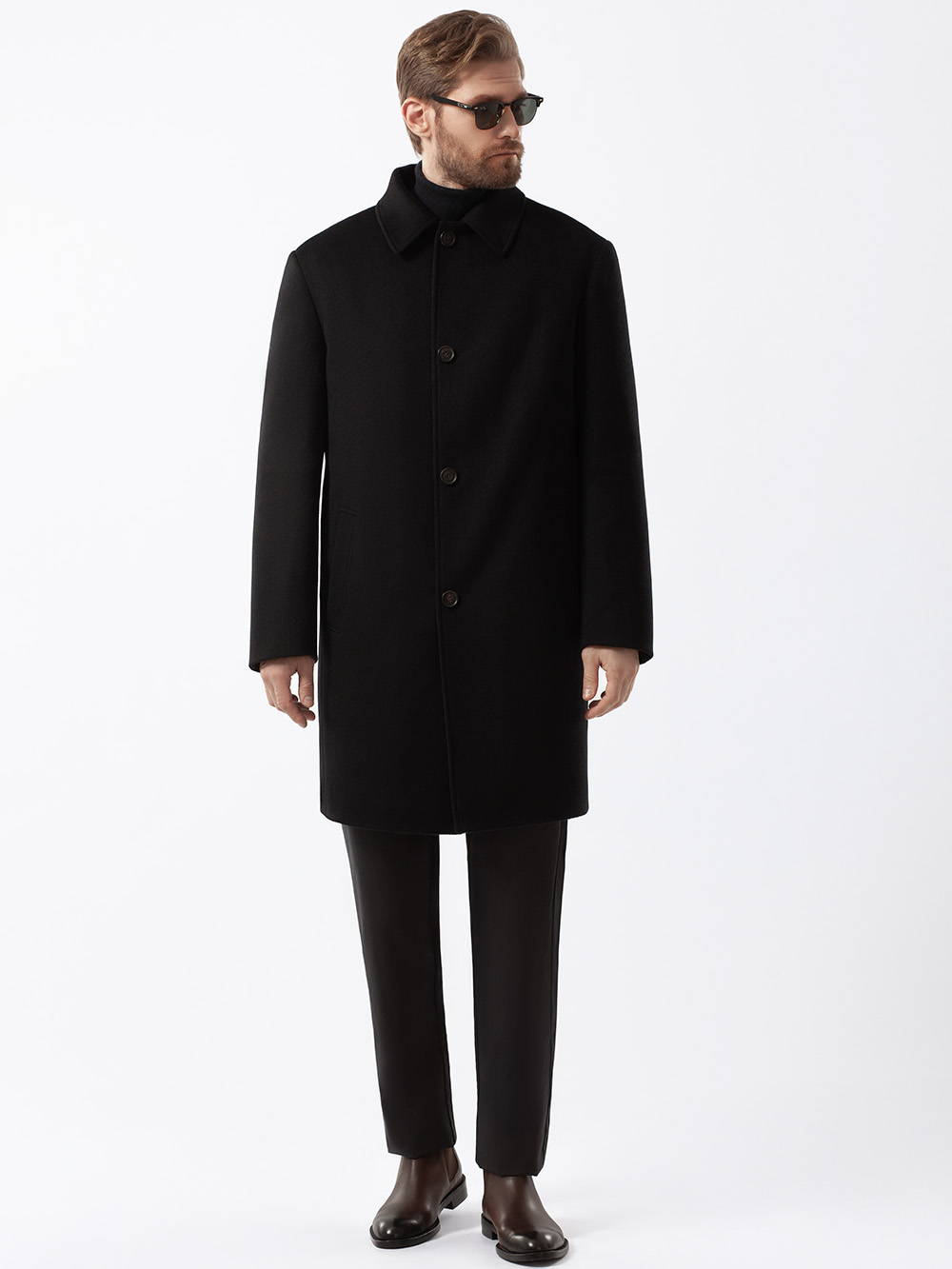 Пальто мужское утепленное полуприлегающего силуэта выполнено из качественной шерстяной ткани с микроворсом. Длина по спинке 100 см. Классический втачной покрой рукава. Для удобства прорезные карманы с листочками расположены под небольшим наклоном. Пальто мужское осеннее по спинке дополнено шлицей, что обеспечивает комфорт при ходьбе и передвижении на автомобиле. Вместительный внутренний карман с застежкой на пуговицу можно использовать для хранения документов.