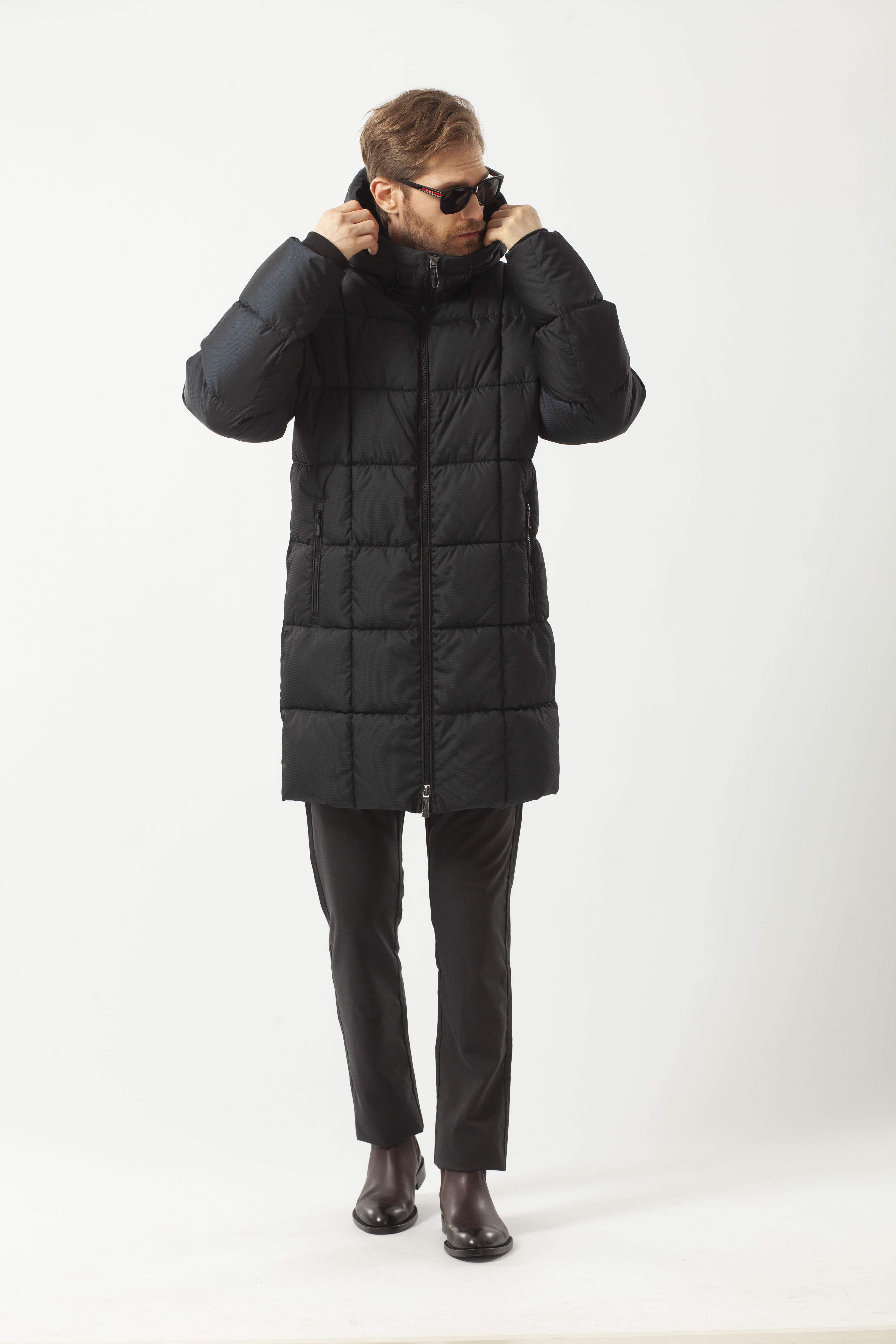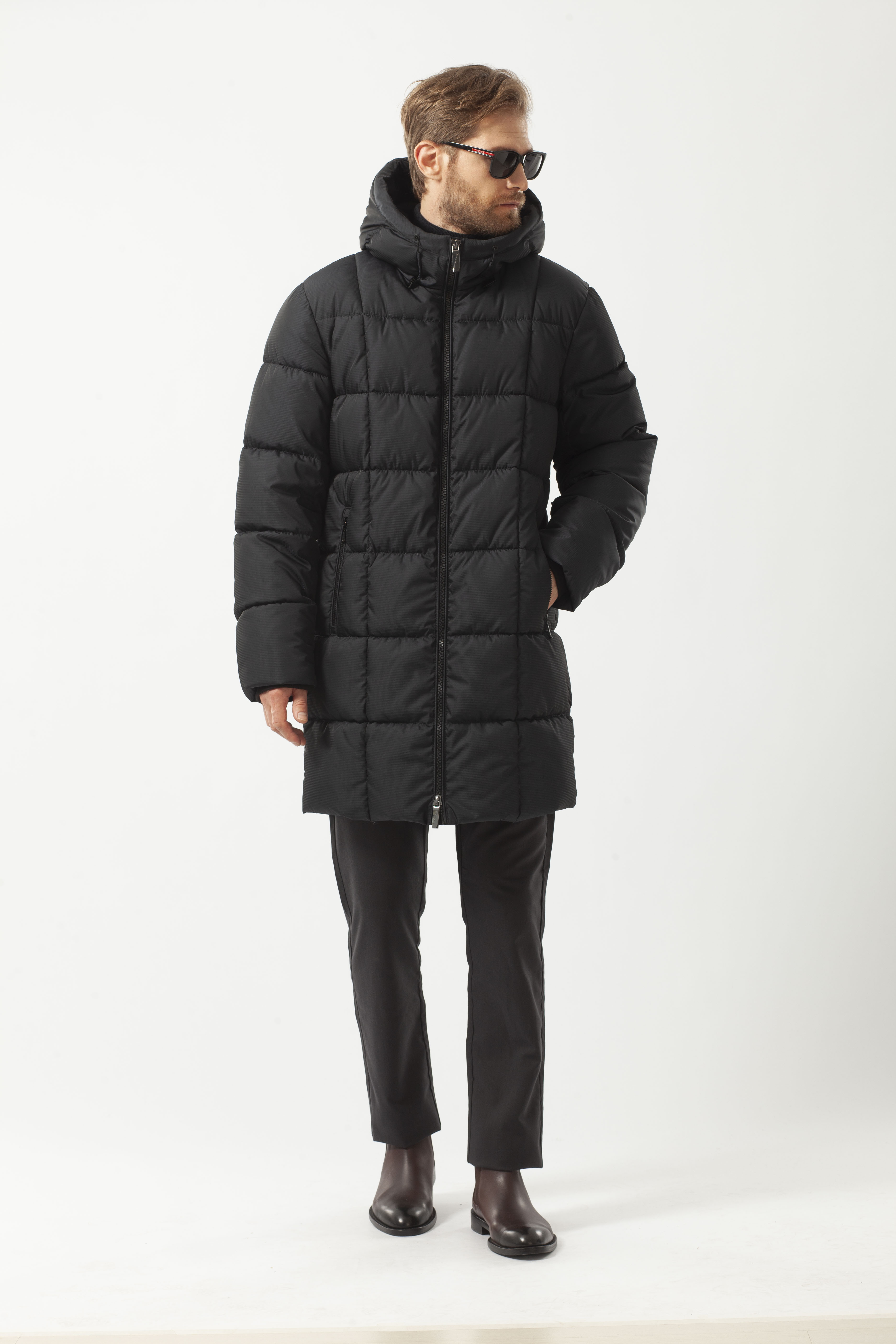 Пуховик мужской зимний из плотной плащевой ткани утеплён био-пухом высокого качества с отличными теплоизоляционными характеристиками. Удлинённая куртка комфортного прямого кроя, с классическим воротником-стойкой. Втачной покрой рукава. Удобная застёжкой на молнии. Ветрозащитная планка вдоль молнии способствует сохранению тепла внутри пуховика. Капюшон регулируется резинкой с фиксаторами на кулиске.