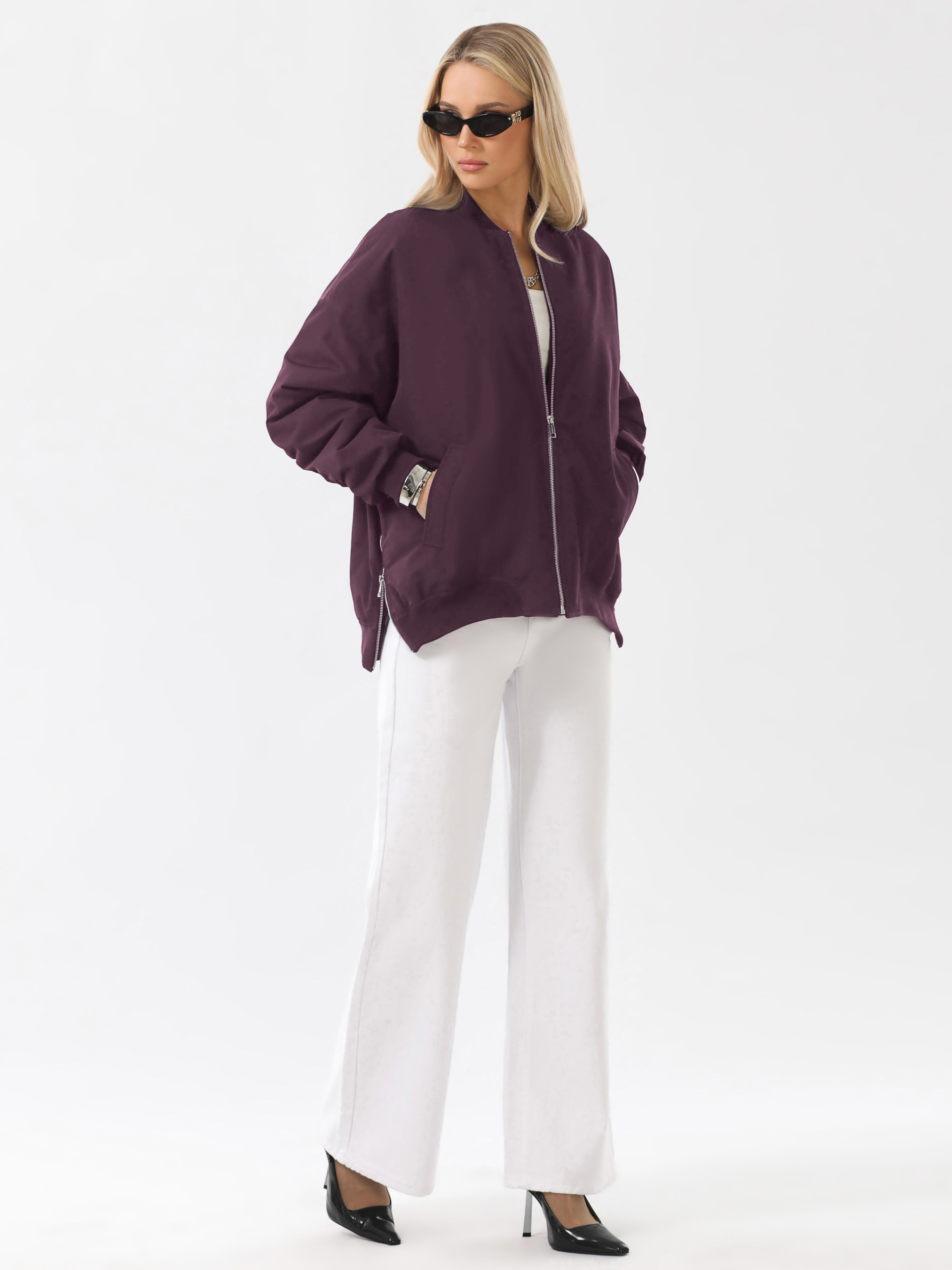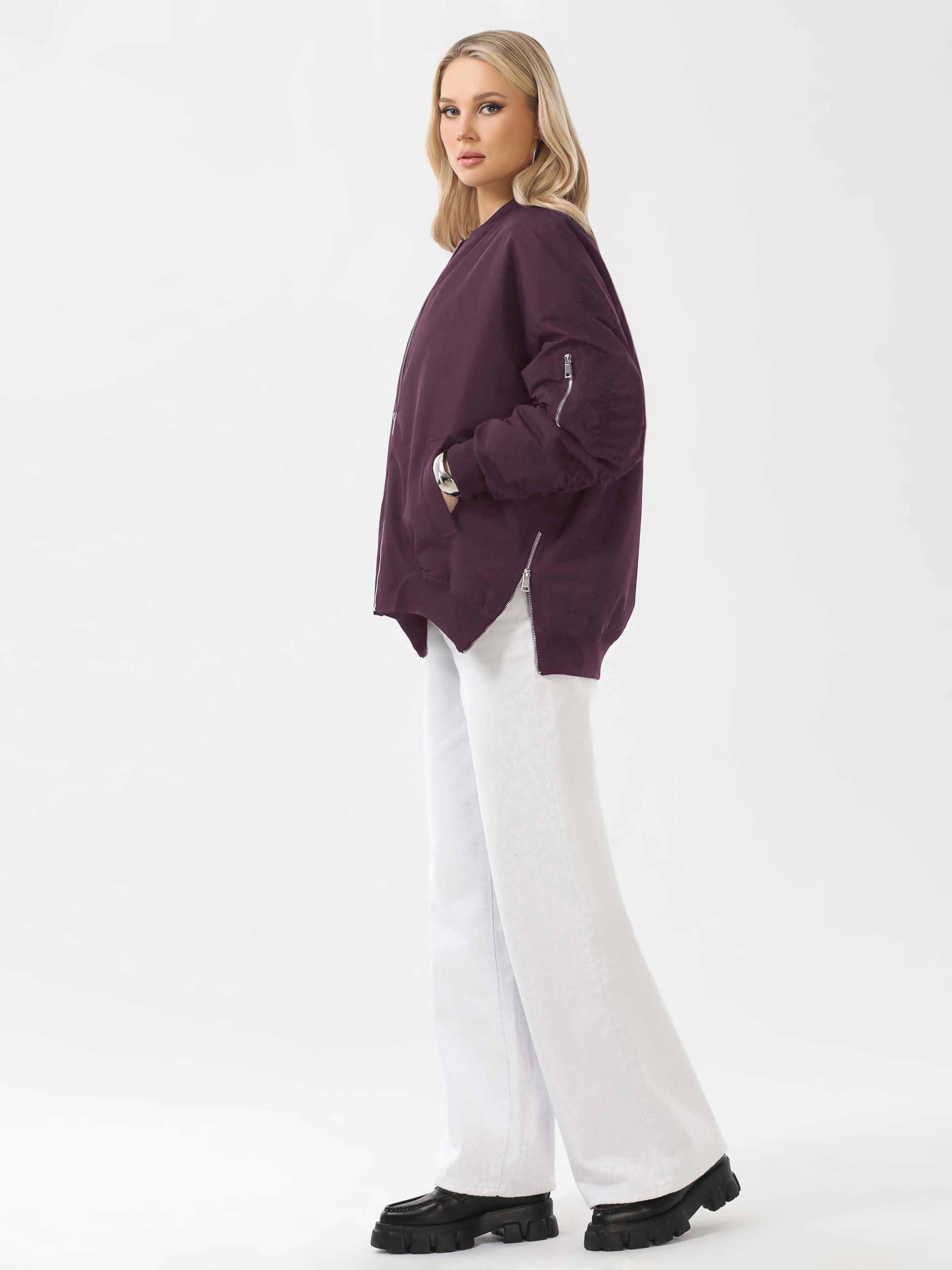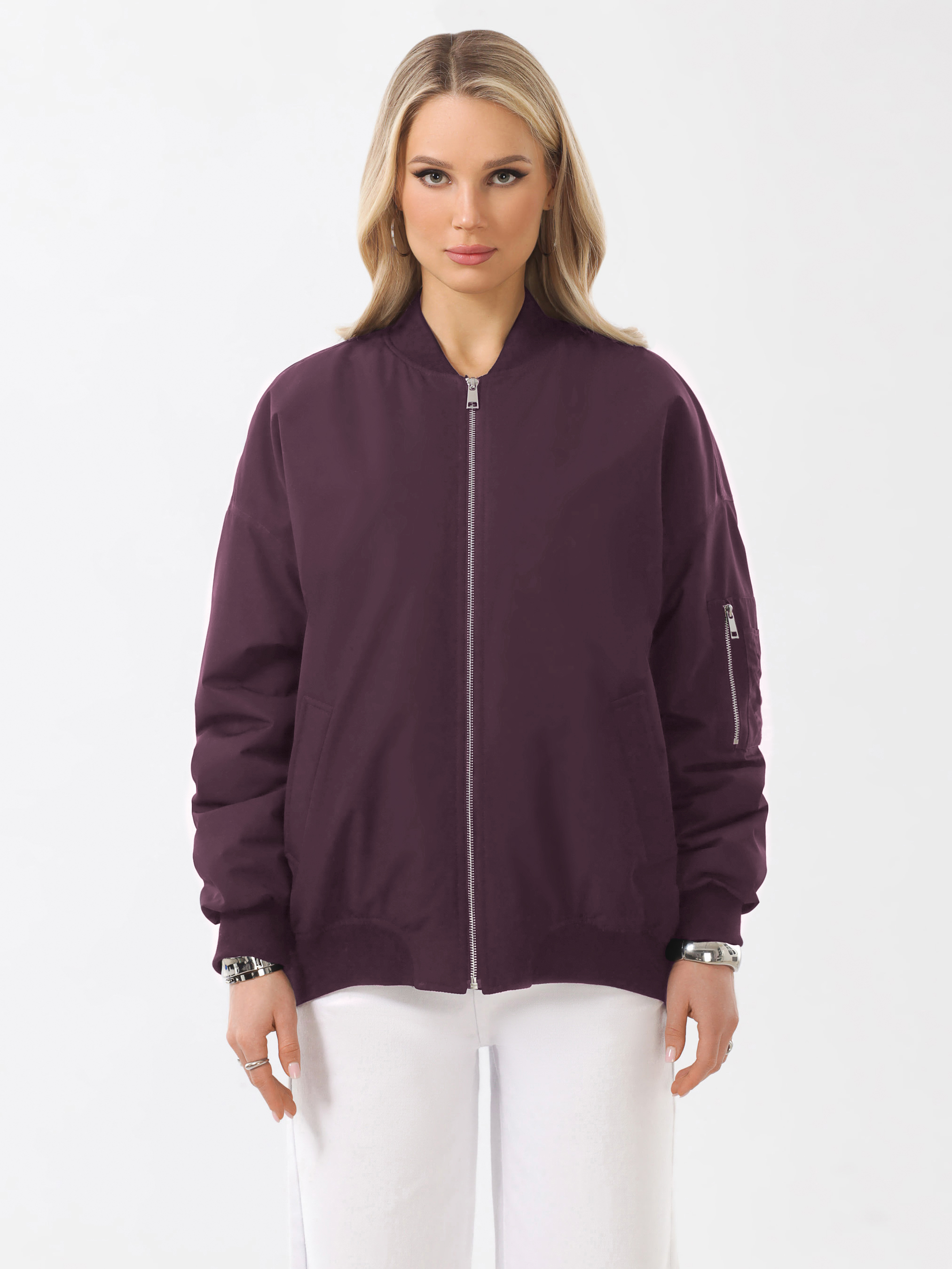 Трендовый бомбер женский утепленный из плотной, мягкой современной плащевой ткани со специальной водоотталкивающей пропиткой. Куртка демисезонная женская с максимально удобной посадкой, комфортного свободного кроя. Длина изделия - 70,5 см. Благодаря легкому цельному слою современного утеплителя отлично сохраняет тепло. Теплоизоляцию также обеспечивают воротник, манжеты и низ изделия, выполненные из плотного качественного трикотажа – кашкорсе. Куртка женская утепленная с плавной линией плеча и рубашечным покроем рукава. По локтевым швам рукавов эффектная сборка. Застежка на надежную металлическую молнию. Размер рекомендовано подбирать с учетом оверсайз-кроя.