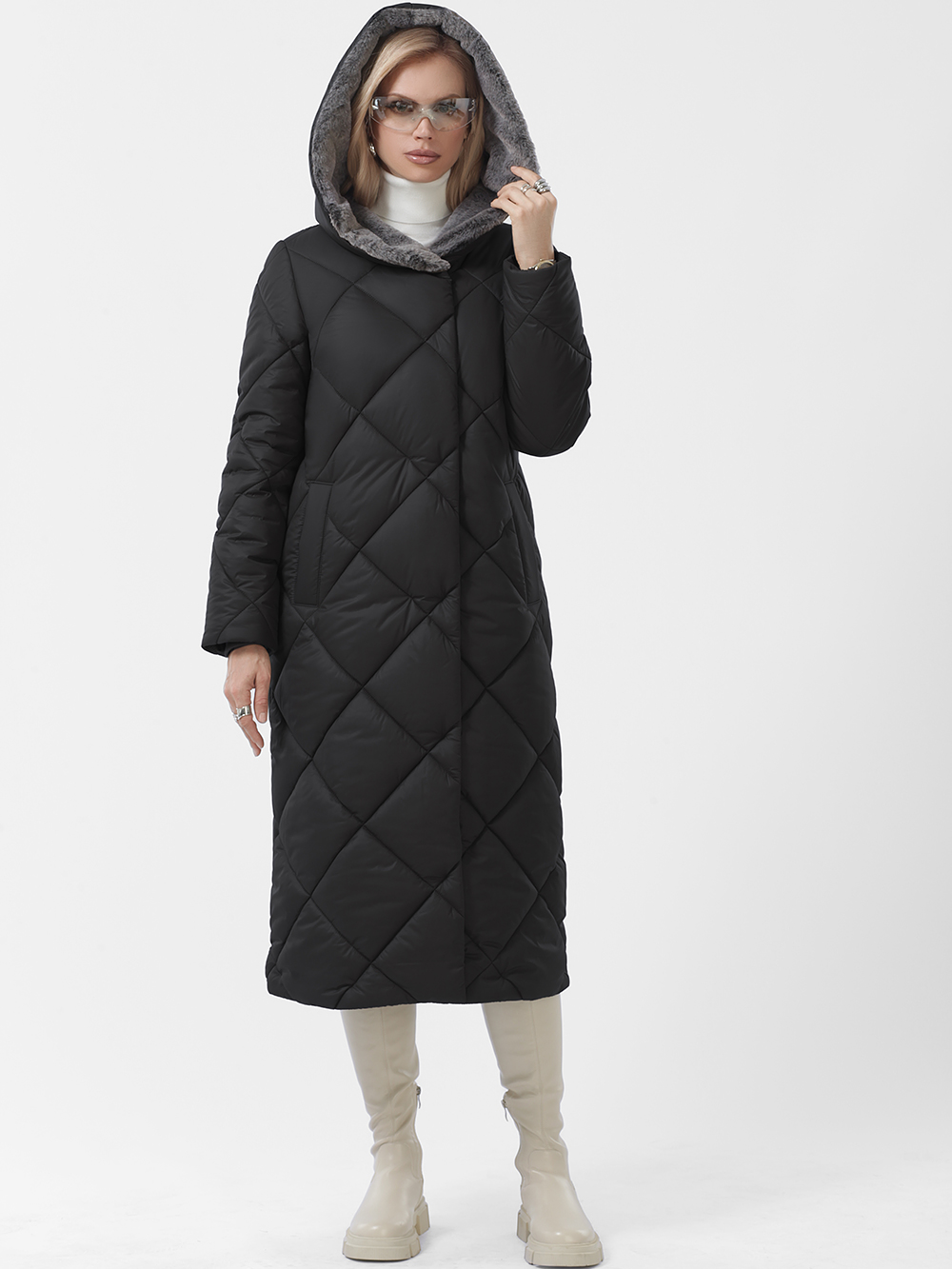 Элегантное зимнее стеганое пальто прямого силуэта. Модель выполнена из плащевой ткани стеганой с мягким теплым утеплителем. Втачной покрой рукава с трикотажными манжетами. Комфортный капюшон с качественным эко-мехом на внутренней части, капюшон фиксируется магнитом. Удобная застежка на потайные кнопки и молнию. Карманы прорезные с листочками, мешковина карманов выполнена из тонкого теплого эко-меха. Пояс в комплекте.