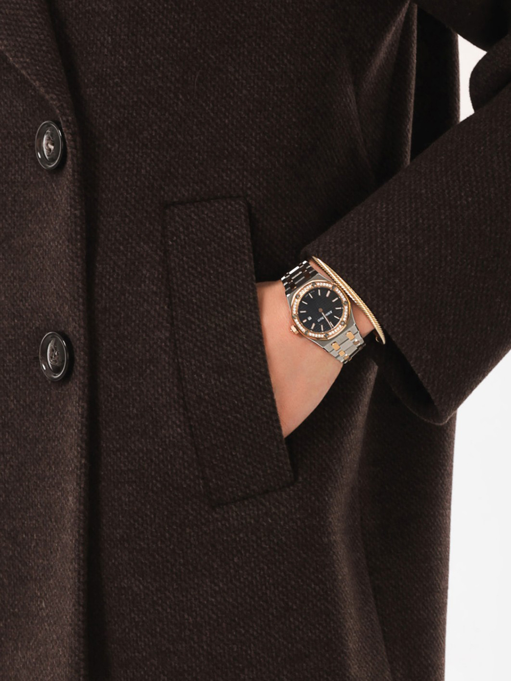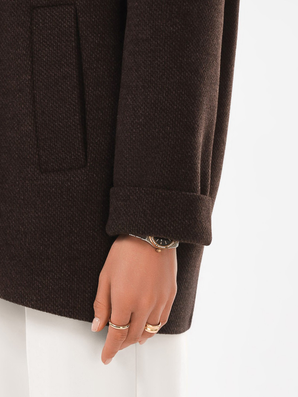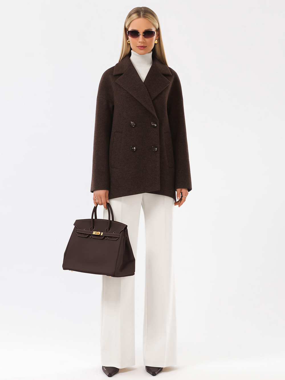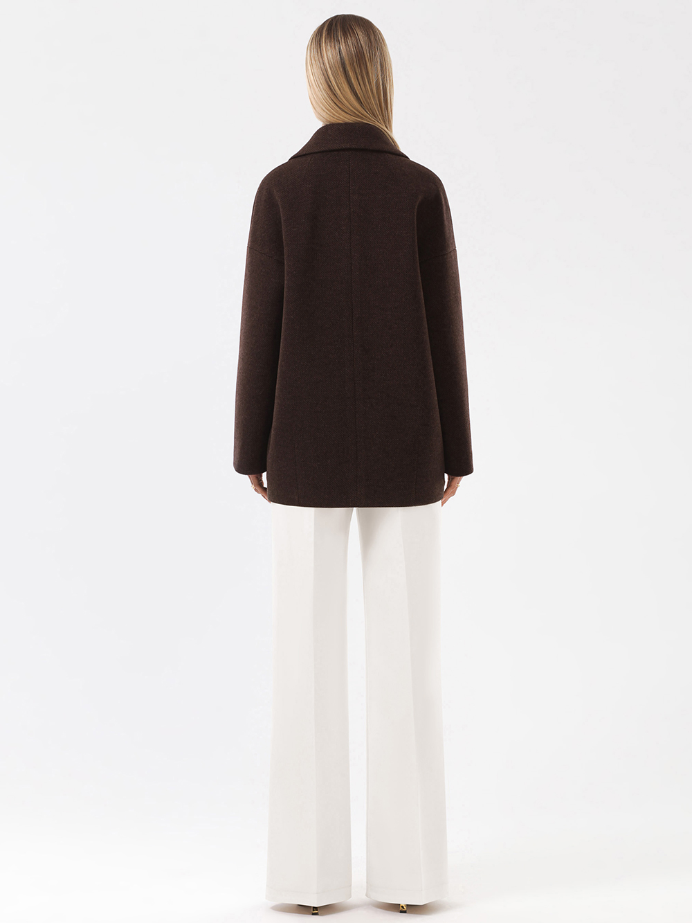 Модное короткое пальто из мягкой шерстяной ткани в твидовом переплетении. Свободный, зауженный книзу силуэт и асимметричная длина (полочка чуть короче спинки) создают утонченный, но динамичный образ. В мягком покрое рукава предусмотрена ромбовидная ластовица, что гарантирует комфорт и удобство при движении. Застежка на пуговицы, удобные карманы - листочки, английский воротник с четкой линией обрезки. Размер рекомендовано подбирать по бОльшему показателю - либо по объёму груди, либо по бёдрам. Температурный режим носит рекомендательный характер до +5 °C, далее все зависит от индивидуальной переносимости температур.