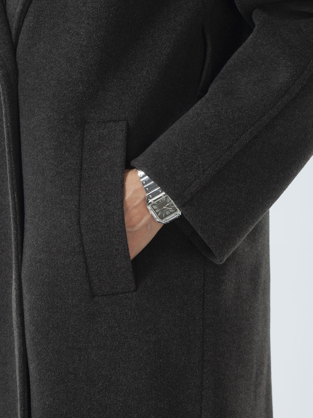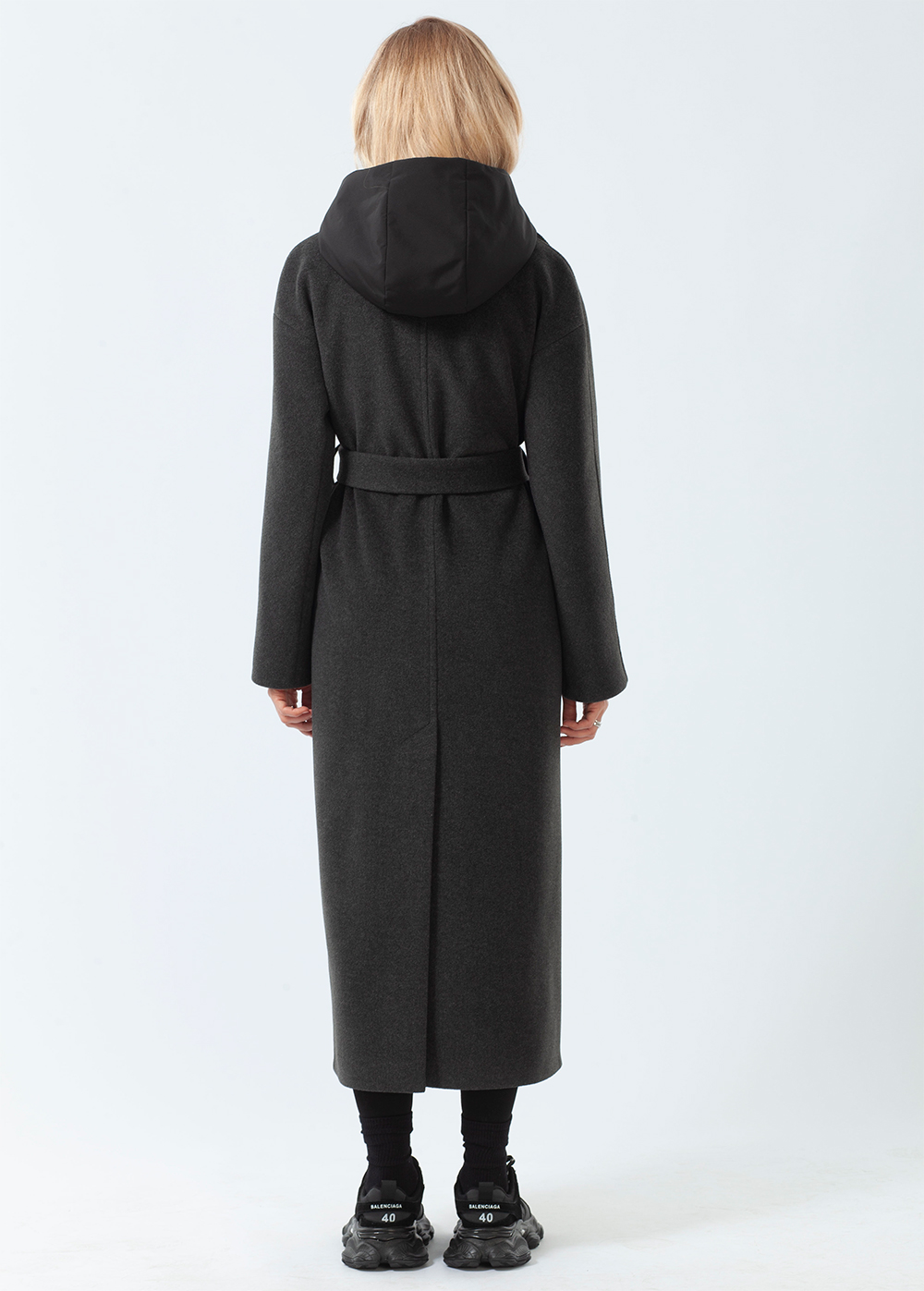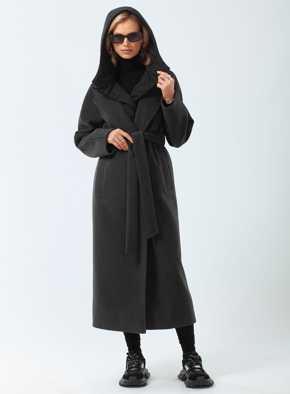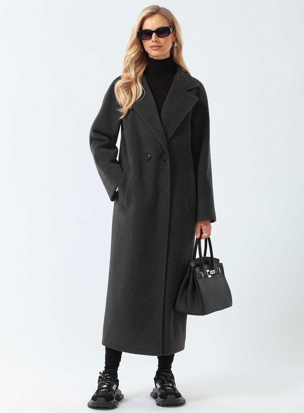 Cупермодное пальто в длине макси. Модель свободного силуэта выполнена в мягкой пластичной ткани с микроворсом.