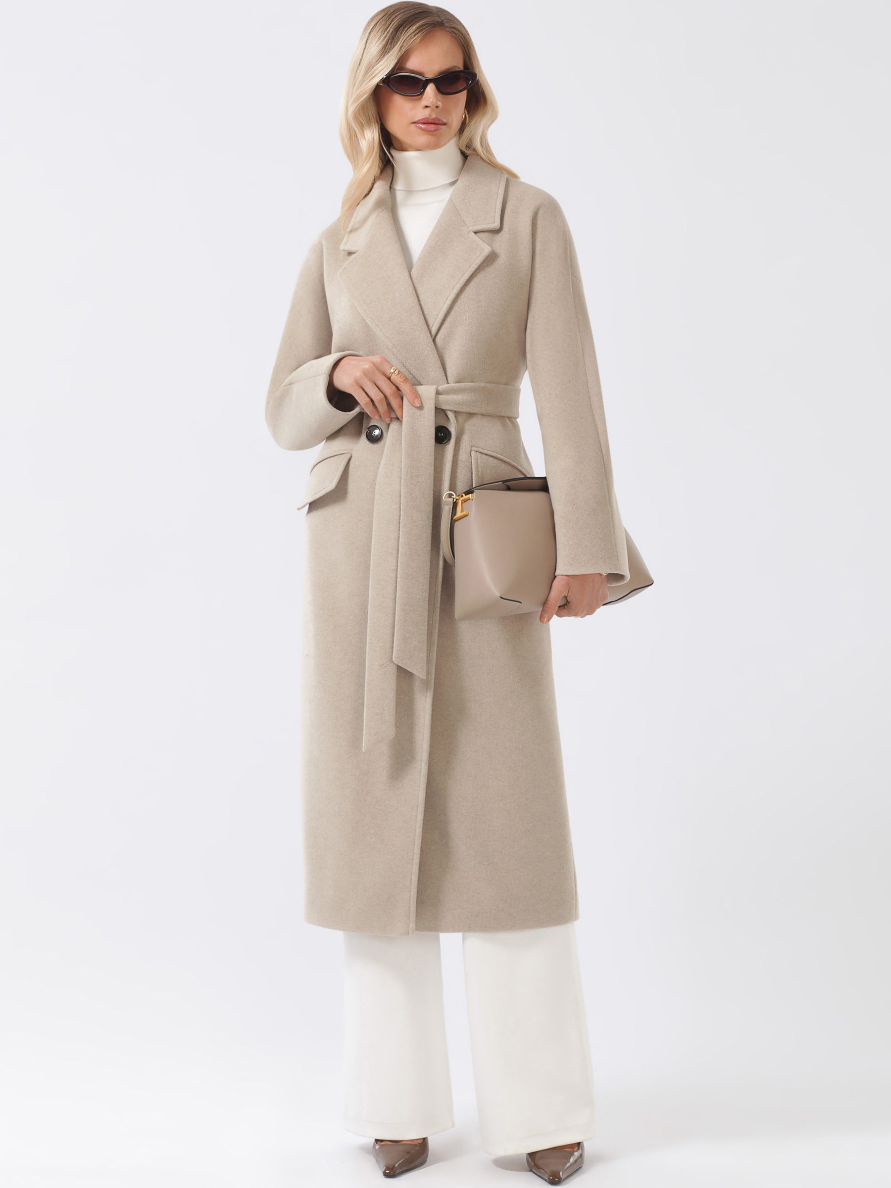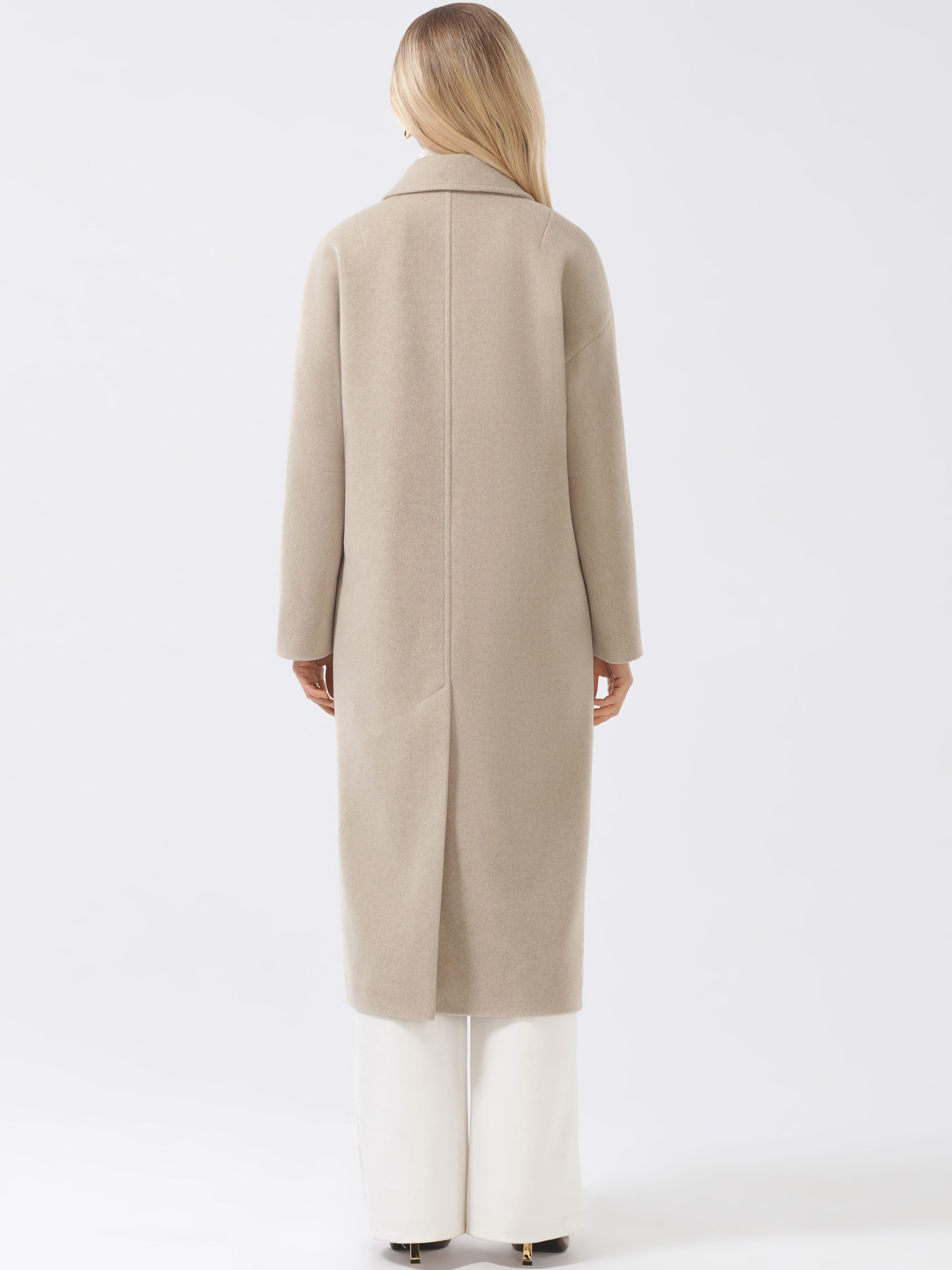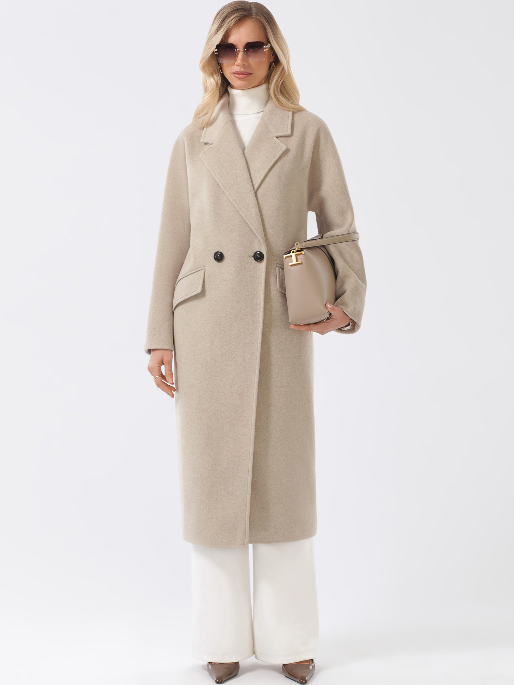 Трендовое пальто оверсайз из мягкой пластичной ткани с микроворсом. Свободный силуэт, плавная линия плеча. Комфортный комбинированный покрой рукава с возможностью отворота. Актуальный английский воротник. Карманы прорезные с клапанами, застежка на фирменные пуговицы. Шлица в среднем шве спинки. Пояс в комплекте. Модель декорирована отделочными строчками.