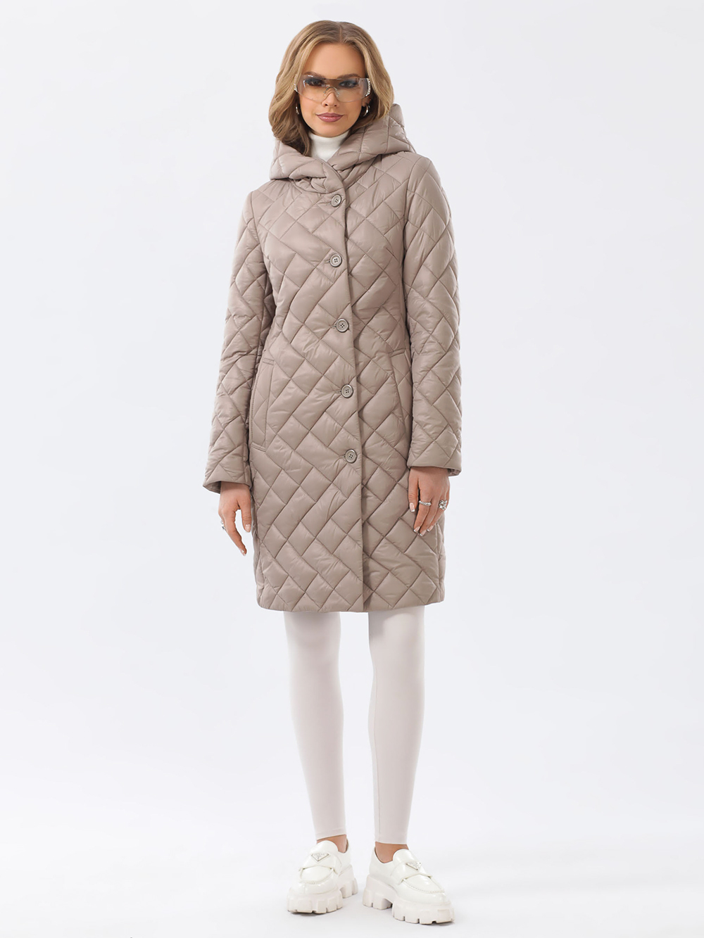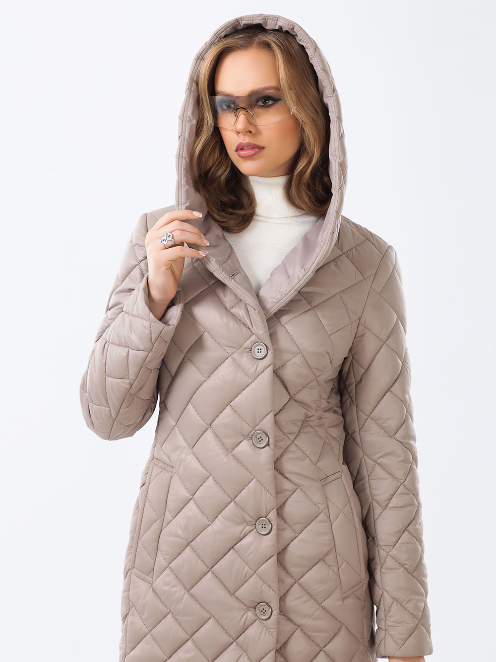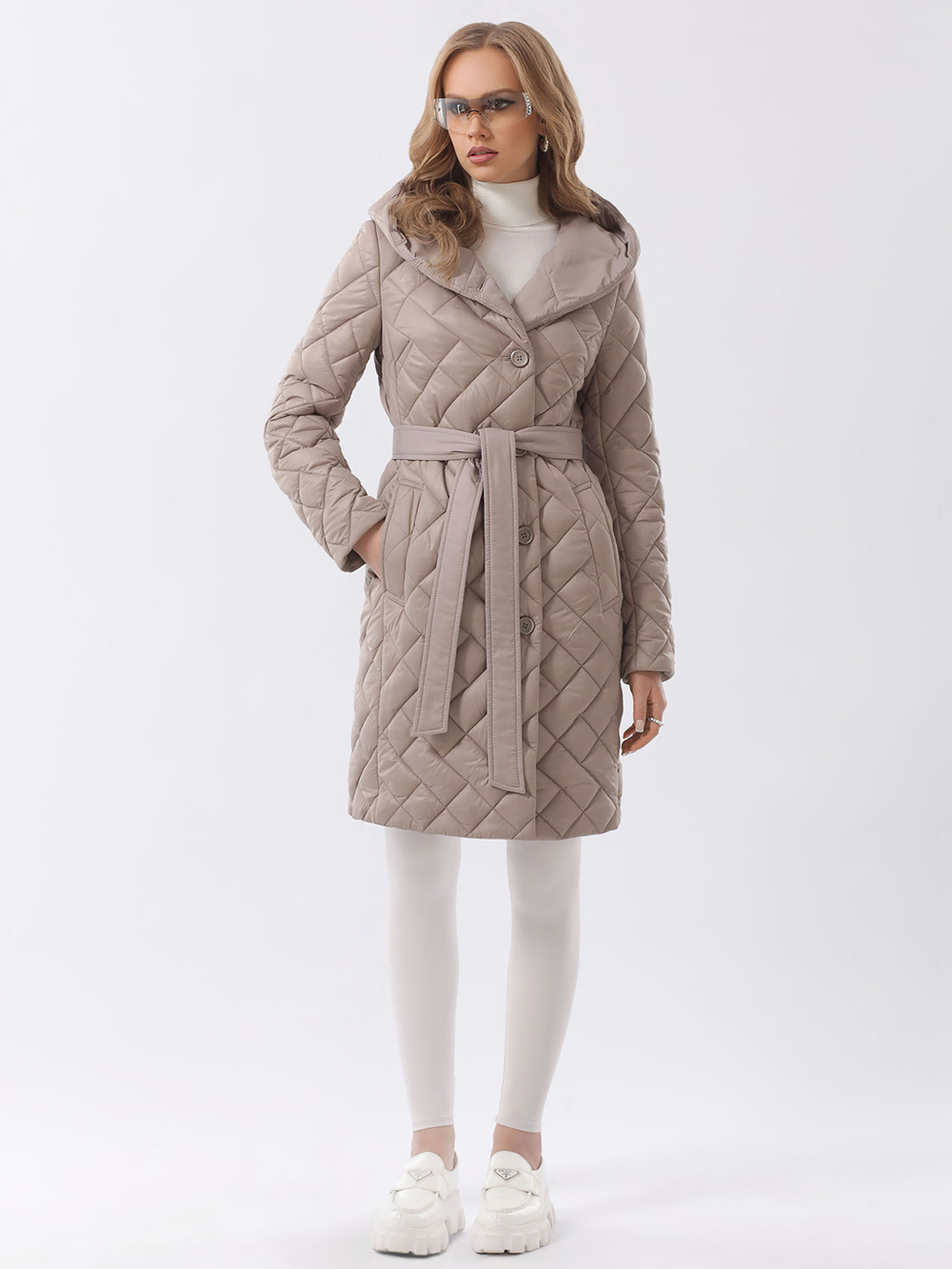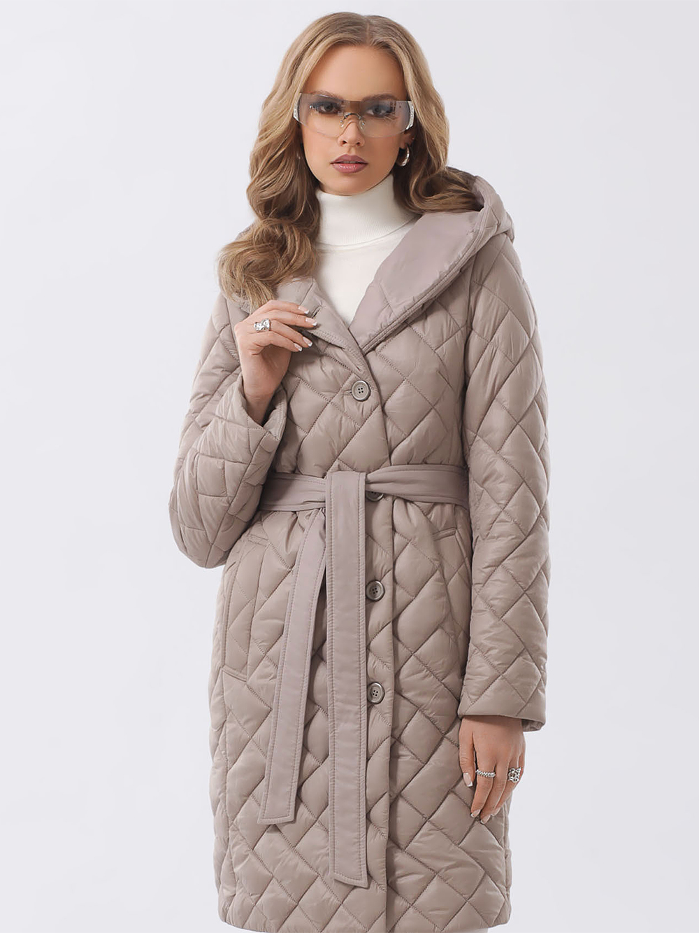 Элегантное однобортное пальто прилегающего силуэта. Лаконичный спокойный крой, втачной покрой рукава с возможностью отворота. Небольшой аккуратный двухшовный капюшон с фиксацией на магнит. Удобная застежка на фирменные пуговицы. Карманы – листочки. Пояс в комплекте. Женское пальто из плащевой ткани стеганой с мягким теплым утеплителем, с дополнительным слоем прокладочного материала - благодаря этому слою ткань более плотная и одновременно мягкая, лучше сохраняет тепло. Изделие хорошо держит форму, четко прослеживаются силуэт и модельные линии.
