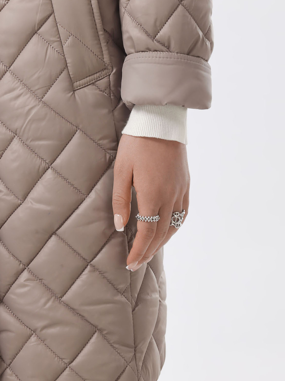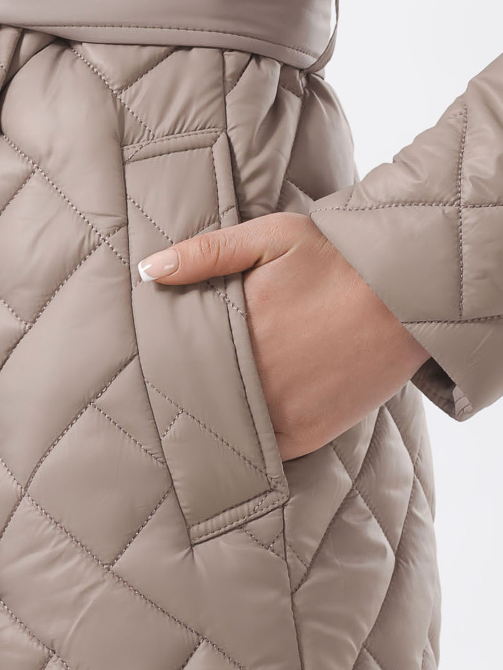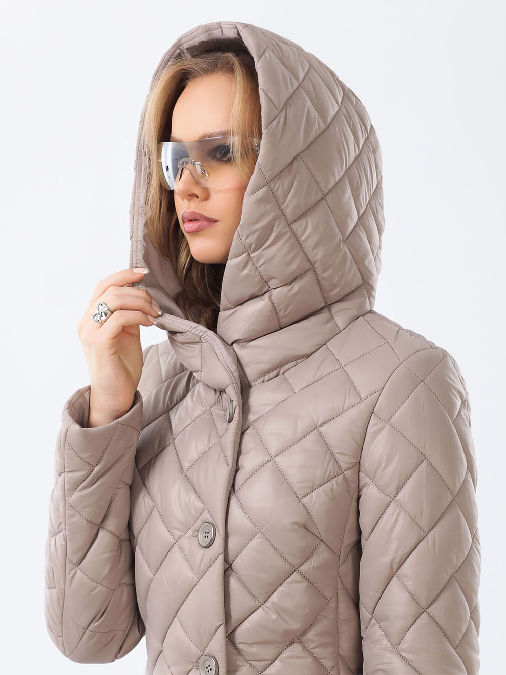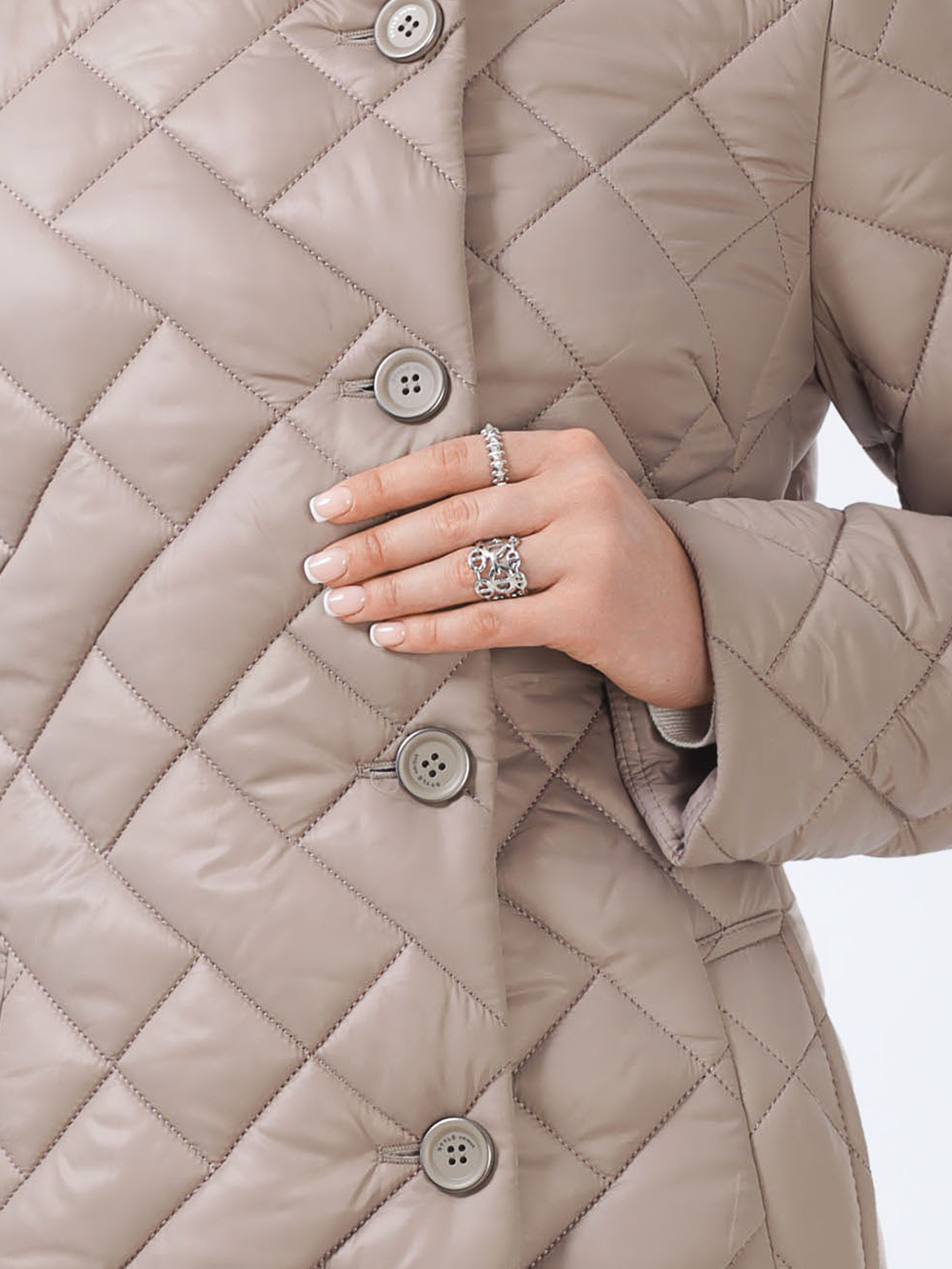 Элегантное однобортное пальто прилегающего силуэта. Лаконичный спокойный крой, втачной покрой рукава с возможностью отворота. Небольшой аккуратный двухшовный капюшон с фиксацией на магнит. Удобная застежка на фирменные пуговицы. Карманы – листочки. Пояс в комплекте. Женское пальто из плащевой ткани стеганой с мягким теплым утеплителем, с дополнительным слоем прокладочного материала - благодаря этому слою ткань более плотная и одновременно мягкая, лучше сохраняет тепло. Изделие хорошо держит форму, четко прослеживаются силуэт и модельные линии.