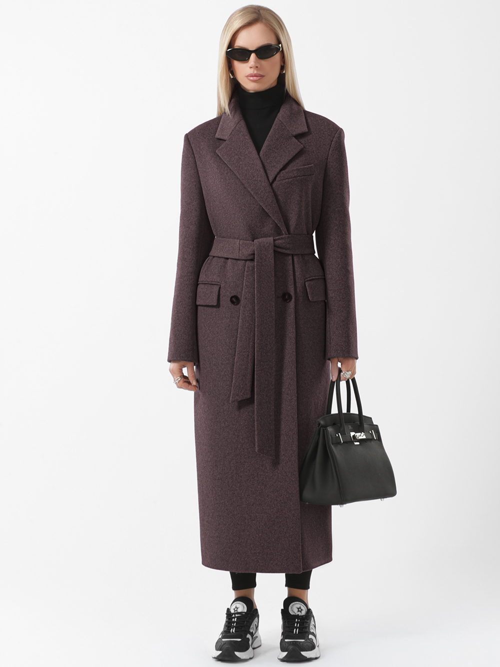 Трендовое пальто оверсайз с расширенной линией плечевого пояса. Модель выразительного прямого силуэта из благородной шерстяной ткани с микроворсом. Актуальный лаконичный крой, комфортные втачные рукава. Английский воротник пиджачного типа. Декоративный нагрудный карман. Удобные прорезные карманы с клапанами, застежка на фирменные пуговицы. Шлица в среднем шве спинки. Пояс в комплекте.