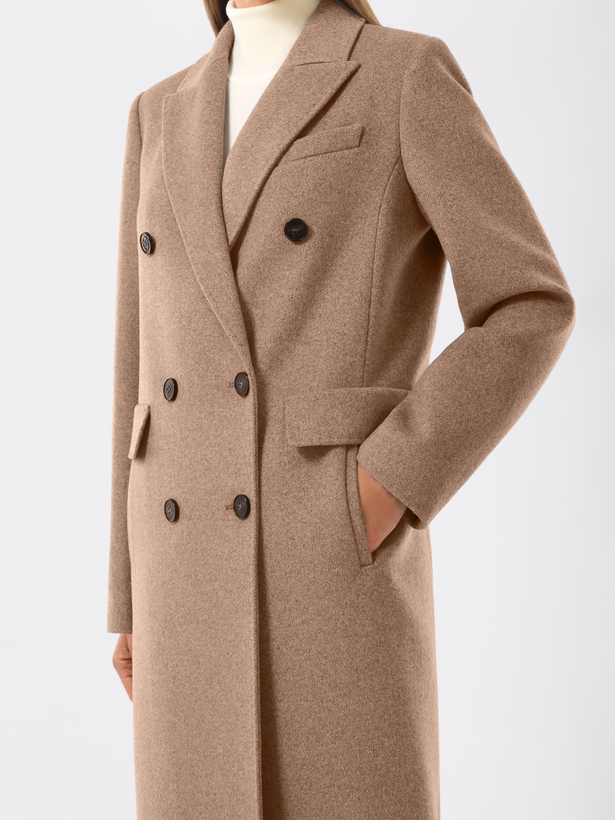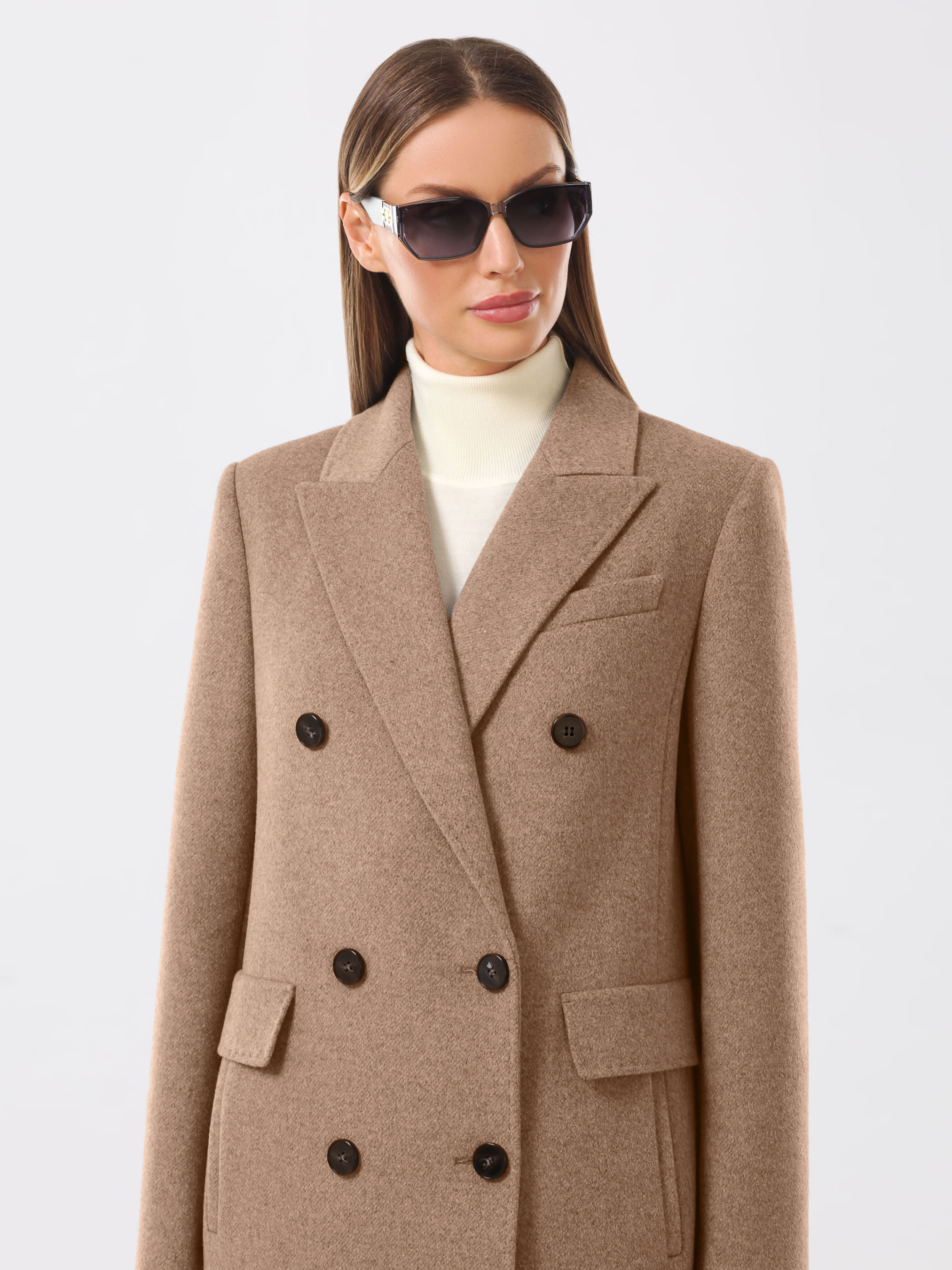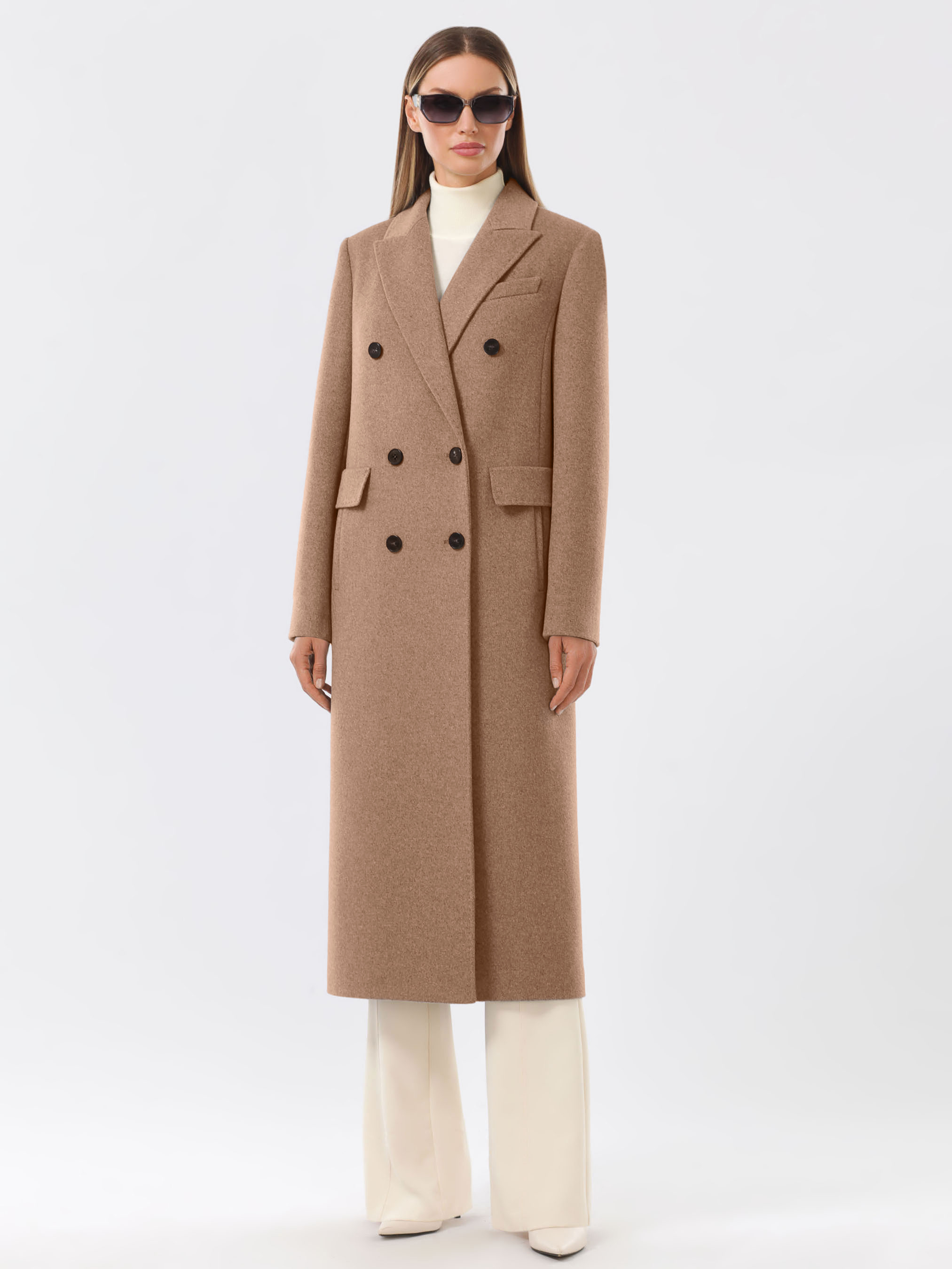 Трендовое пальто оверсайз из качественной шерстяной ткани с микроворсом. Длина изделия 125,0 см. Двубортная модель лаконичного прямого кроя, с четкими конструктивными линиями. Классические втачные рукава, немного расширенная линия плечевого пояса. Актуальный английский воротник – ласточка, его можно приподнять для более непринужденного эффектного образа. Карманы – листочки с клапанами, застежка на фирменные пуговицы. Декоративный нагрудный карман, шлица в среднем шве спинки.