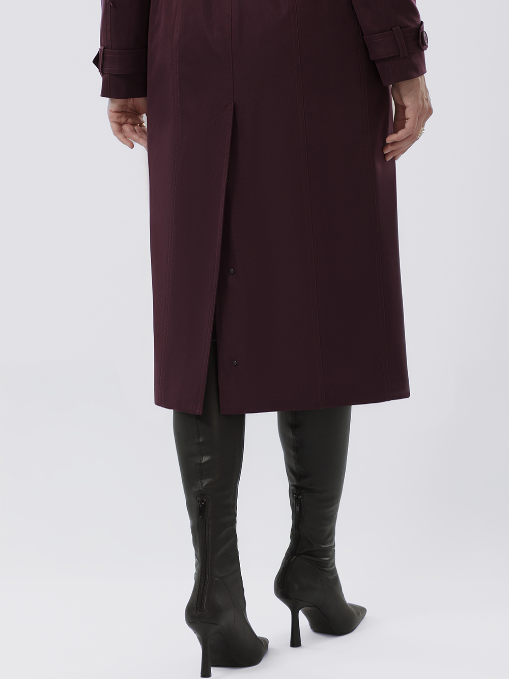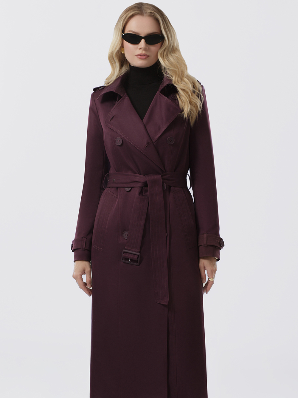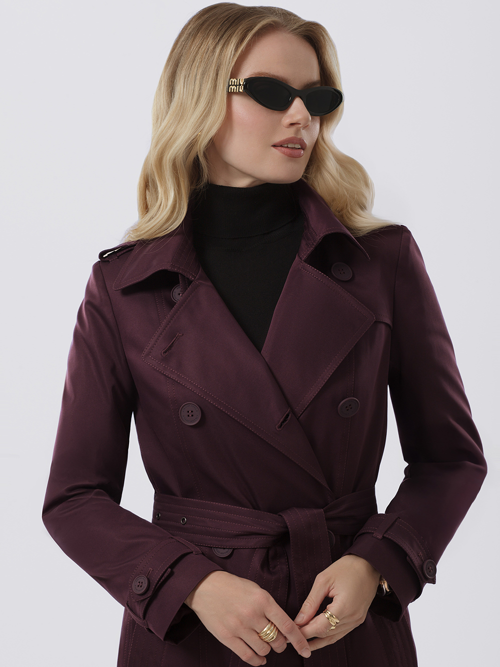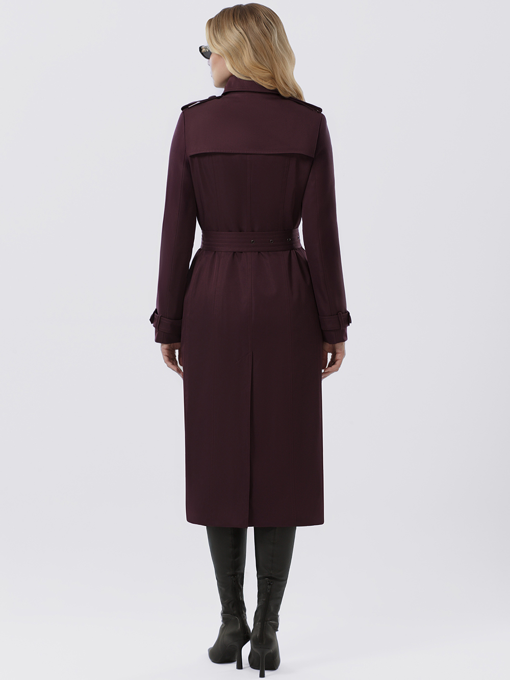 Безукоризненный двубортный плащ-тренч на стеганой с утеплителем подкладочной ткани.