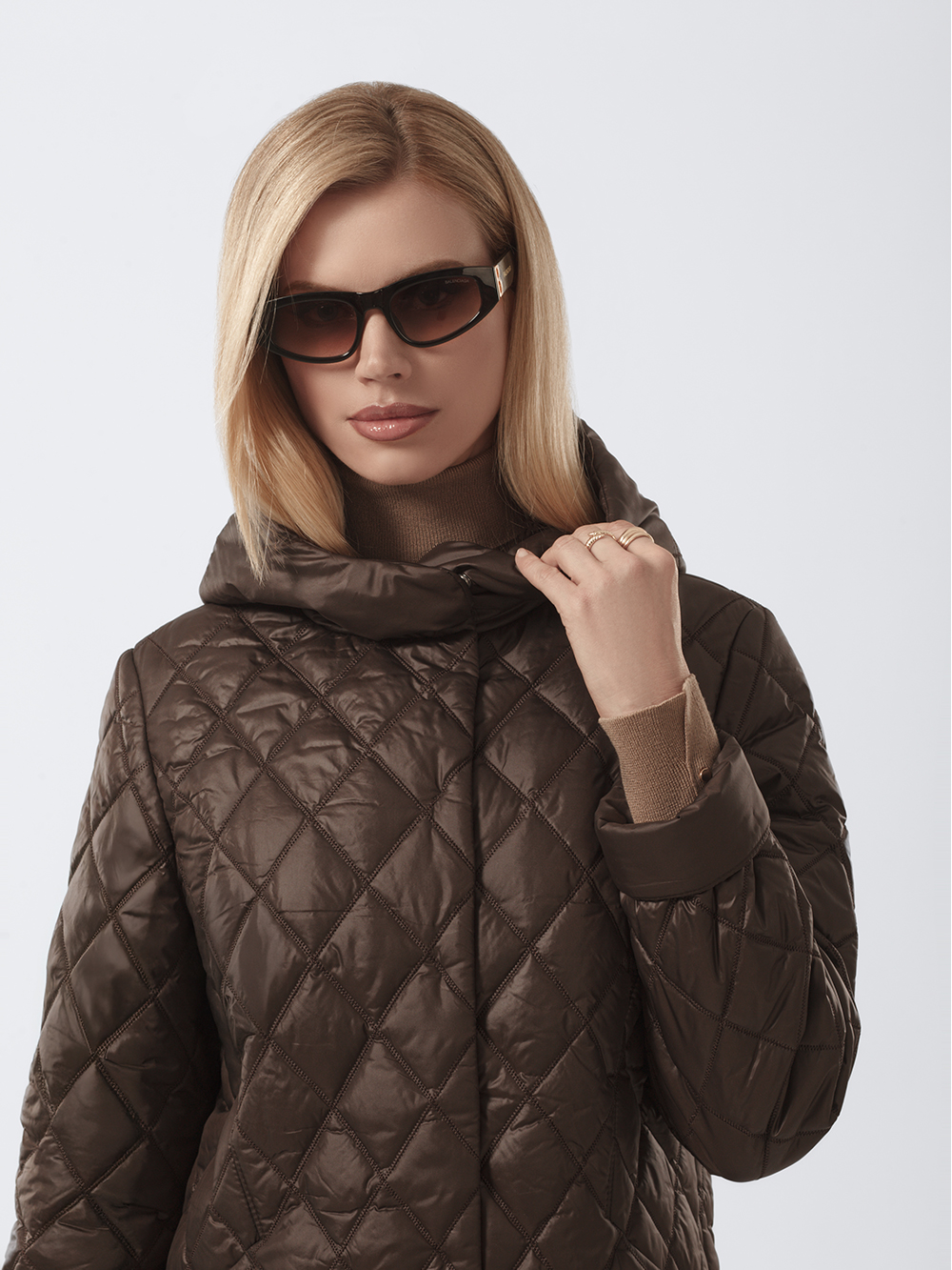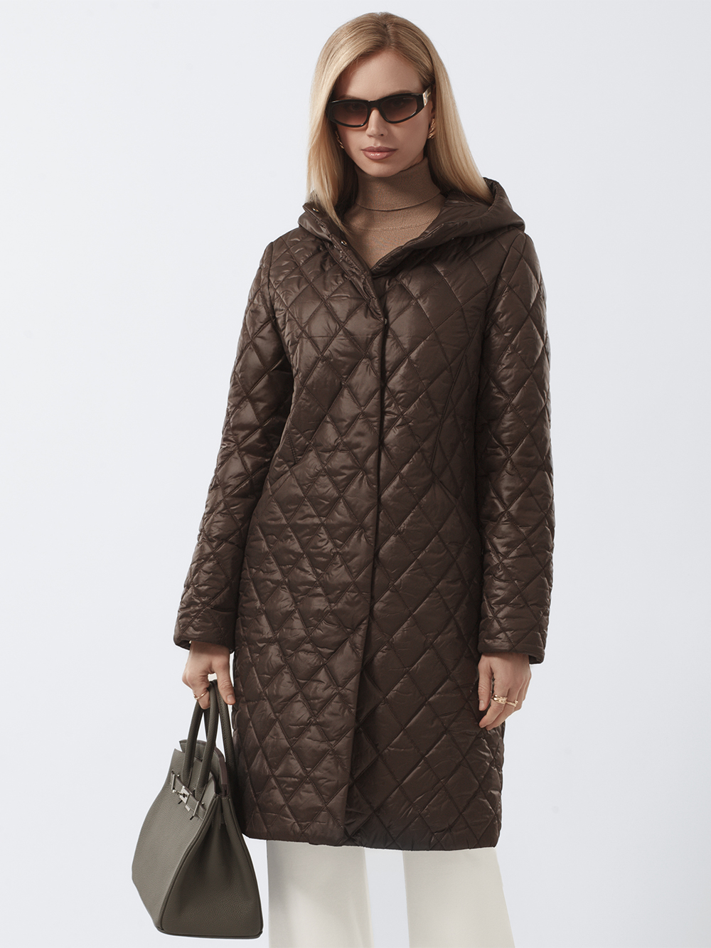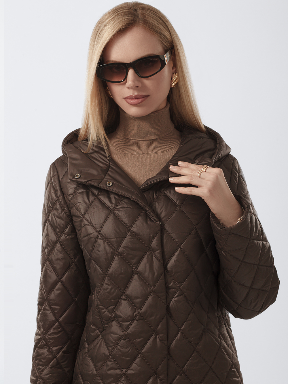 Лаконичное однобортное пальто с капюшоном из лёгкой плащевой ткани, стеганой с синтепоном. Длина изделия – 95,0 см. Прямой силуэт, втачной покрой рукава с возможностью отворота. Удобная застежка на молнию и установочные кнопки. Карманы в рельефах полочки. На спинке силуэтные вытачки. Размер рекомендовано подбирать по большему показателю – либо по объёму груди, либо по бёдрам. Температурный режим носит рекомендательный характер до -5 °C, далее восприятие зависит от индивидуальной переносимости температур.