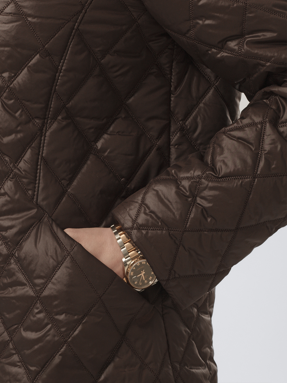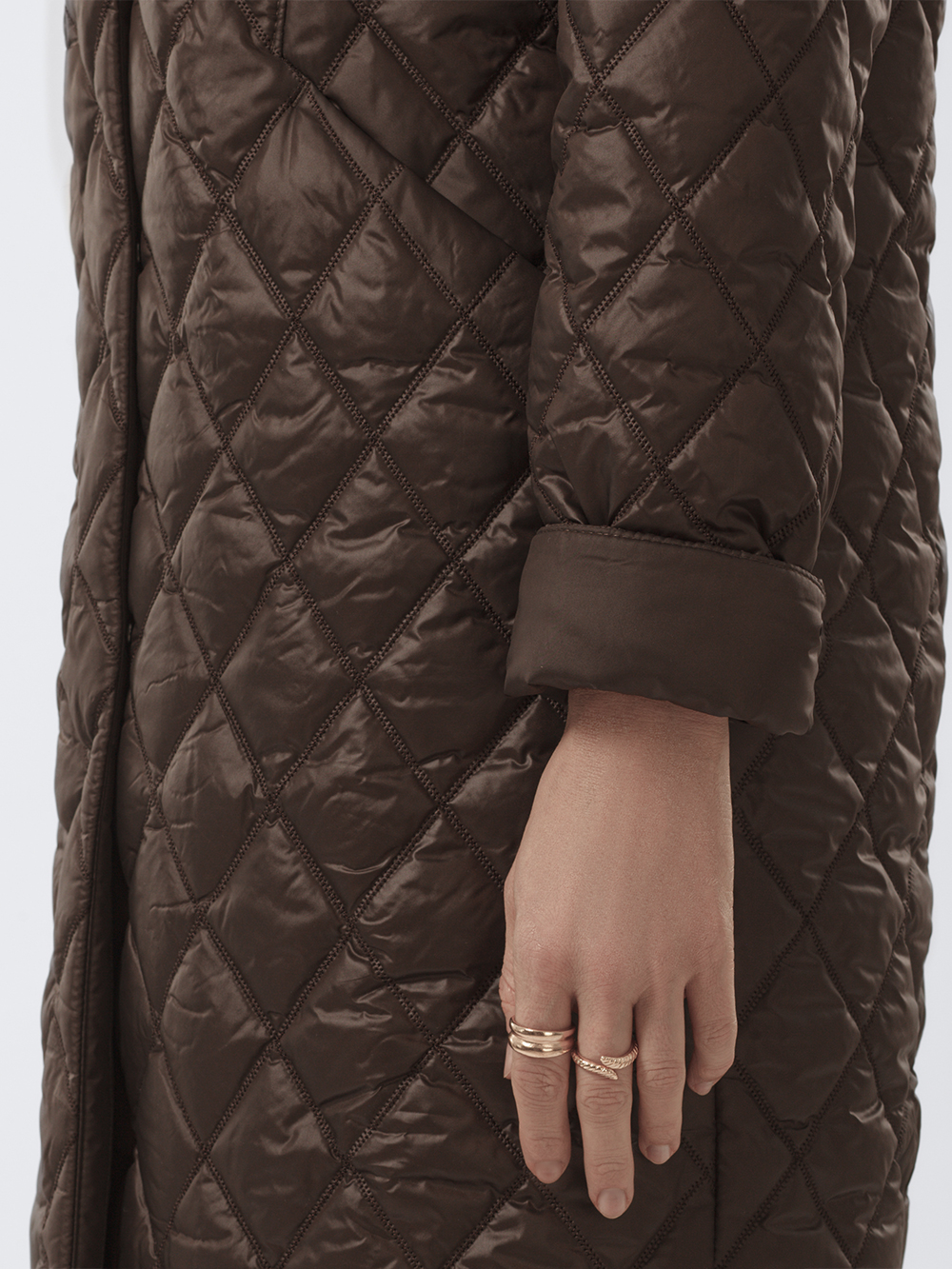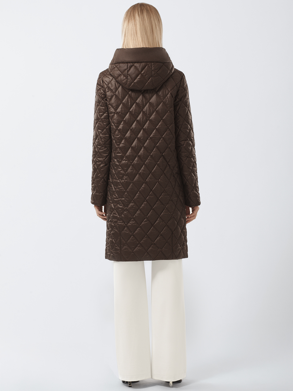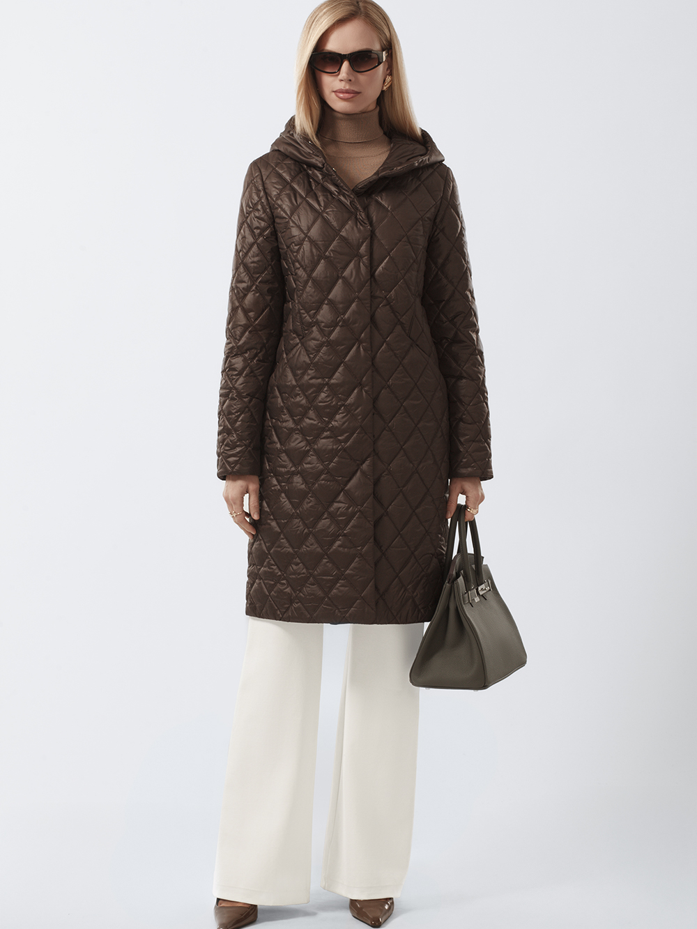 Лаконичное однобортное пальто с капюшоном из лёгкой плащевой ткани, стеганой с синтепоном. Длина изделия – 95,0 см. Прямой силуэт, втачной покрой рукава с возможностью отворота. Удобная застежка на молнию и установочные кнопки. Карманы в рельефах полочки. На спинке силуэтные вытачки. Размер рекомендовано подбирать по большему показателю – либо по объёму груди, либо по бёдрам. Температурный режим носит рекомендательный характер до -5 °C, далее восприятие зависит от индивидуальной переносимости температур.
