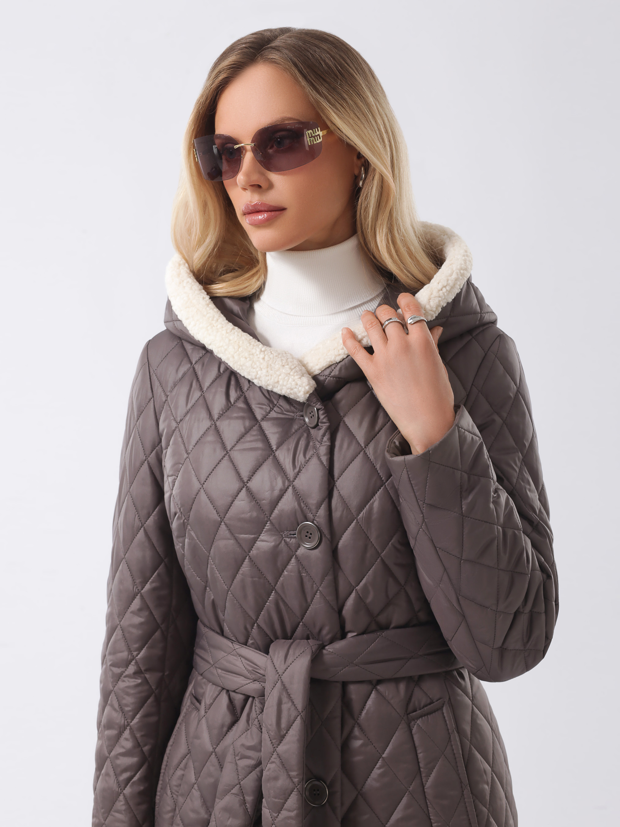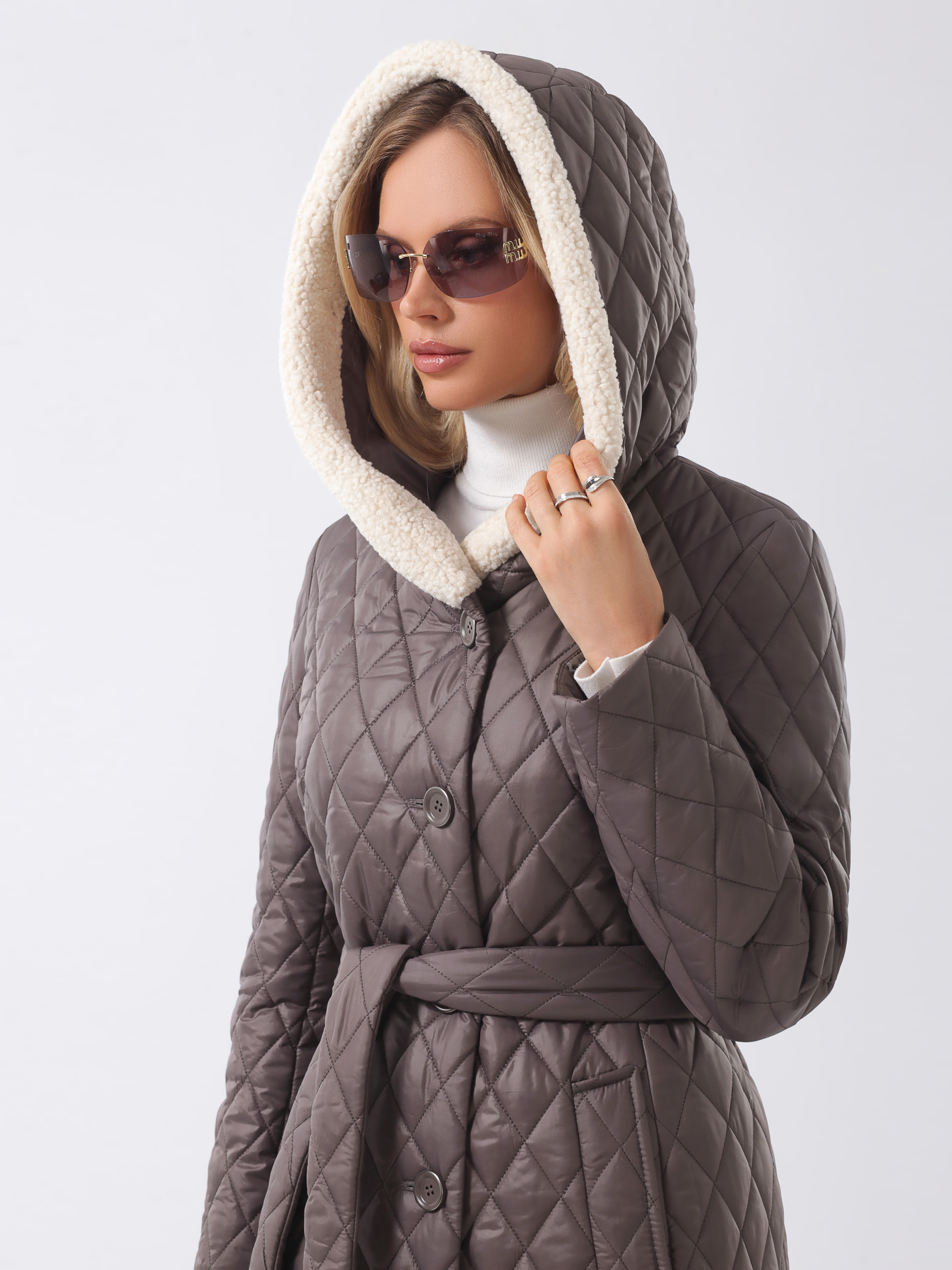 Удобный двухшовный капюшон фиксируется магнитом. Капюшон декорирован качественной имитацией овчины.