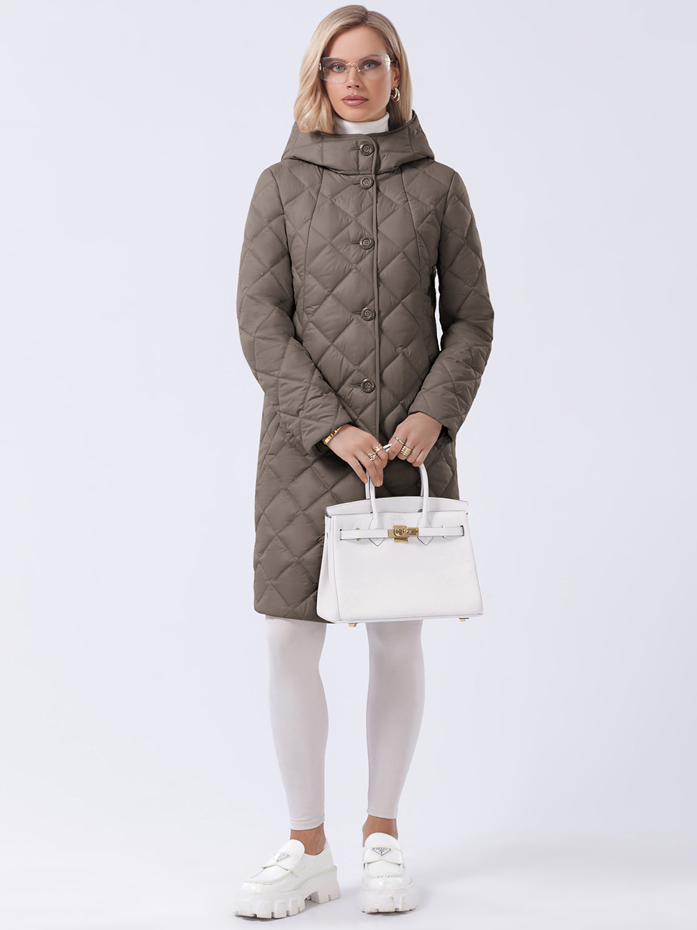 Элегантное пальто комфортного прямого силуэта. Лаконичный спокойный крой, втачной покрой рукава с возможностью отворота. Уютный небольшой капюшон. Удобная застежка на фирменные пуговицы. Карманы в рельефах полочки на потайных кнопках. Пальто выполнено из плащевой ткани стеганой с мягким теплым утеплителем, с дополнительным слоем прокладочного материала - благодаря этому слою ткань более плотная и одновременно мягкая, лучше сохраняет тепло. Пальто хорошо держит форму, четко прослеживаются силуэт и модельные линии.