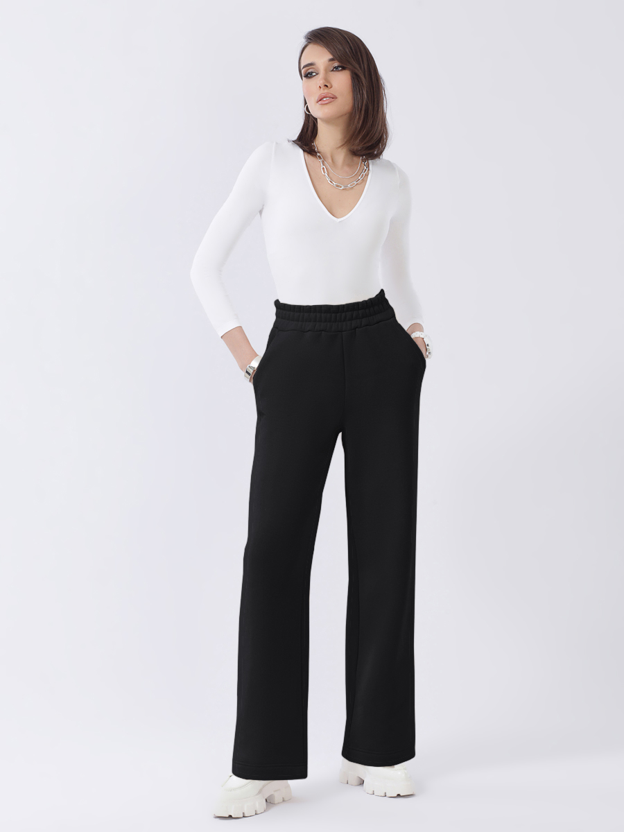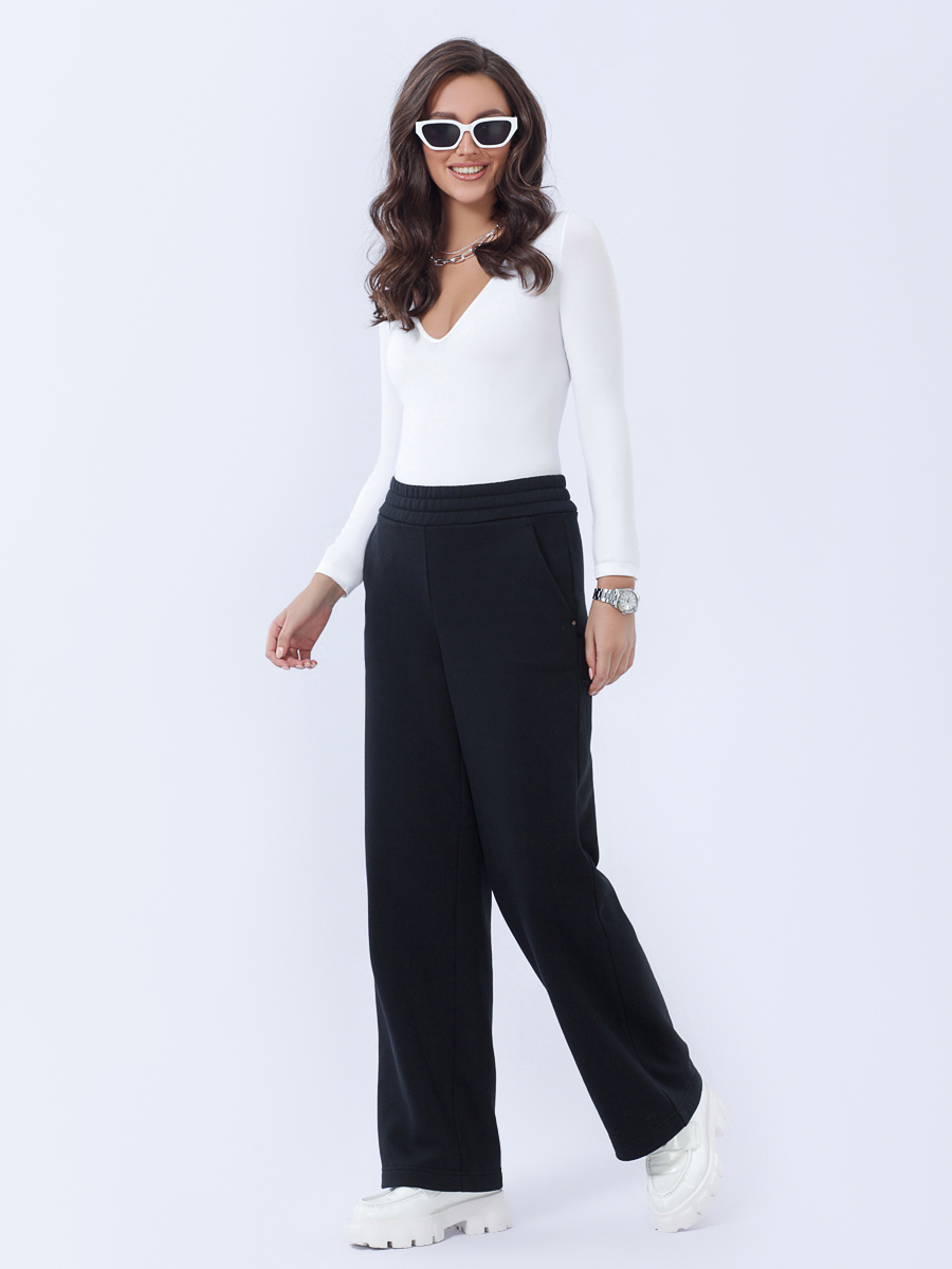 МОДЕЛЬ брюки женские палаццо, выполненная из трикотажного полотна "МИЛАНО" – женские штаны прямого кроя, среднего прилегания по бедрам. Безупречность конструкции брюк – основной критерий удобства и идеального внешнего вида. Пояс на резинке обеспечивает комфортную фиксацию брюк. Карманы - классические боковые с декоративными элементами. Используется только высококачественная фирменная фурнитура, разработанная нашими дизайнерами.