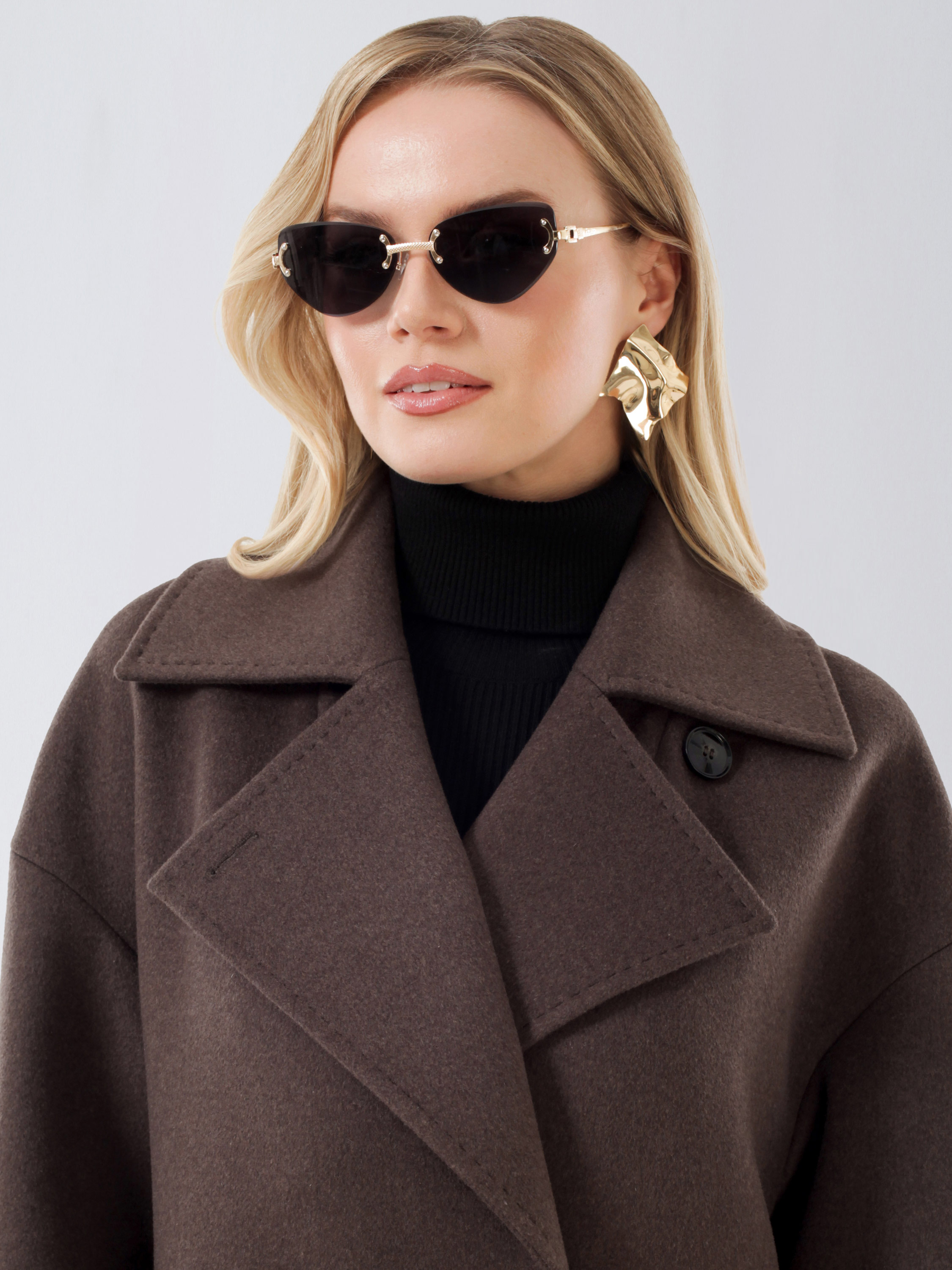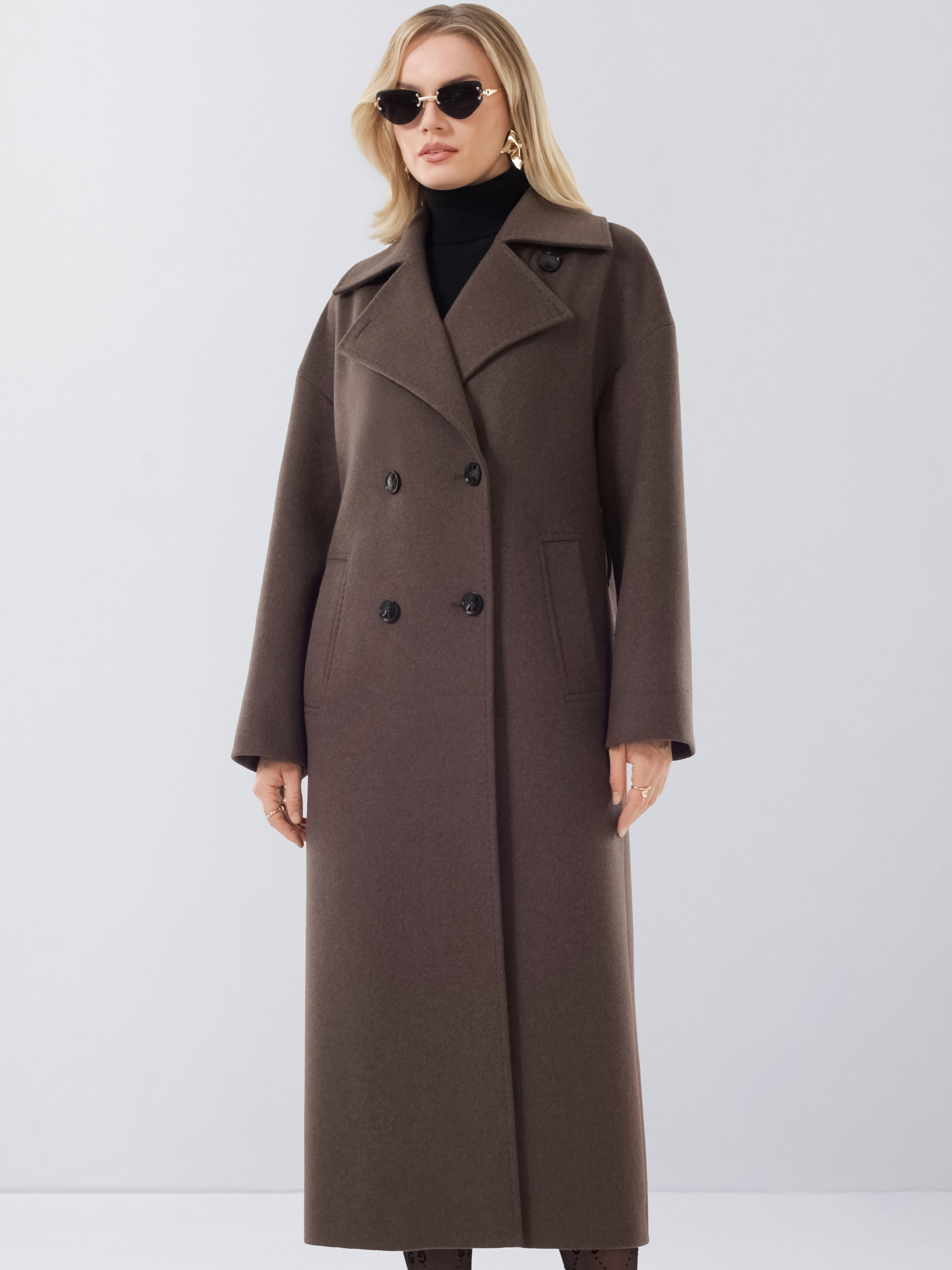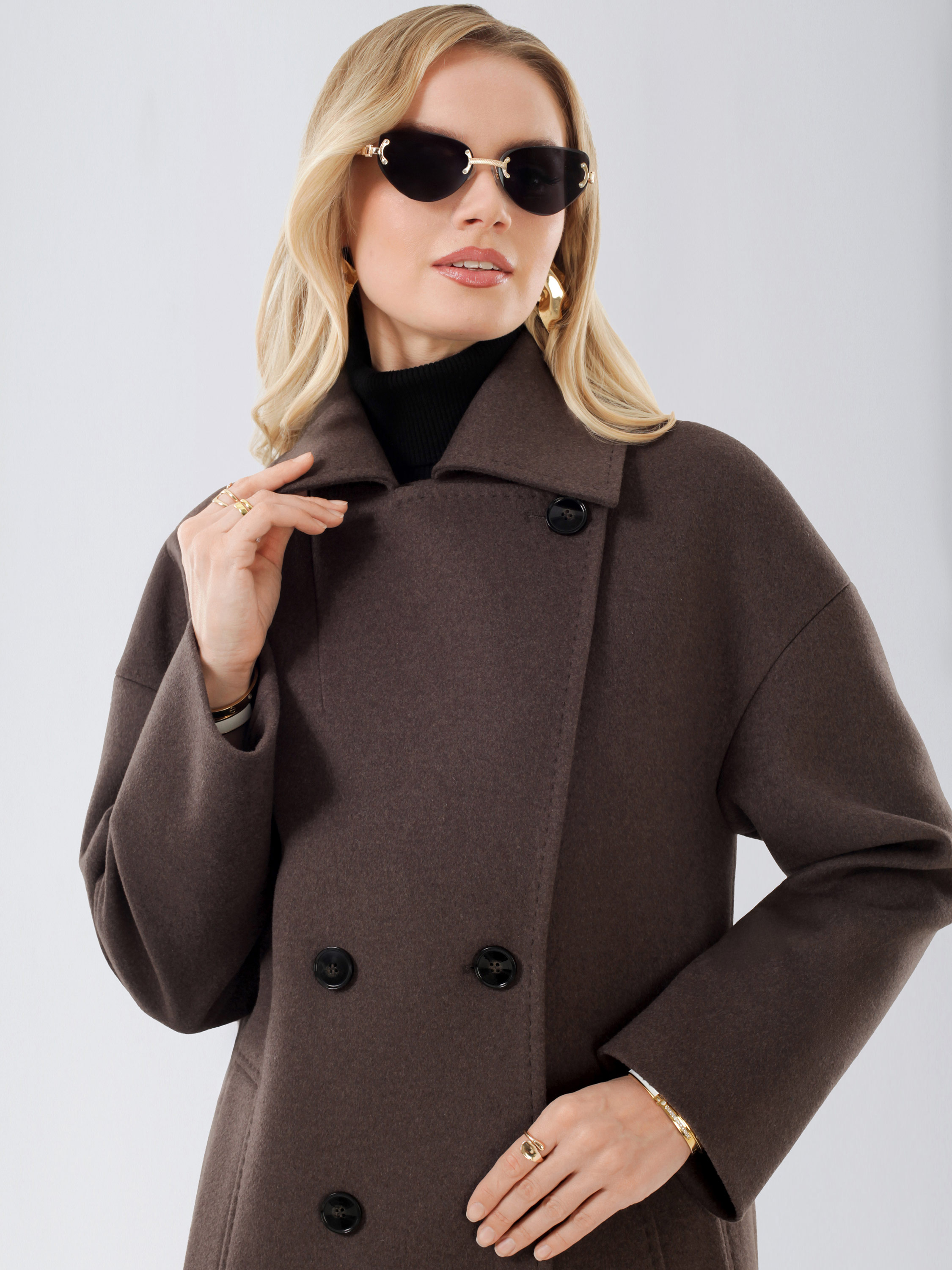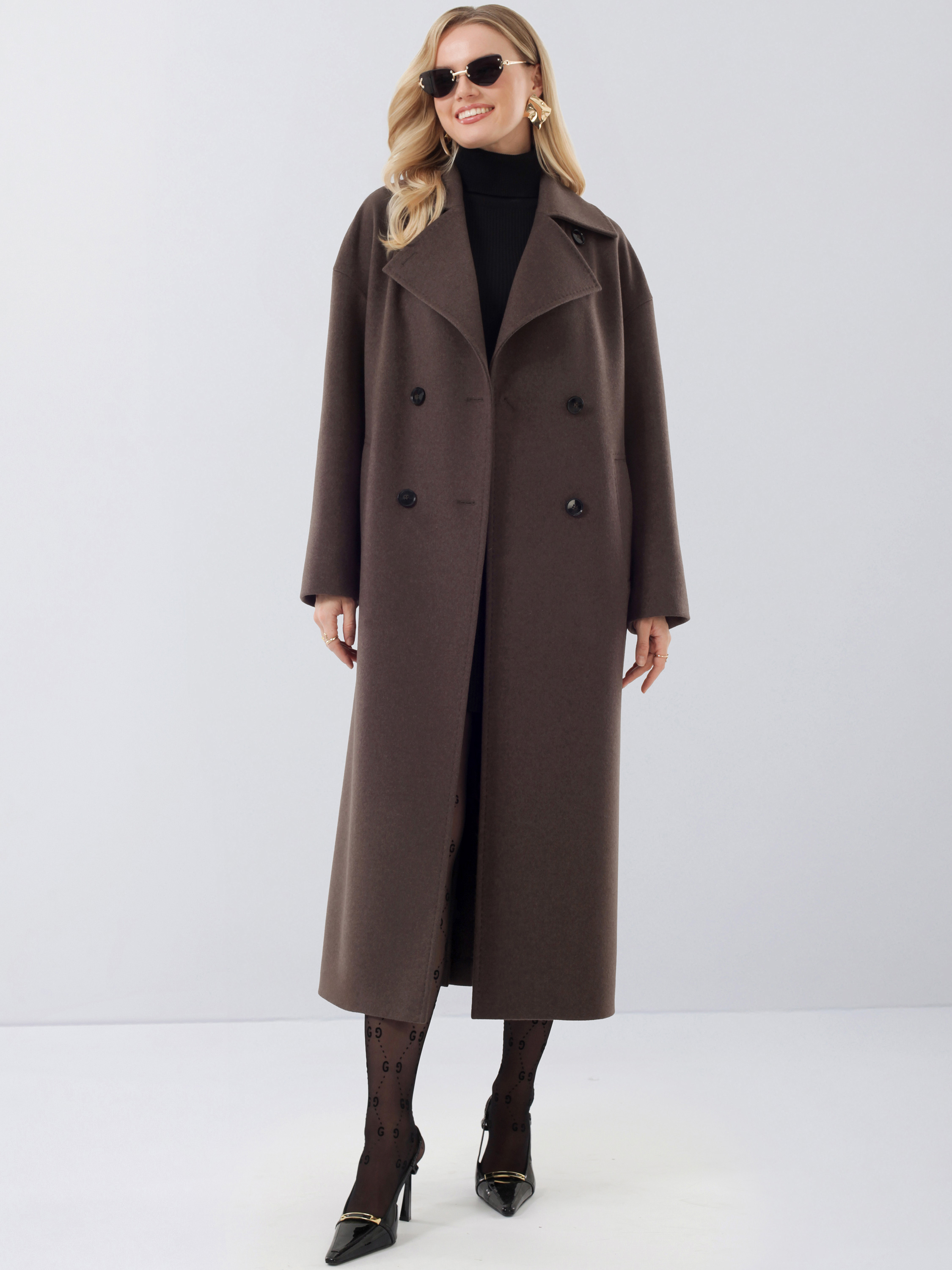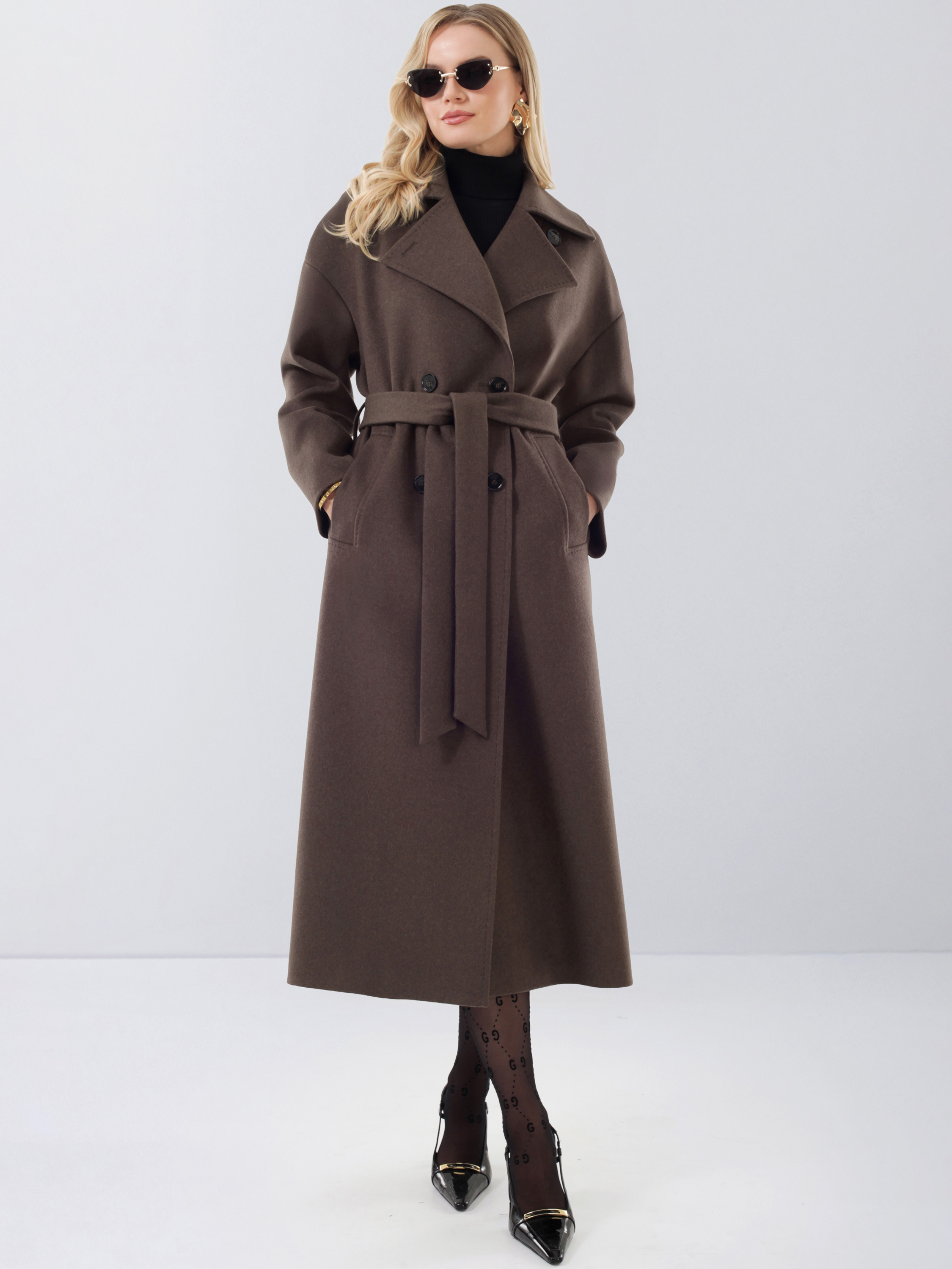Роскошное женское пальто свободного лаконичного кроя. Модель выполнена из высококачественной шерстяной ткани с микроворсом. В состав ткани добавлен кашемир, чтобы придать ей эксклюзивную мягкость, легкость и превосходное тепло, а также обеспечить пальто благородный и элегантный внешний вид. Плавная линия плеча, комфортные уютные рукава рубашечного покроя с возможностью отворота. Удобные прорезные карманы с листочками. Застежка на фирменные пуговицы. Отложной воротник раскладывается в английский, лацкан фиксируется пуговицей. Шлица в среднем шве спинки. Пояс из ткани верха в комплекте.