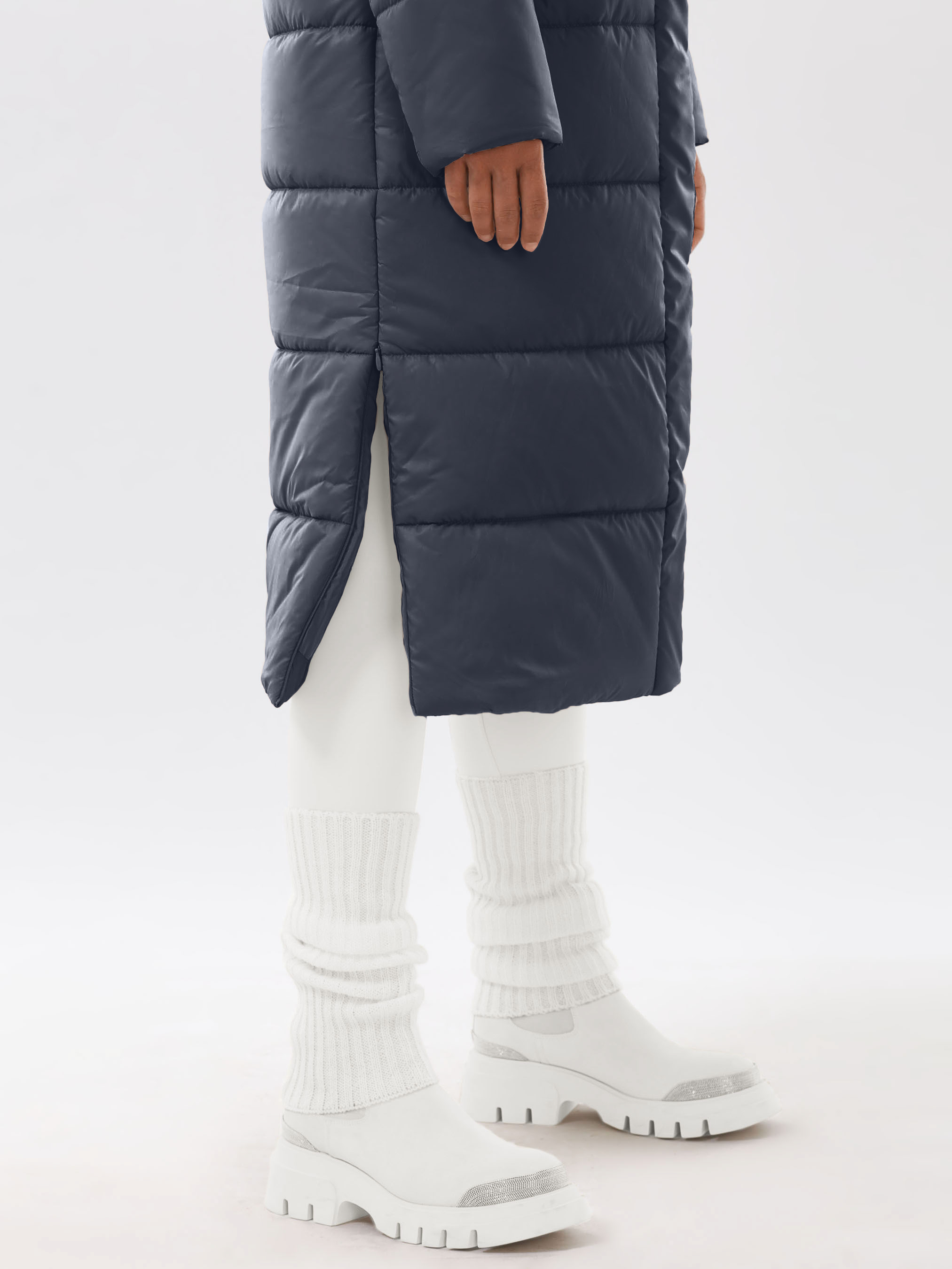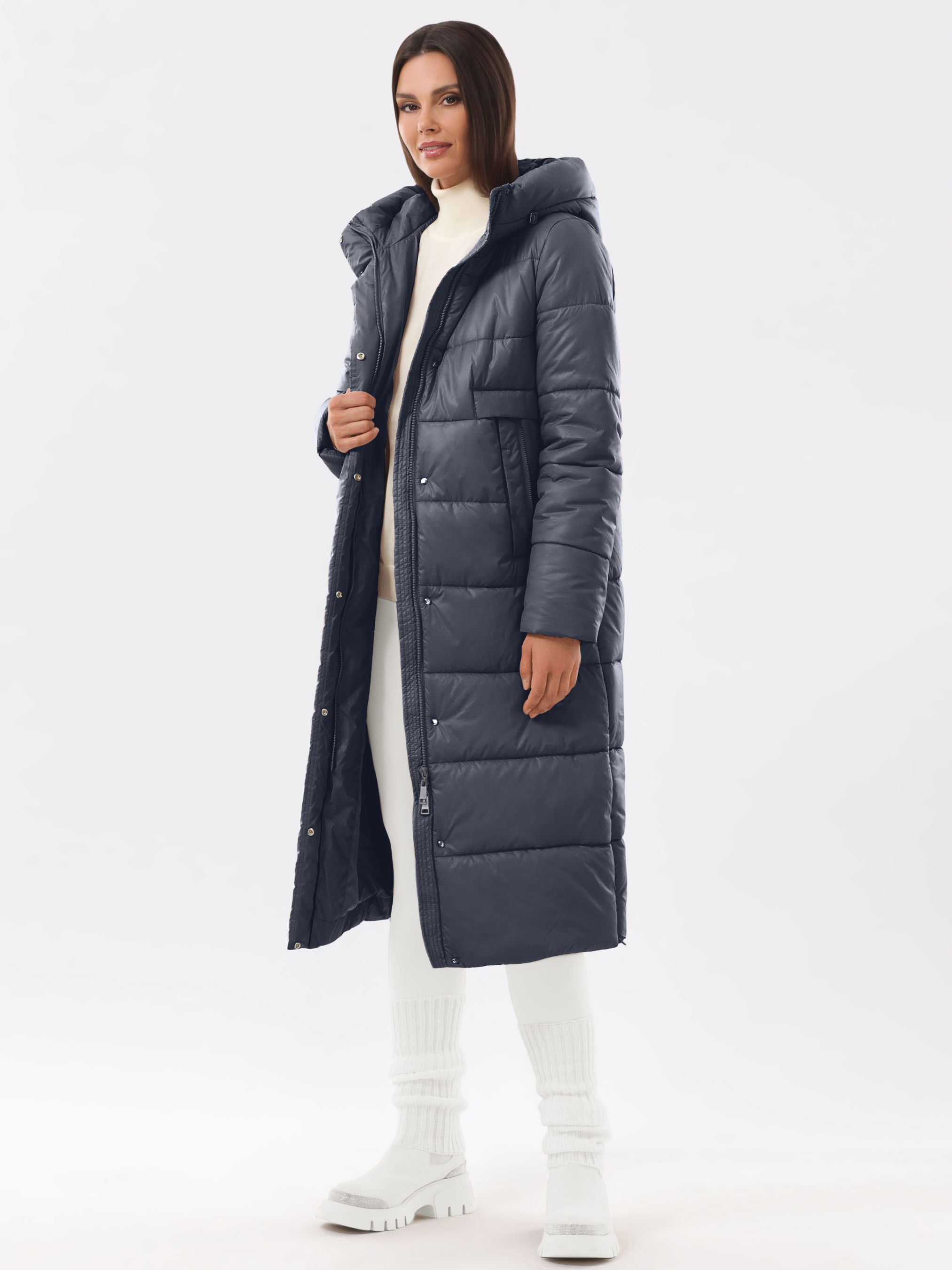 Трендовое дизайнерское пальто из лёгкой плащевой ткани, стеганой с синтепоном. Модель свободного кроя с комфортным капюшоном с кулиской на фиксаторах. Втачные рукава с трикотажными манжетами, которые облегают запястье и препятствуют проникновению холодного воздуха. Застежка под ветрозащитным клапаном – двухзамковая молния и установочные кнопки. Карманы на молниях с декоративными листочками. Мешковина карманов выполнена из мягкой, приятной на ощупь ткани. Для удобства при движении, предусмотрены разрезы в боковых швах на молниях invisible. Внутренний карман на потайной молнии. Размер рекомендовано подбирать по большему показателю – либо по объёму груди, либо по бёдрам. Температурный режим носит рекомендательный характер до -20°C, далее все зависит от индивидуальной переносимости температур.